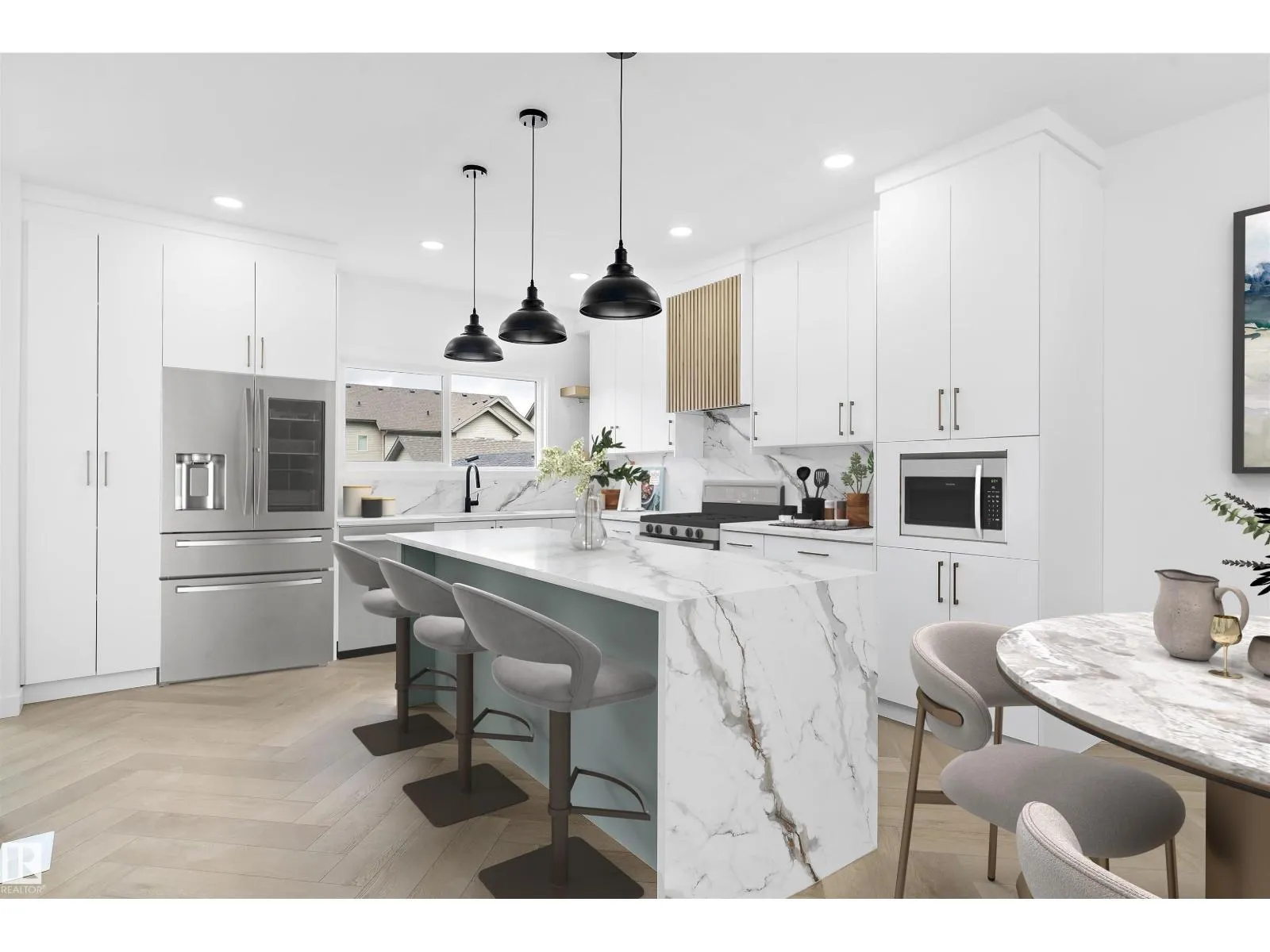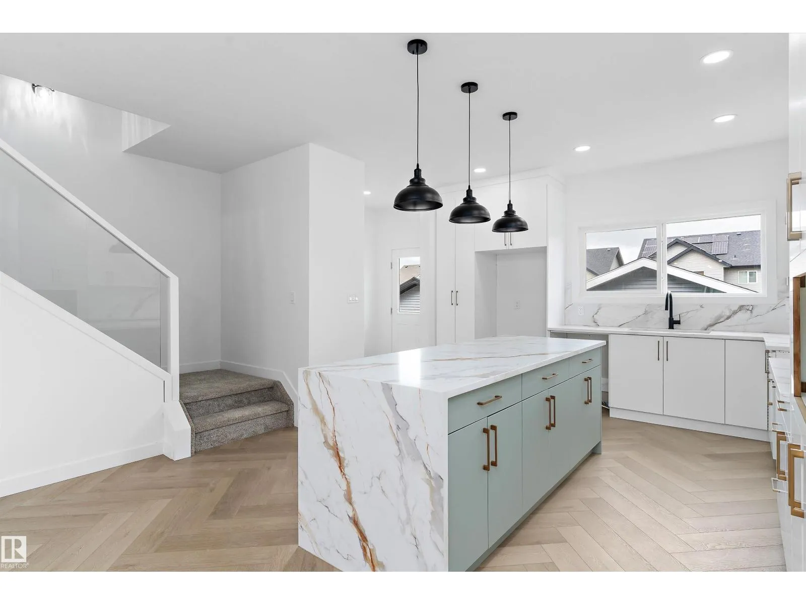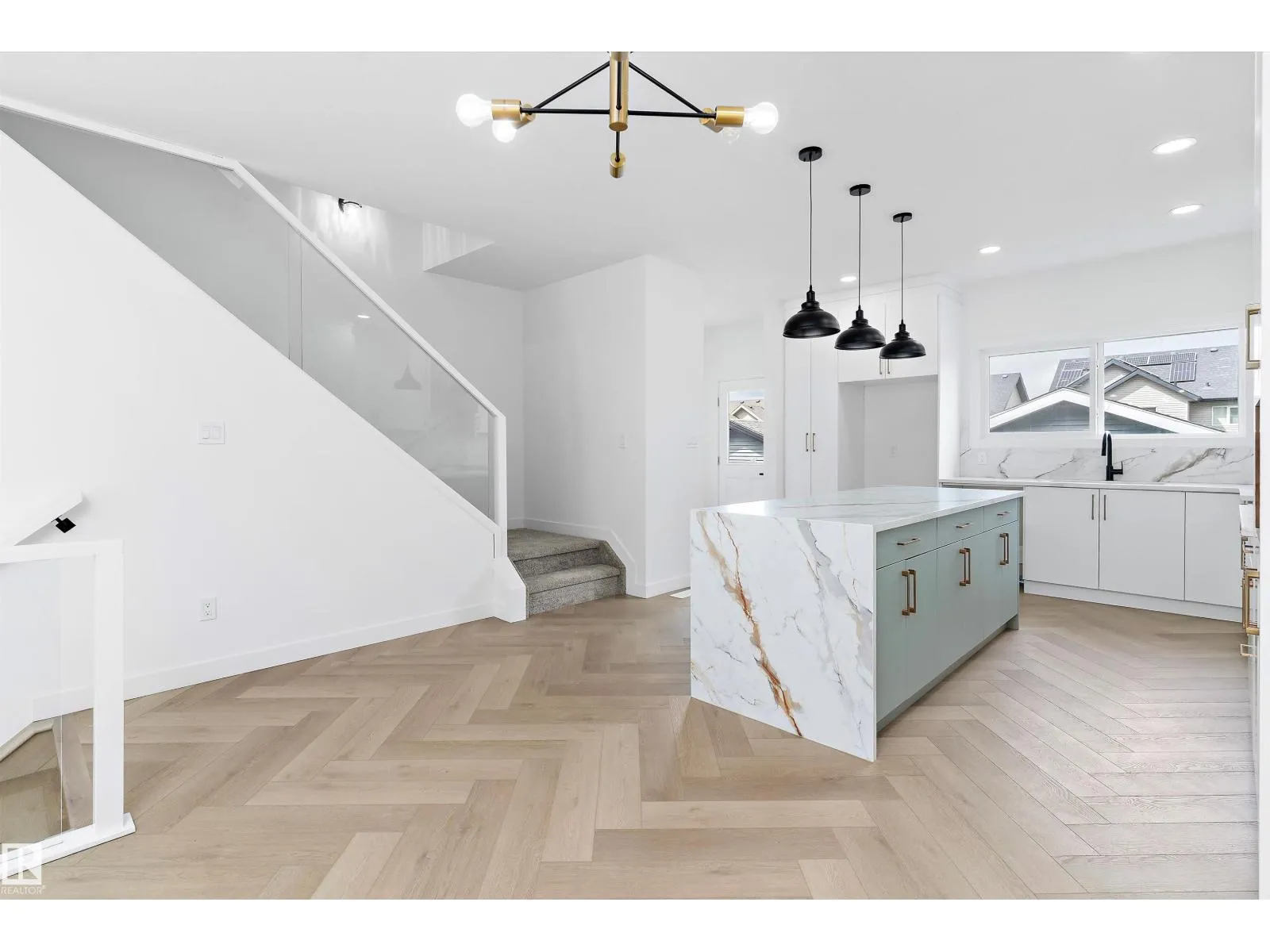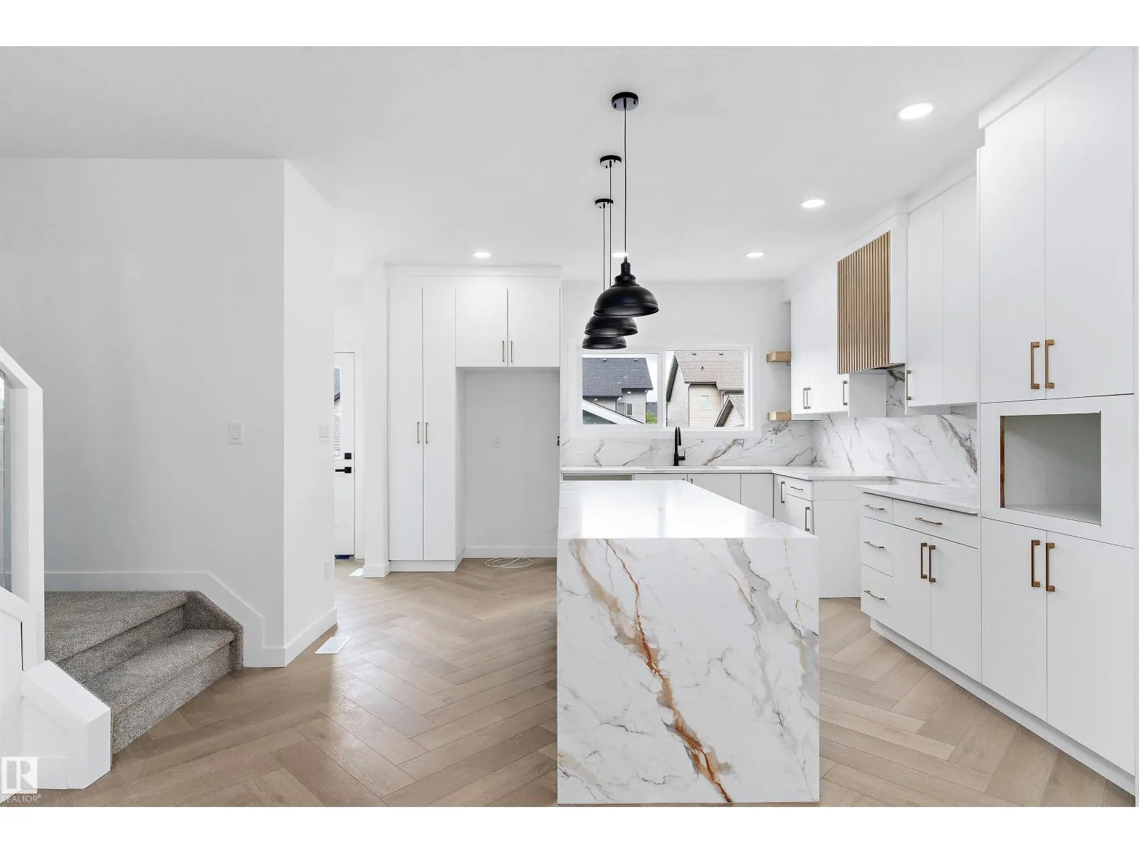 Welcome to this stunning brand new home offering over 1,600 sq ft of thoughtfully designed living space. The main floor features a striking living room with 11 ft ceilings and elegant herringbone flooring. Just a few steps up, youâll find the spacious dining area and a chefâs dream kitchen with white shaker cabinetry, waterfall quartz countertops, marble-look backsplash, and stylish pendant lighting. Upstairs, the primary suite boasts a walk-in closet and a 4-piece ensuite. Two additional generous bedrooms and a convenient laundry room complete the level. Additional highlights include a separate entrance, finished deck, abundant windows for natural light, 12x24 Euro tile, premium siding with stone accents, soaring 11 ft basement ceilings, upgraded lighting and plumbing, and a double car garage. (id:27476)