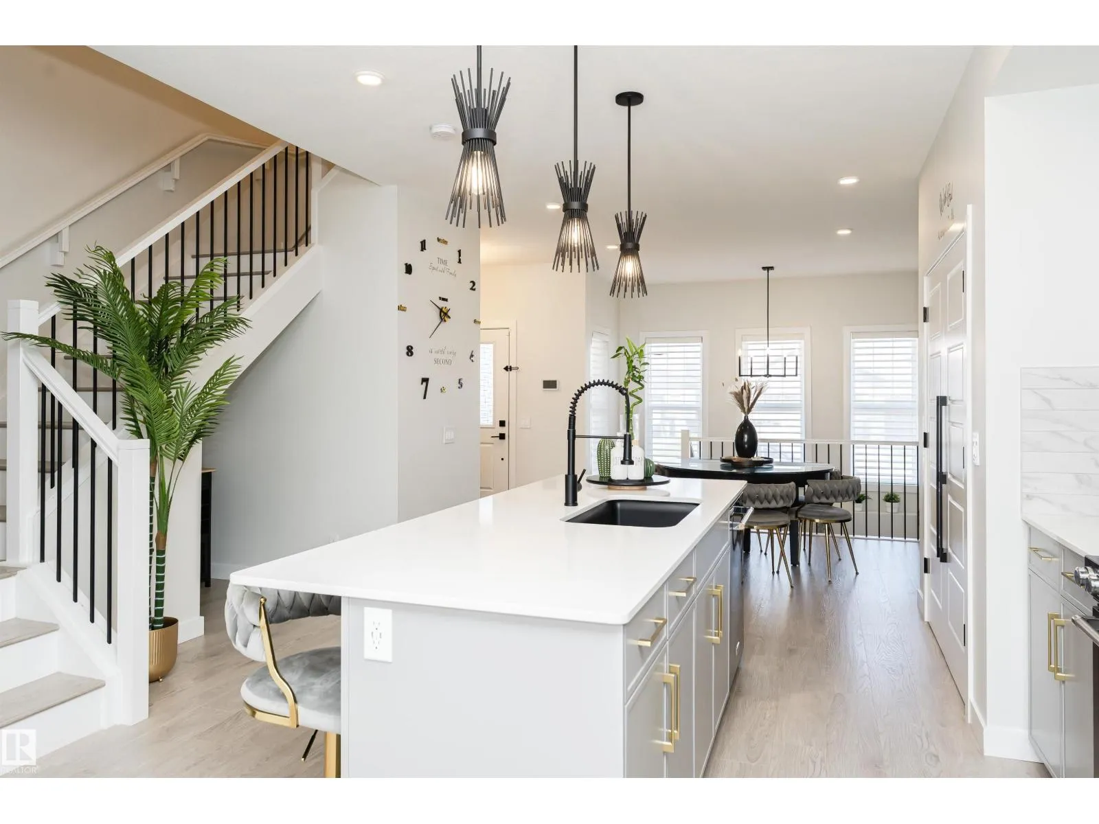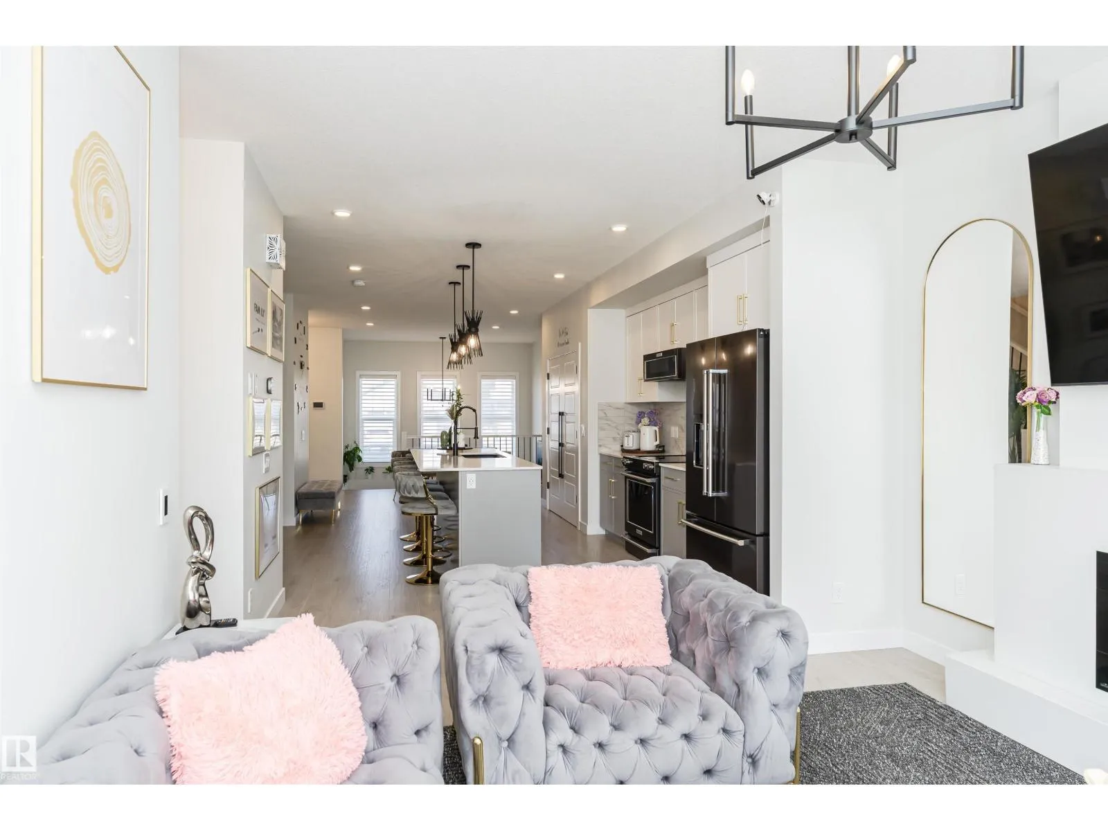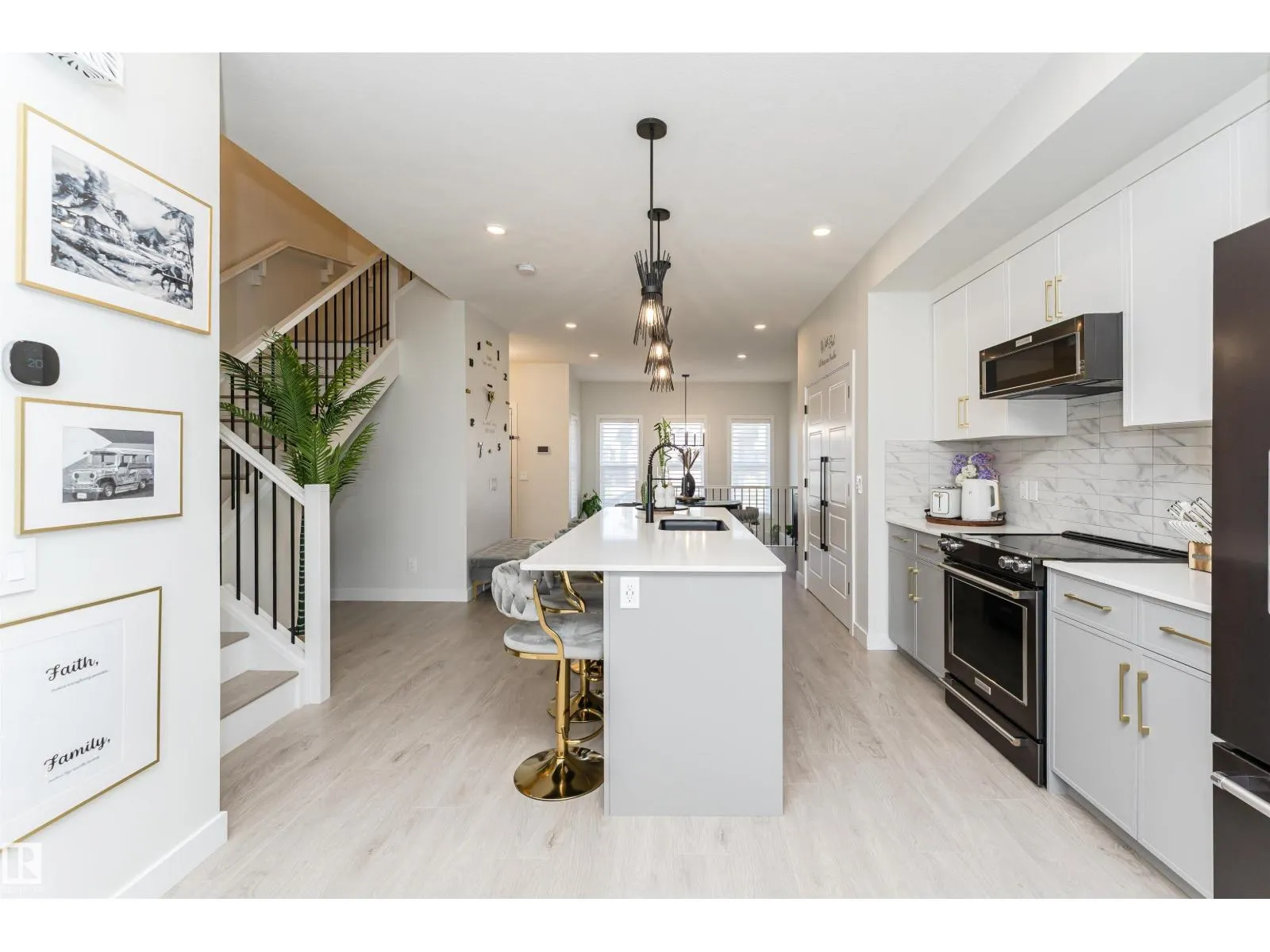 OVER 2400 SF of Living SPACE. Imagine coming home to a beautifully maintained property that feels better than a showhome - airy, modern, and truly inviting. The open-concept main floor welcomes you with a contemporary layout, with upgraded kitchen appliances and extra-long island, perfect for family meals or entertaining guests over a glass of wine. HUGE windows with remote-controlled blinds flood the space with natural light, while the cozy living room, complete with a fireplace, sets the scene for relaxing movie nights. Upstairs, you'll find 3 generously sized bedrooms. The spacious primary suite includes a luxurious ensuite and an oversized walk-in closet. The two additional bedrooms offer ample space for kids, guests, or a home office. Head down to the fully finished basement where a massive family/rec room awaits, ideal for game nights, movie marathons, or entertaining friends in style. Outside is a large deck, big enough to host your next summer party or simply enjoy. This is yours. WELCOME HOME! (id:27476)