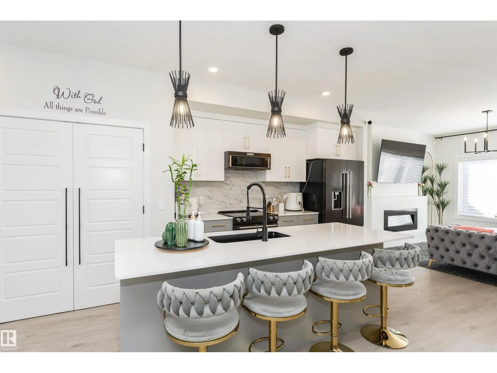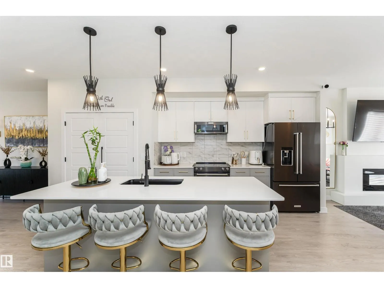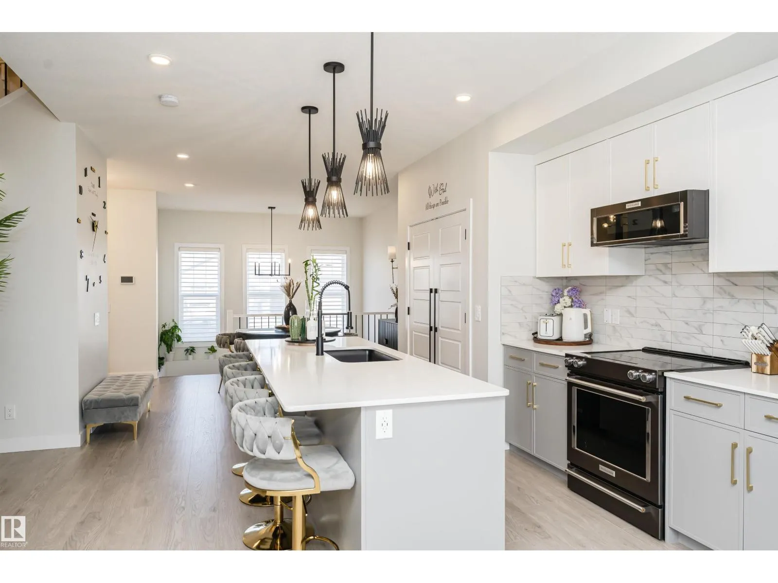 OVER 2400 SF of Living SPACE. Imagine coming home to a beautifully maintained property that feels better than a showhome - airy, modern, and truly inviting. The open-concept main floor welcomes you with a contemporary layout, with upgraded kitchen appliances and extra-long island, perfect for family meals or entertaining guests over a glass of wine. HUGE windows with remote-controlled blinds flood the space with natural light, while the cozy living room, complete with a fireplace, sets the scene for relaxing movie nights. Upstairs, you'll find 3 generously sized bedrooms. The spacious primary suite includes a luxurious ensuite and an oversized walk-in closet. The two additional bedrooms offer ample space for kids, guests, or a home office. Head down to the fully finished basement where a massive family/rec room awaits, ideal for game nights, movie marathons, or entertaining friends in style. Outside is a large deck, big enough to host your next summer party or simply enjoy. This is yours. WELCOME HOME! (id:27476)