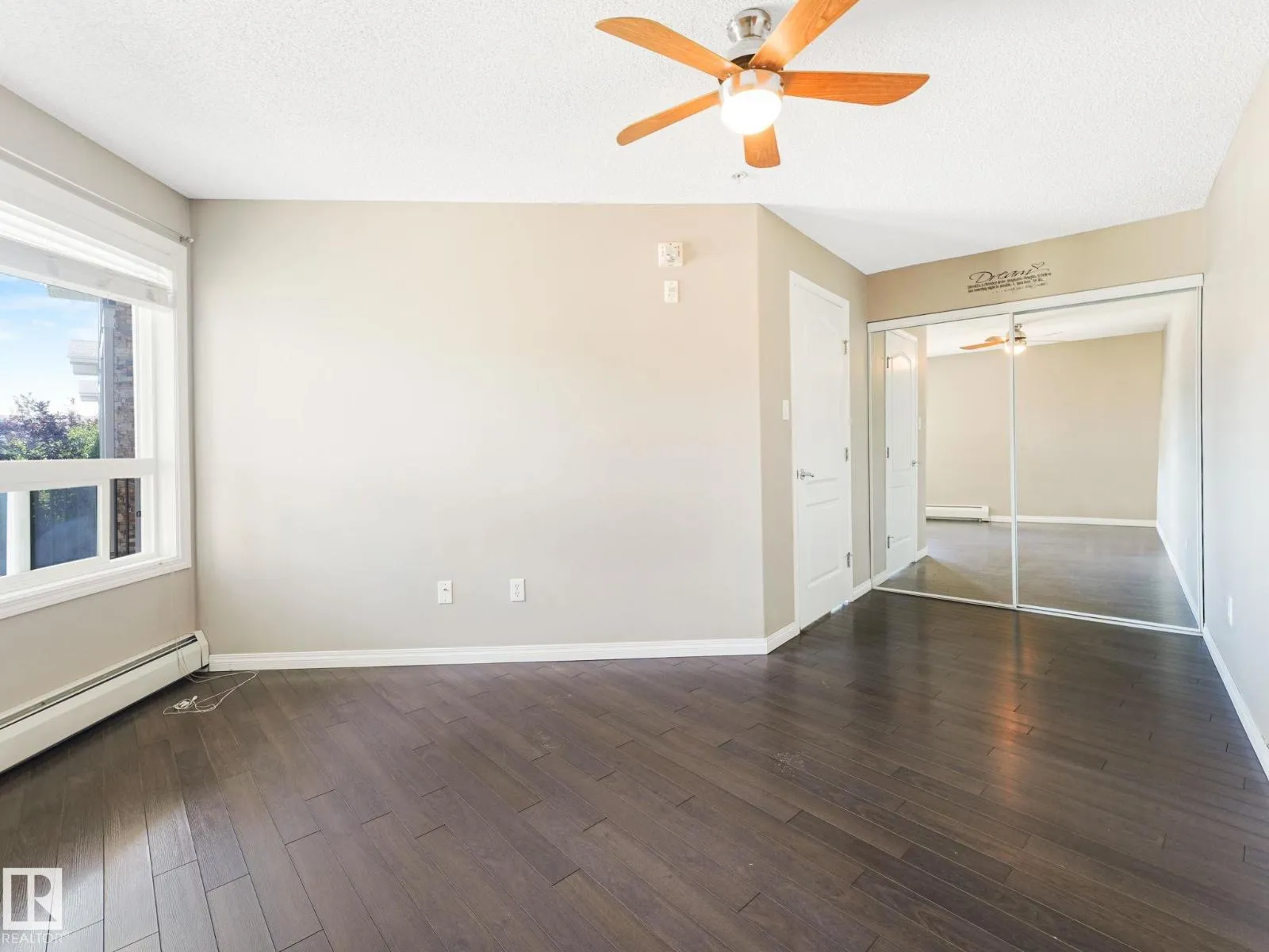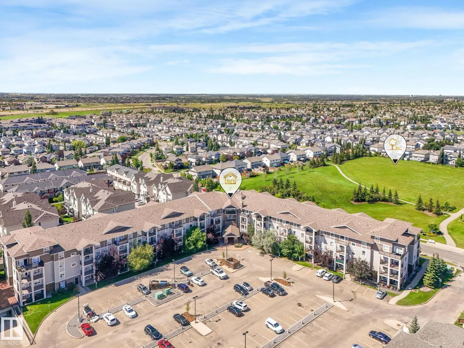 Welcome to this stunning condo in South Terwillegar!This spacious unit is larger then some two bedroom condos with only one neighbor! & has loads of upgrades.The designer kitchen has upgraded dark espresso cabinets,cream counters & stainless steel appliances.The dining room is big enough for a six person table & has an open concept into the living room.The large living area is bright with plenty of natural light & has a patio door that leads to the over sized corner balcony.The master bedroom is a great size with wall to wall closets.This home also features a 4pc bath,storage area with in suite laundry & TWO PARKING STALLS(one underground right beside elevator and no one next to you!,one surface stall).This unit is close to shopping,public transportation, Anthony Henday & the new recreation center.It shows a 10 out of 10--A must see! (id:27476)