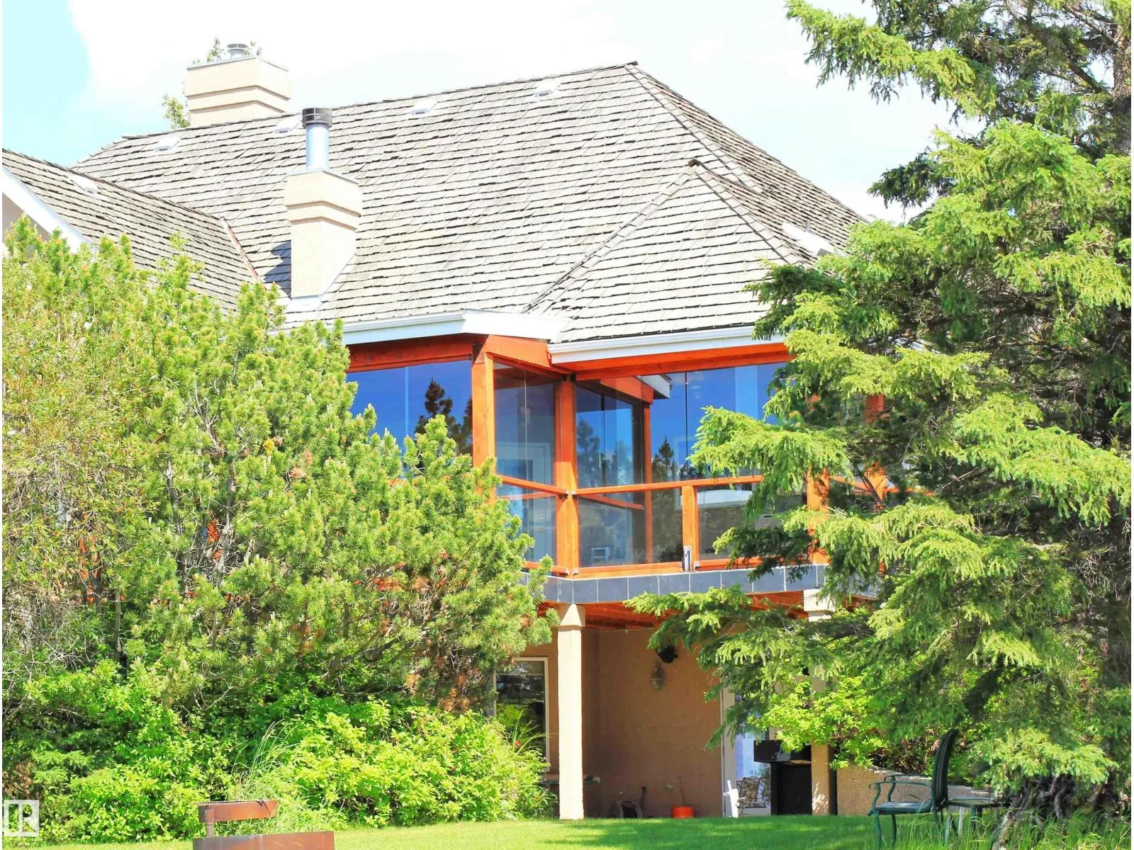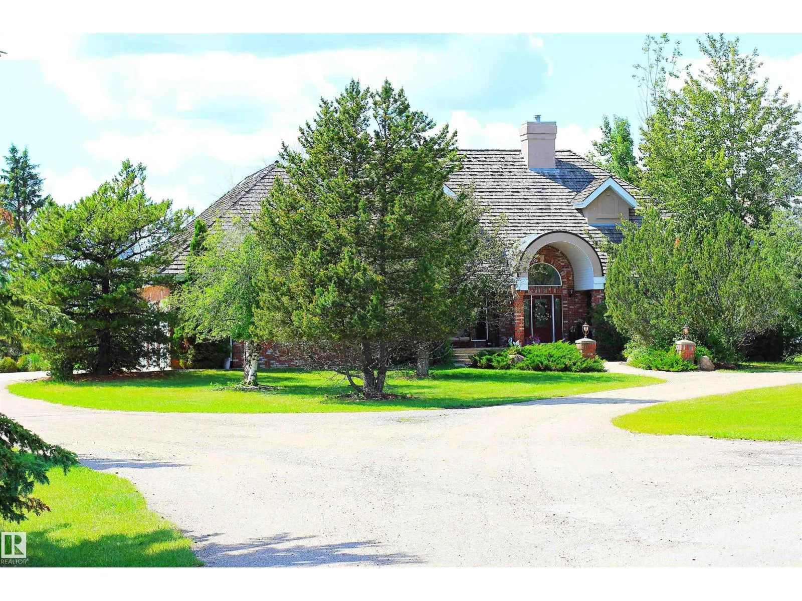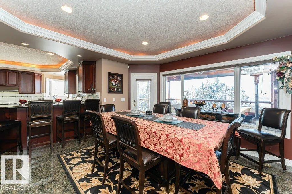 Nestled on a private, treed 80-acre setting along Whitemud Creek, this extraordinary estate combines serene natural beauty with prime investment potential in one of the regionâs hottest distribution and warehouse corridors. The hillside bungalow offers over 6,000 sq. ft. of exquisitely developed space, featuring a grand vaulted foyer and living room with sweeping views of the ravine, river, and endless fields. The primary suite is a retreat, with a spa-inspired ensuite and expansive walk-in closet. Sunlit living areas, including the kitchen and nook, flow onto a spectacular deck and enclosed sunroomâevoking the ambiance of a luxury mountain chalet. The walkout lower level includes three bedrooms, a home theatre, games room, bar, exercise studio and high end in-floor heating. Triple-car attached garage is drywalled with work benches and ground drain . A 7,000 sq. ft. heated shop with three-phase power provides incredible versatility. A cedar shake roof & commanding architecture complete this rare offering. (id:27476)