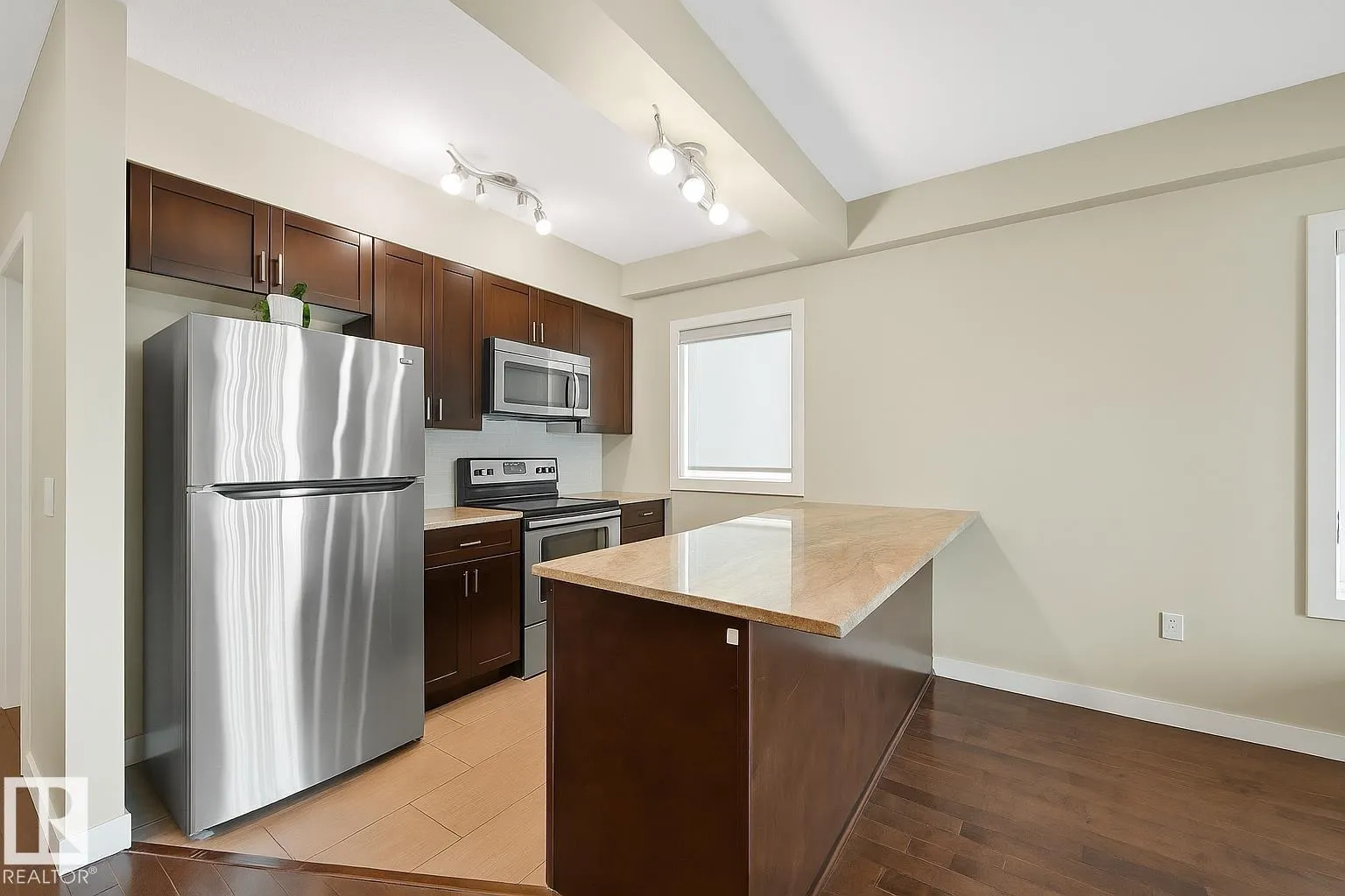 This WELL KEPT CORNER UNIT, located in the heart of Windermere Area---Windermere Waters. Features 9' ceilings throughout the unit. Open concept kitchen with modern design, looking over the LIVING and DINING room. Good sized master bedroom has walk in closet, 3 piece en-suite with titled shower. Also comes with other nice sized plus another 4 piece full bath. The complex is built with STEEL & CONCRETE and provides superior soundproof. In-floor heating system. You can enjoy the view of POND & PARK from the west facing balcony. It comes with one underground parking. Walking distance to SHOPPING, SCHOOLS, PARK and POND. Close to PUBLIC TRANSIT and all amenities. Easy access to ANTHONY & WHITEMUD freeway. (id:27476)