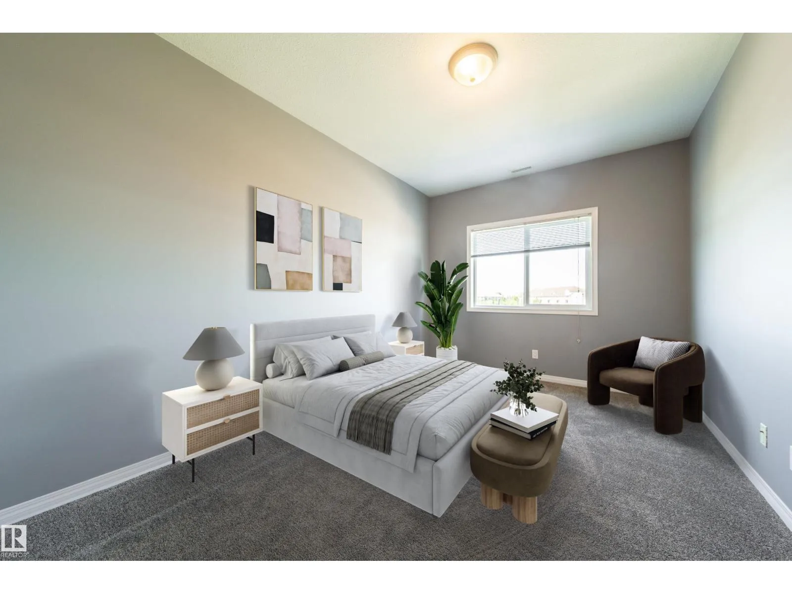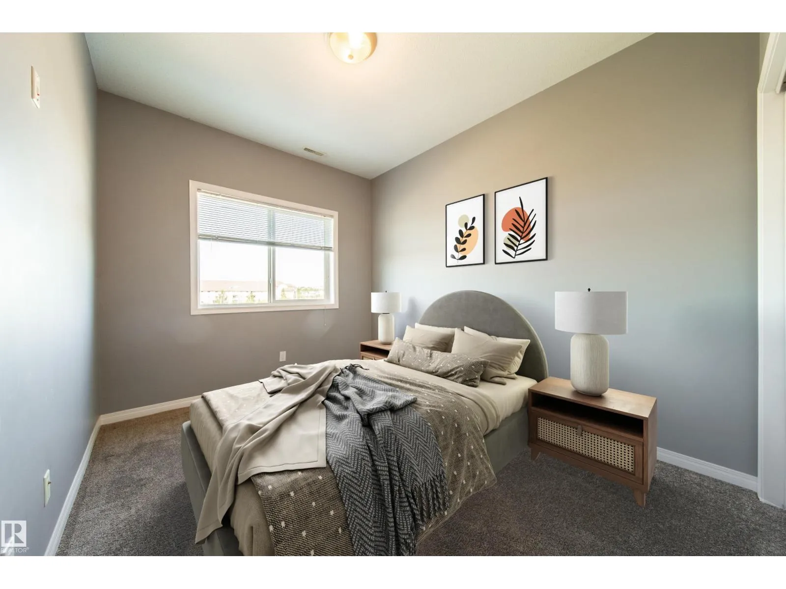 Welcome to this bright and spacious TOP FLOOR condo in the desirable Estates of Clareview! Offering 2 bedrooms, 2 full baths, and HIGH 9 ft ceilings, this sun-filled unit is designed for comfort and style. The kitchen features ample cabinetry, generous counter space, and a large sit-up islandâperfect for cooking and entertaining. The primary suite boasts a walk-through closet and private ensuite with stand-up shower, while the second bedroom is ideally located on the opposite side for guests or a home office. Additional highlights include in-suite laundry, a storage room, and upgraded flooring & bedroom carpet throughout. Step outside to your balcony with an open, private view. Enjoy building amenities such as a fitness centre, social room, car wash, and heated underground parking with storage. With pets allowed (board approval) and unbeatable access to the LRT, Clareview Rec Centre, library, shopping, and Anthony Henday, this is modern living at its best! (id:27476)