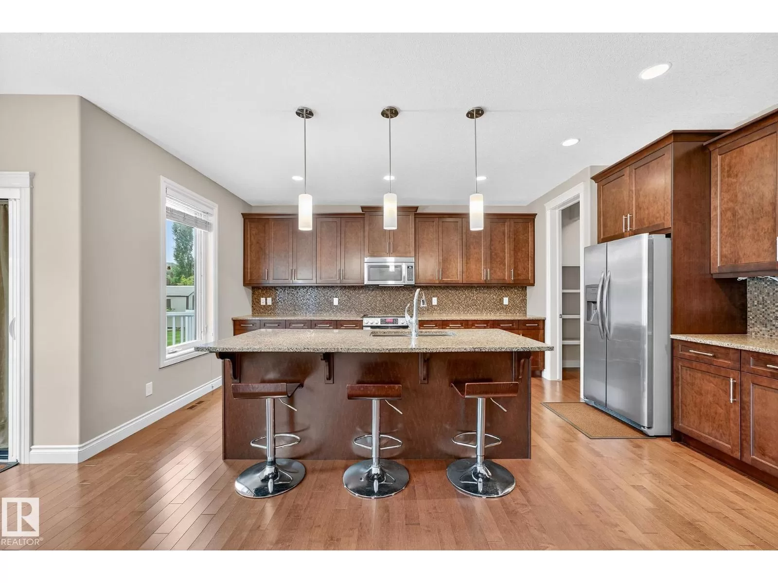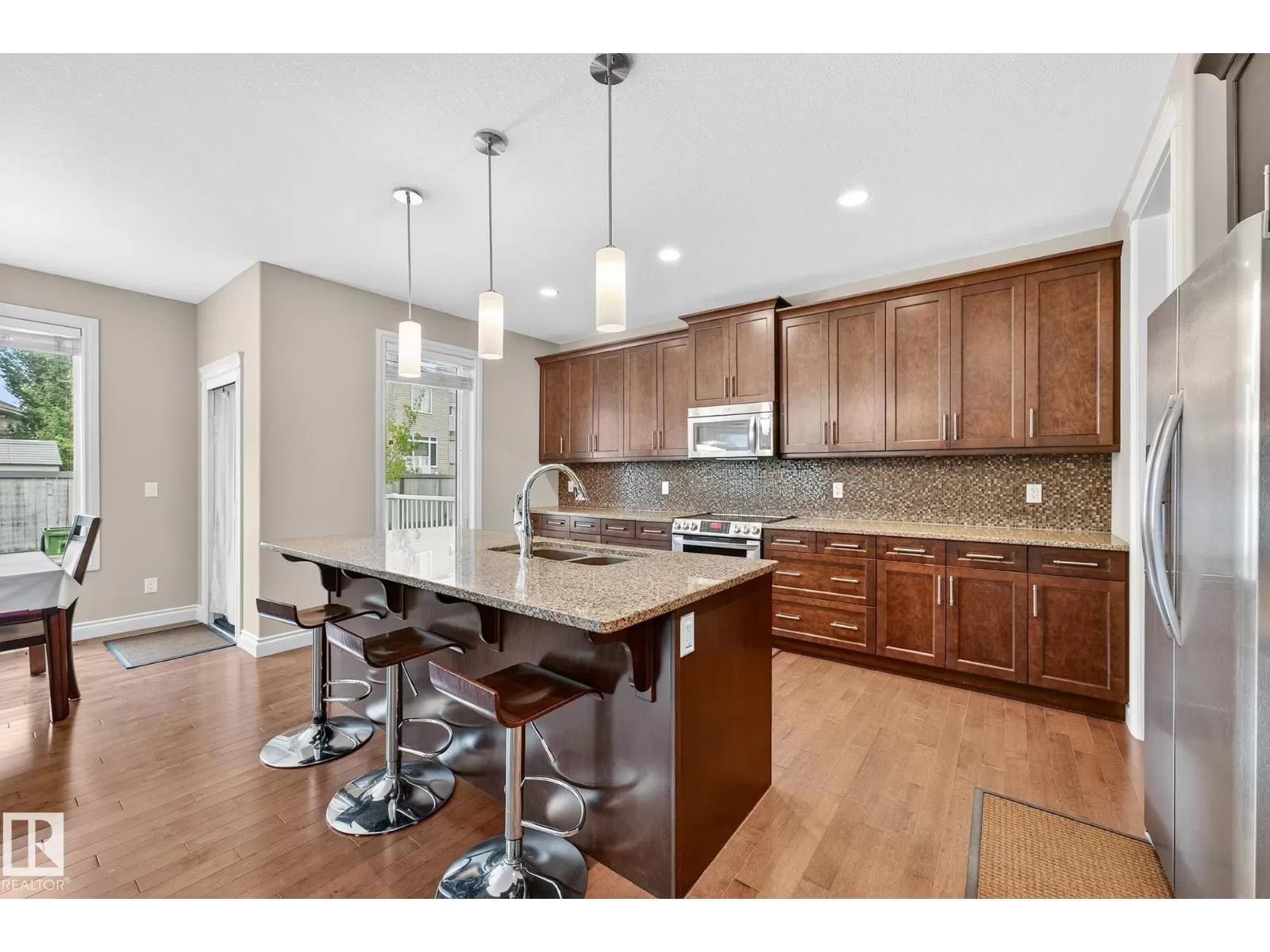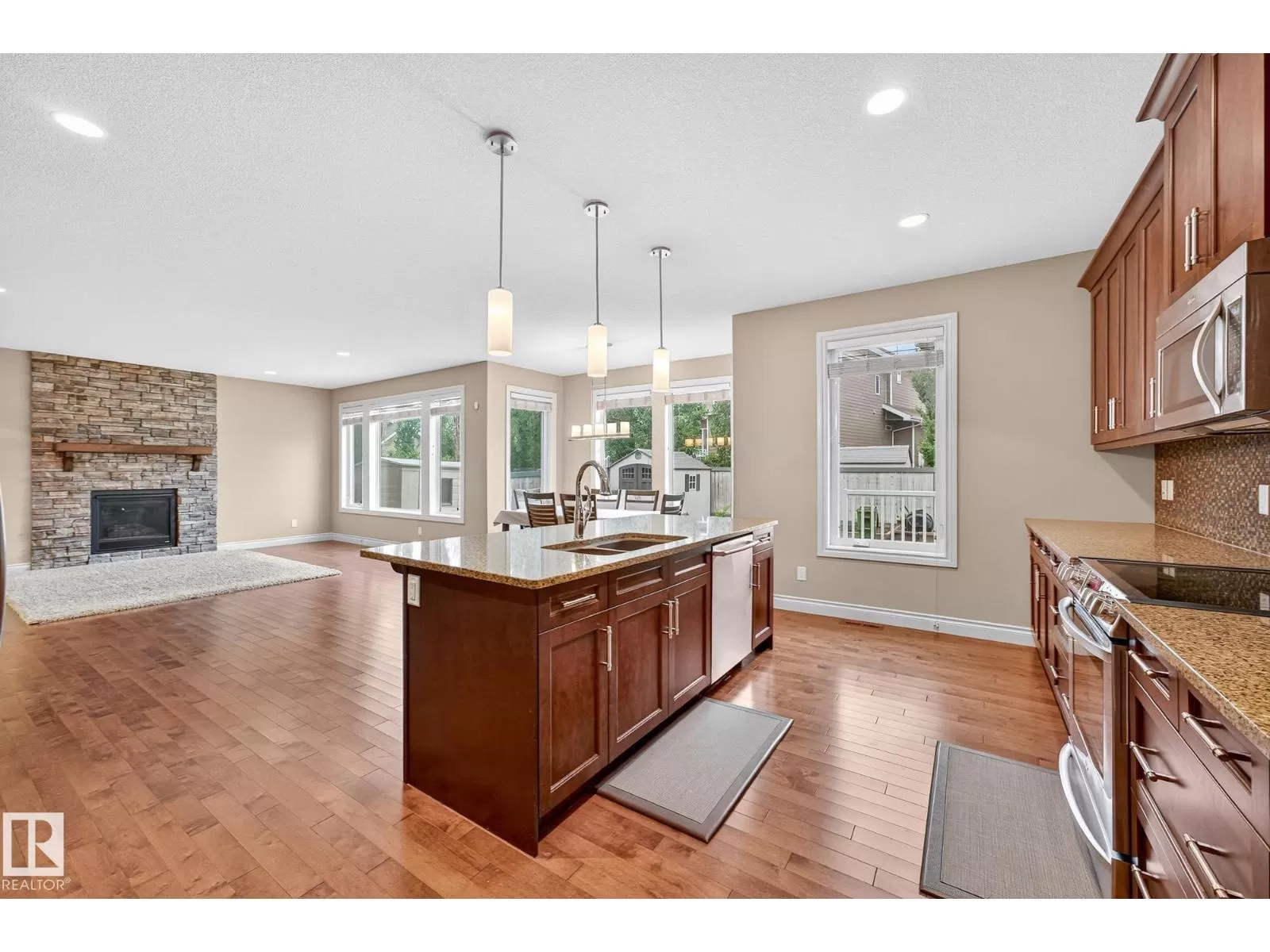 This spacious & bright home offers plenty opportunities with 5 bedrooms & a dedicated office on the main floor. Greet your guests in a spacious hallway leading to the heart of the home, an open concept living area, where a gas fire place in the living room adds warmth & charm & the large kitchen trumps with beautiful granite counters & SS Appliances. With access to the beautiful yard & genius vegetable bed, cooking up a storm & entertaining your family & friends on the deck or while watching the game will be your new favourite pastime. The finished basement provides even more living space, perfect for a home gym, theatre room, playroom, or guest suite, tailored to fit your life style. This home is wired with Cat5/Coax in every room. Outside, the home shines with custom Gemstone lighting, beautifully illuminating the exterior for the holidays or in Oilers colours on game night. A double garage & exclusive Summerside Lake privileges, this home combines comfort, style & year-round recreation. (id:27476)