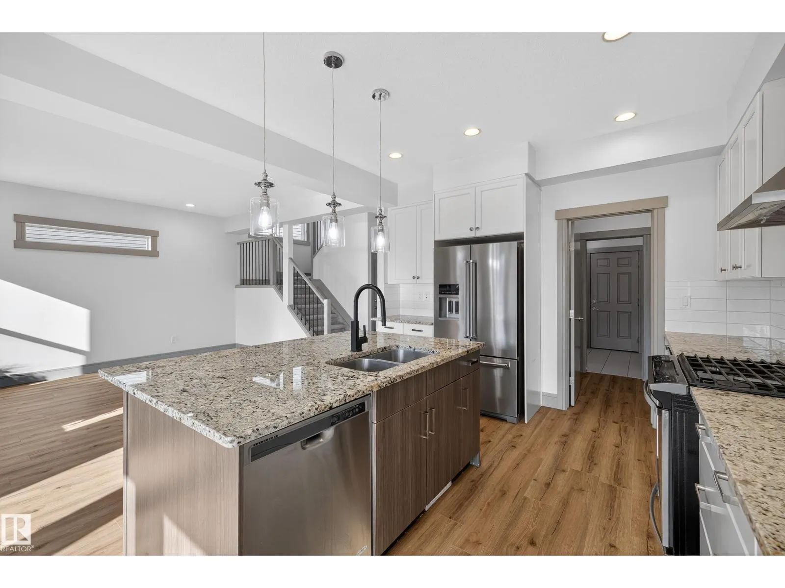 This modern cul-de-sac home is freshly painted, features new flooring, and is air conditioned for year-round comfort with 3000 sq ft of total living space! Step inside to soaring vaulted ceilings and massive windows that fill the home with natural light. The open-concept main floor boasts new vinyl plank flooring, a chef-inspired kitchen with granite counters, tile backsplash, stainless steel appliances, and a walk-through pantry that connects to the mudroom and double attached garage. Built-in MDF storage in all closets and the laundry room adds style and function. The living room centers around a sleek gas fireplace, while the bright dining nook opens to a deck and backyard. Upstairs, enjoy a large bonus room and 3 spacious bedrooms, including a primary suite with a spa-inspired ensuite. A fully finished in-law suite with separate entrance offers excellent versatility for guests or extended family. Modern updates and thoughtful design make this home truly stand out! (id:27476)