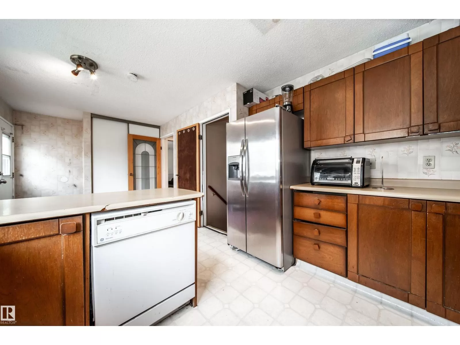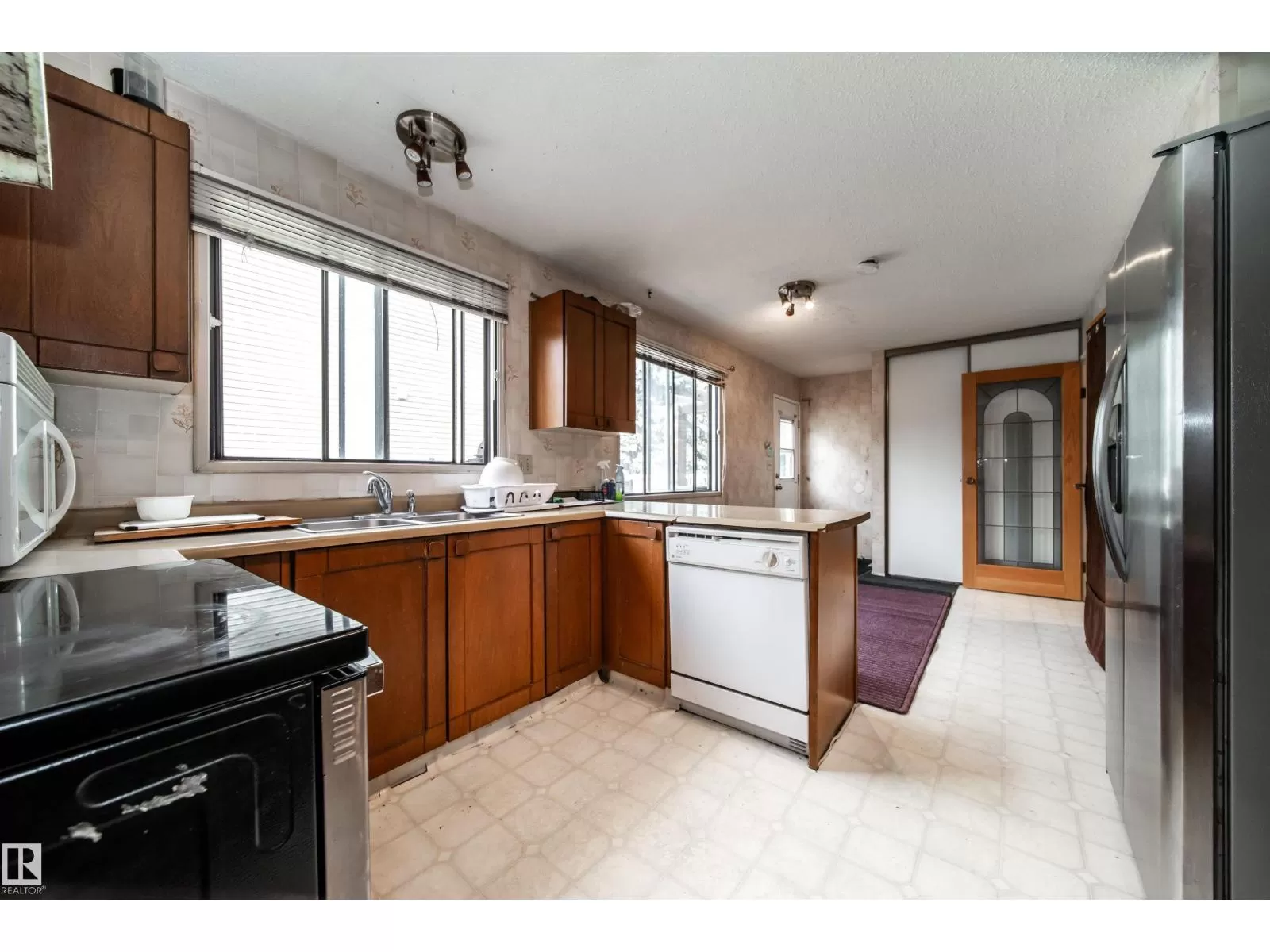 This home offers over 1,700 sq. ft. above grade (RMS) and more than 2,500 sq. ft. of total living space. The home boasts 5 bedrooms, 4 bathrooms, 2 kitchens, and 2 laundry rooms, a large composite deck, vinyl fence, with mature trees for plenty of privacy. This home provides plenty of flexibility for large families, multigenerational living, or those seeking future suite potential. While the property requires work, it has so much character and potential for the right buyer to make it their own. The spacious layout and unique features offer an excellent opportunity to add value. Conveniently located near West Edmonton Mall, schools, parks, and amenities, this home combines size, versatility, and location. A great option for those willing to invest in updates and create a space that truly reflects their needs. (id:27476)