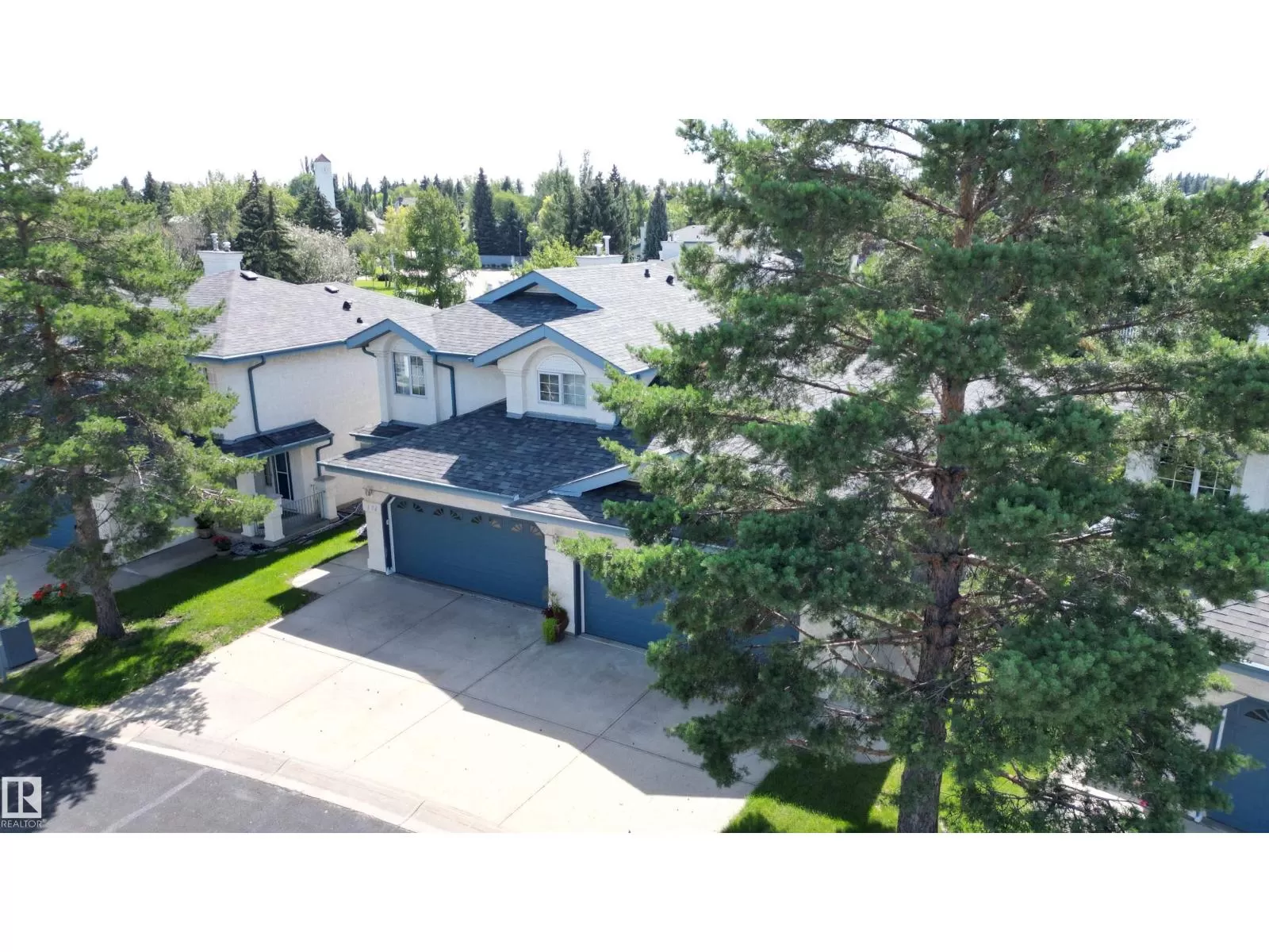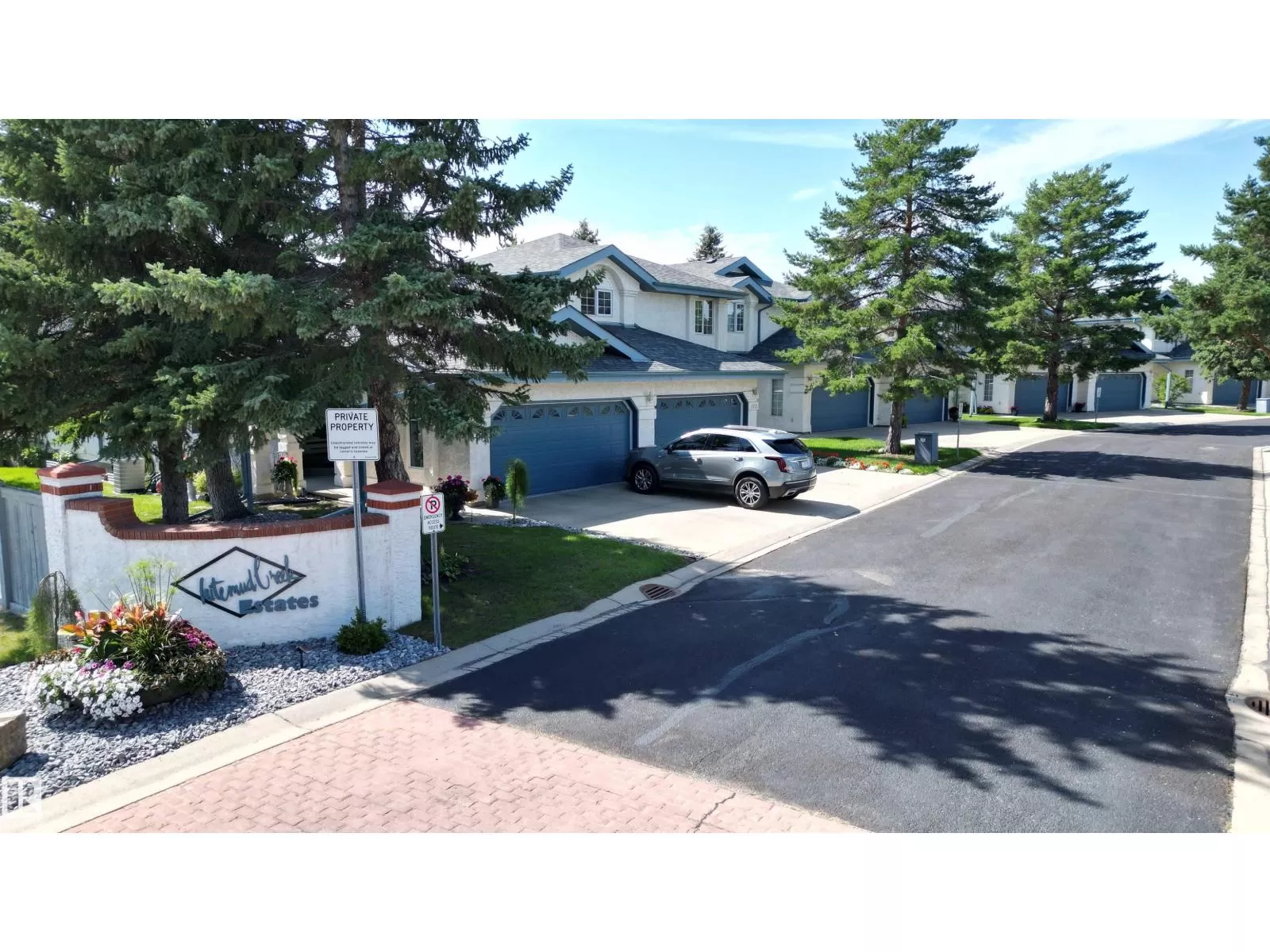 Step into comfort and charm in this 3-level split half duplex in Whitemud Creek Estates of Ogilvie Ridge Phase 1. From the moment you enter, youâll love the bright and spacious living room, complete with a cozy fireplace that sets the tone for relaxed evenings. The kitchen shines with sleek white cabinets and plenty of prep spaceâwhile the dining area, overlooking the deck through a big sunlit window, is made for gathering. Upstairs, the primary bedroom is your private retreat with a walk-in closet and 4-piece ensuite. Another bedroom and full bath complete this level. The fully finished basement brings extra room to live and play, with a large recreation area featuring a second fireplace, plus a third bedroom, 3-piece bath, and handy storage. Out back, enjoy a spacious deck and fenced yard ideal for entertaining or simply soaking up the outdoors. With A/C, Hunter Douglas blinds, a double attached garage, and a warm, welcoming vibe throughout, this home is ready to be loved. (id:27476)