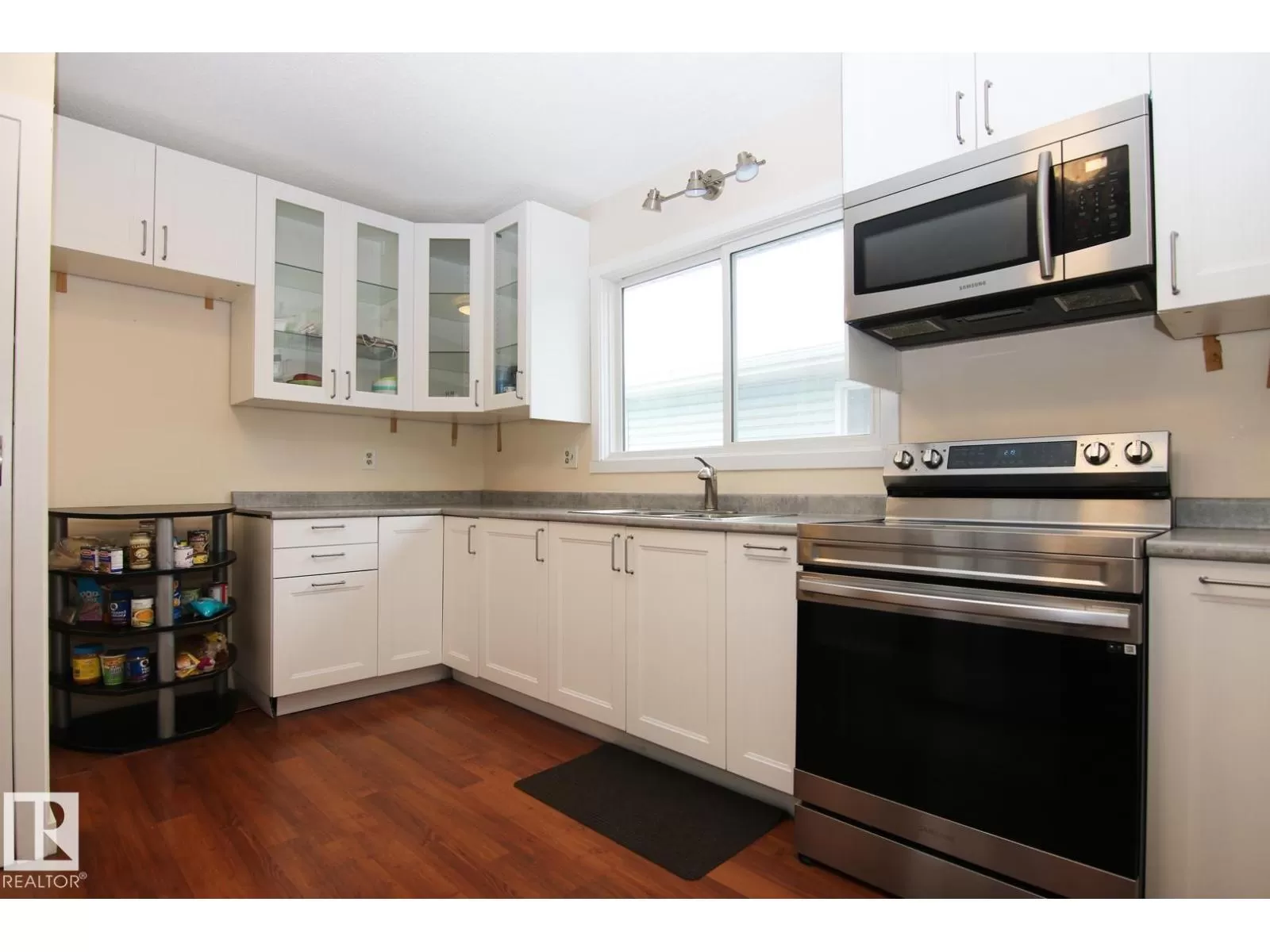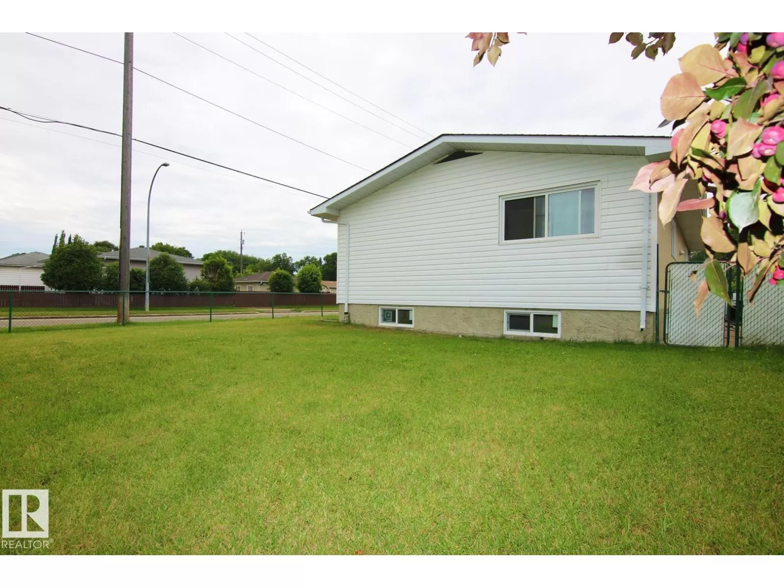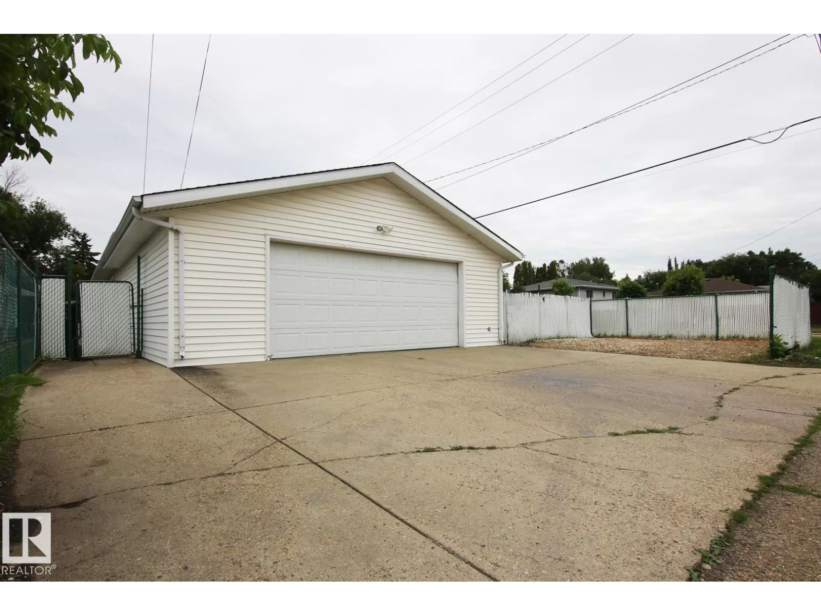 Great Curb Appeal! Spacious Corner Lot, Huge Garage & Plenty of Parking! Welcome to this 1,219 sq. ft. fully finished bungalow! This home has seen many updates including windows, siding, soffits, fascia, shingles, furnace, hot water tank, stainless steel appliances, and a refreshed kitchen with updated cabinets. Offering 4 bedrooms plus a flex room that could be a 5th, 2 bathrooms, and a separate entrance for future suite potential-ideal for families or investors. The finished basement has a large rec room with a charming wood-burning fireplace. Outside features an extended double garage with space for up to 6 vehicles. The fully fenced and landscaped yard is split into two areasâideal for dogs or tenants. This home is steps from Jubilee Park with its spray park, skating rinks, playground, and picnic areas. Also, close to shopping, public transportation, restaurants, the North Sask River Valley trails, and roadways including Yellowhead Trail and Anthony Henday. Pet & Smoke free! Donât miss this one! (id:27476)