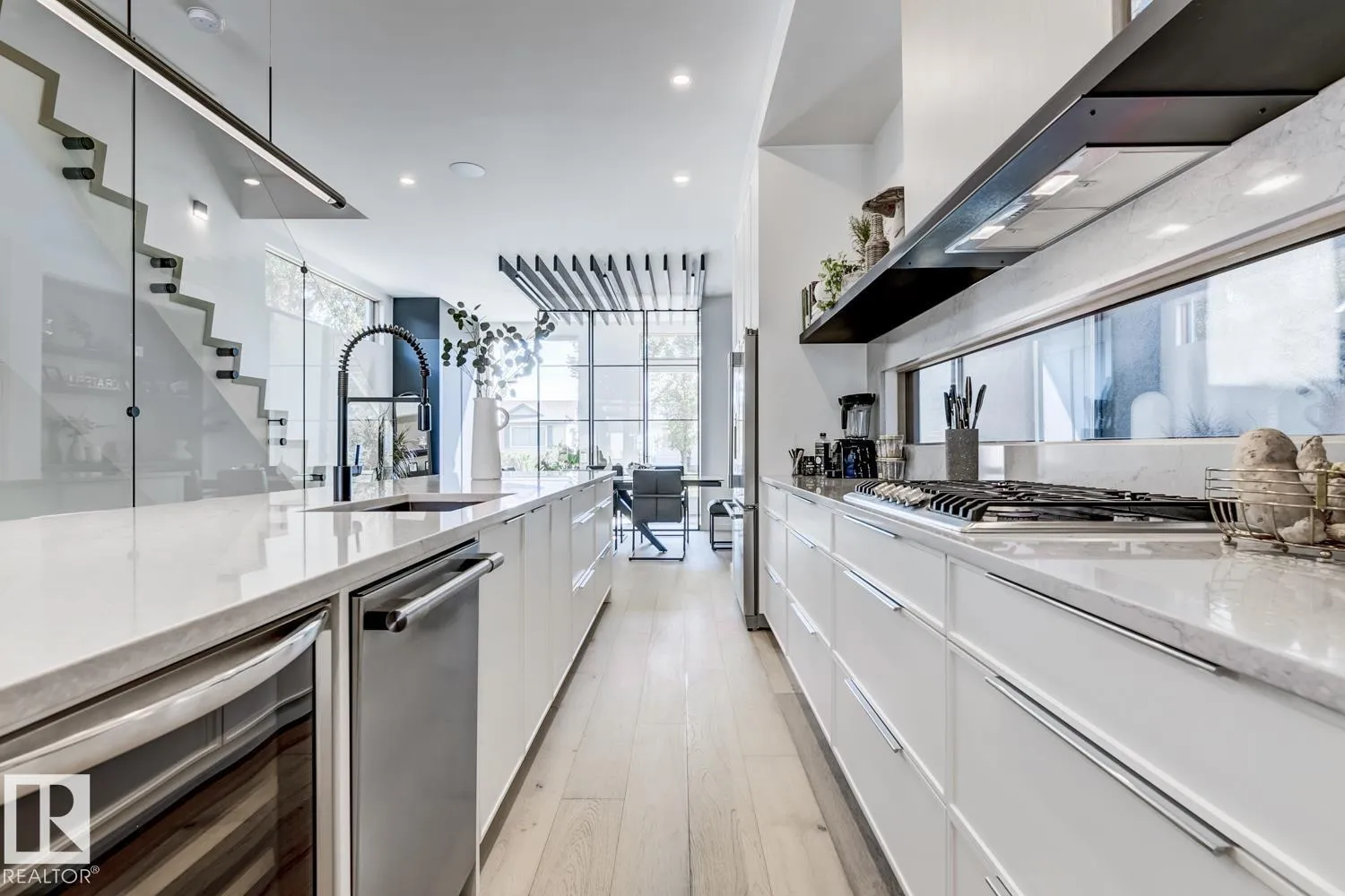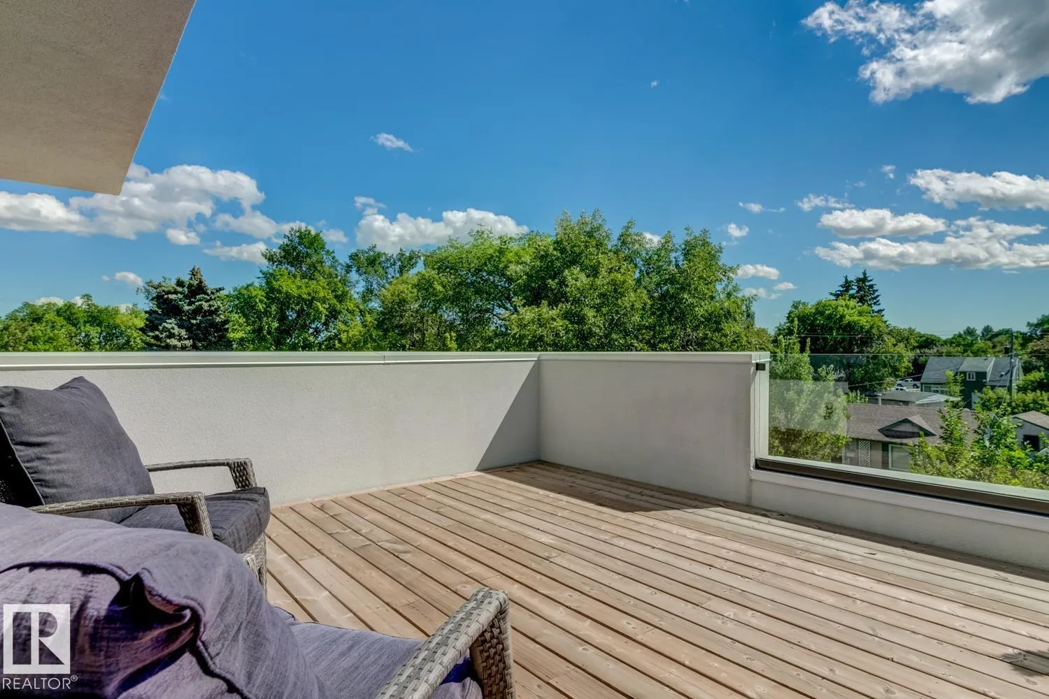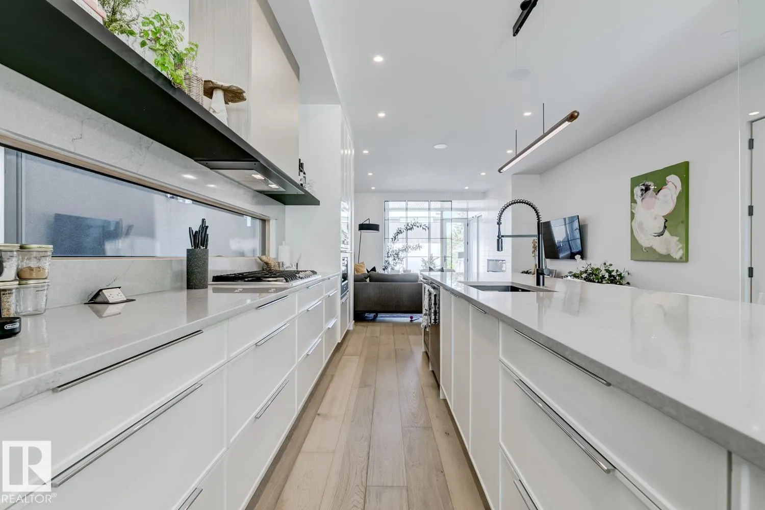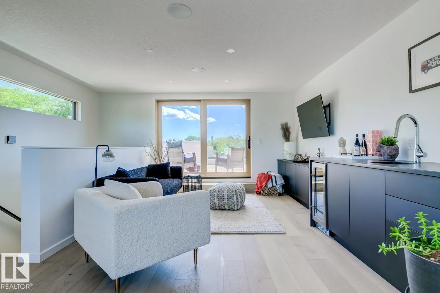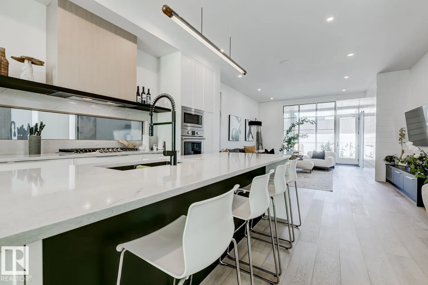 The White Russian, custom-built by Haynes Homes, designed by Design Two Group & Nako Design, is a masterpiece of opulence & precision that showcases top-tier construction, timeless finishes, & modern elegance. It features 2 rooftop patios, LEGAL 1 BEDROOM/ 1 BATH SUITE above the double garage, & open-concept spaces w/ white oak floors, steel-framed glass walls by Forge 53 & triple-pane windows by Lux. Recessed lighting & modern fixtures enhance natural light on all 3 levels. The kitchen w/ Waygood Kitchens cabinetry, Blum hardware, SS appliances, & Himalayan Quartz & concrete counters, is stunning. Sliding patio doors open to a large deck. The upstairs primary suite has a custom walk-in closet & spa-like 6pc ensuite. 2 more bedrooms, a full bath & laundry room complete the floor. The 3rd floor offers a bonus room w/ rooftop patio access and city views. Additional features incl Russ Sound, smart lighting, tankless water system & Oxygen Moss Wall. Finished basement has a rec room, 4th bed & full bath. (id:27476)