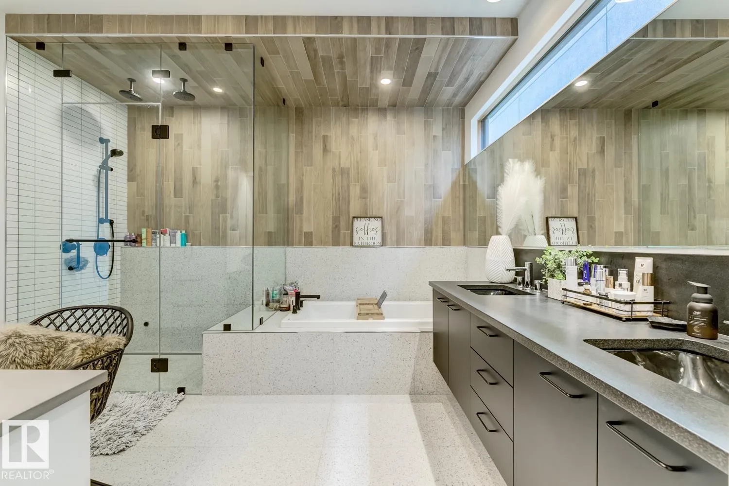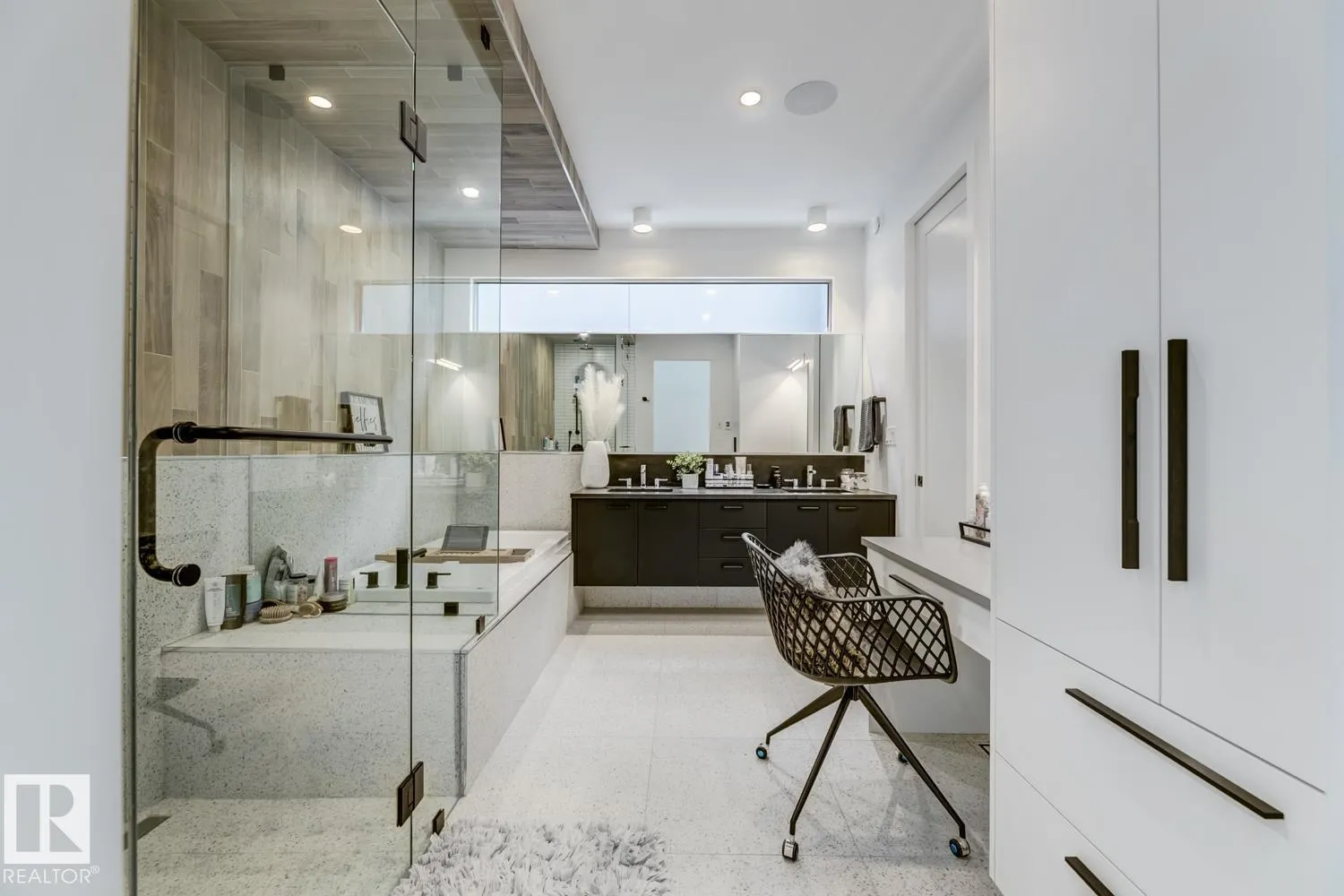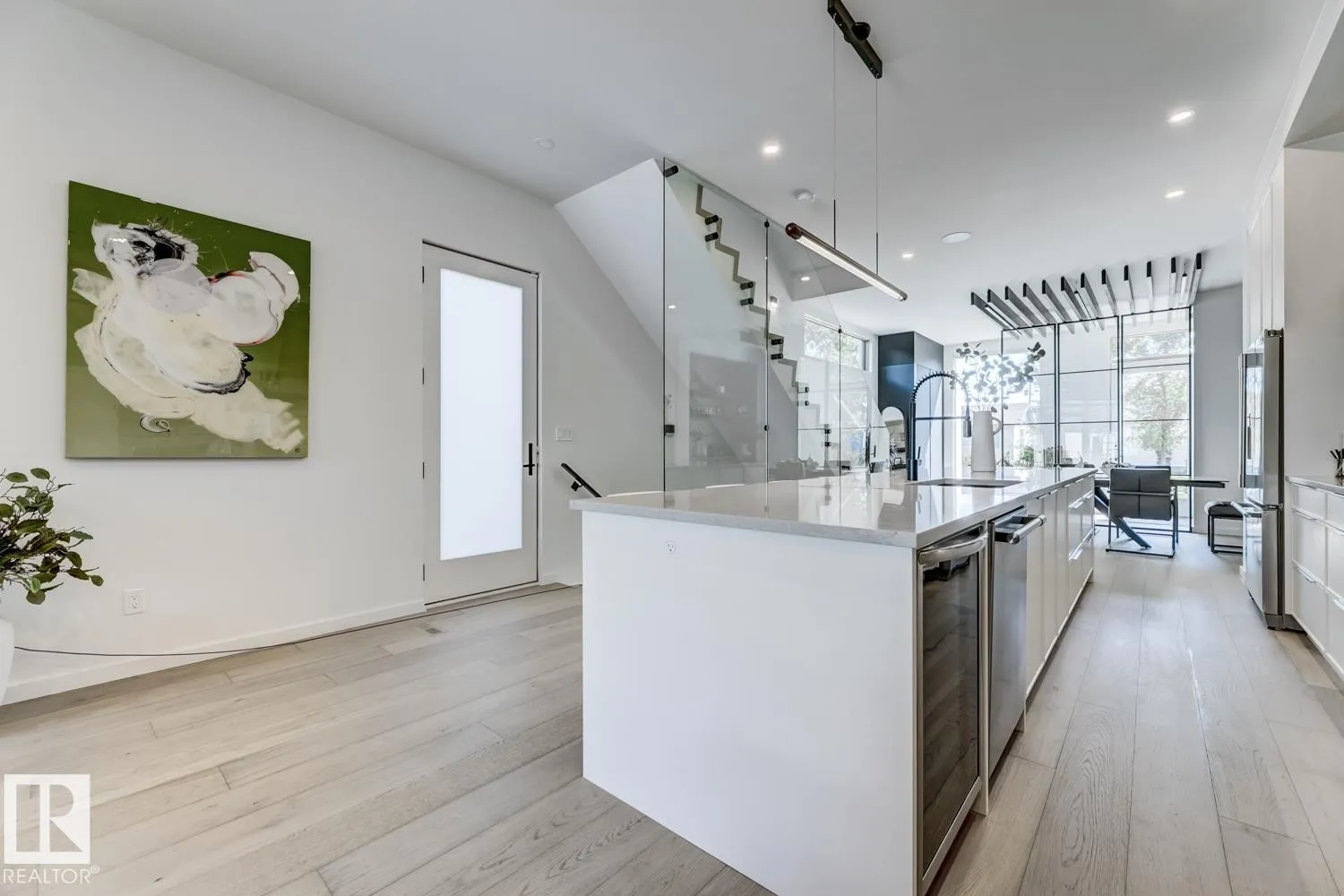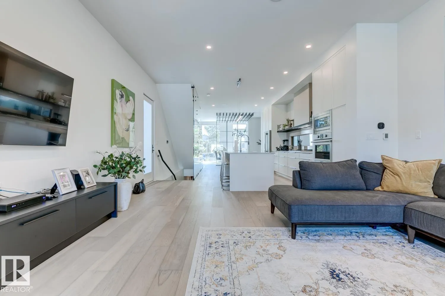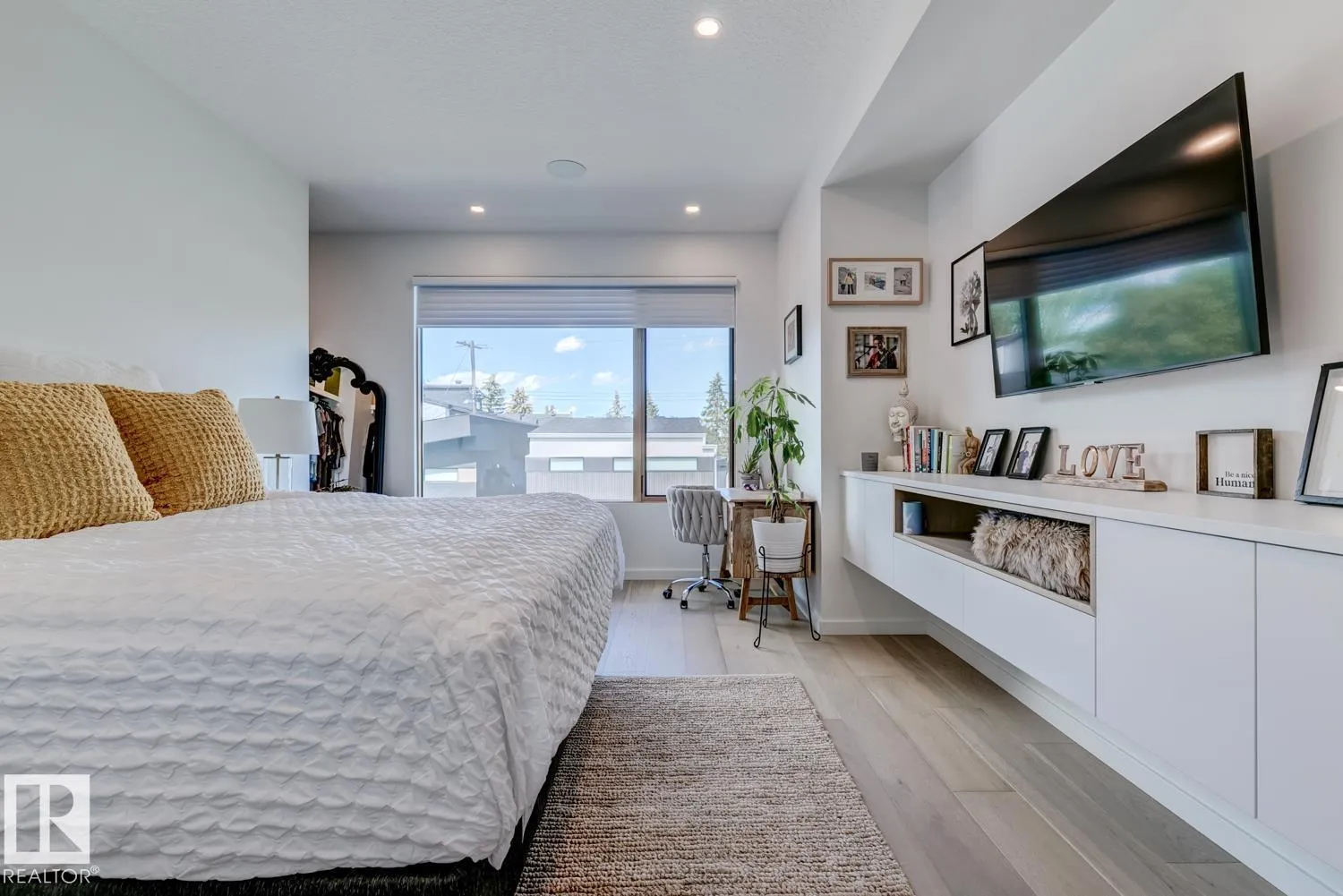 The White Russian, custom-built by Haynes Homes, designed by Design Two Group & Nako Design, is a masterpiece of opulence & precision that showcases top-tier construction, timeless finishes, & modern elegance. It features 2 rooftop patios, LEGAL 1 BEDROOM/ 1 BATH SUITE above the double garage, & open-concept spaces w/ white oak floors, steel-framed glass walls by Forge 53 & triple-pane windows by Lux. Recessed lighting & modern fixtures enhance natural light on all 3 levels. The kitchen w/ Waygood Kitchens cabinetry, Blum hardware, SS appliances, & Himalayan Quartz & concrete counters, is stunning. Sliding patio doors open to a large deck. The upstairs primary suite has a custom walk-in closet & spa-like 6pc ensuite. 2 more bedrooms, a full bath & laundry room complete the floor. The 3rd floor offers a bonus room w/ rooftop patio access and city views. Additional features incl Russ Sound, smart lighting, tankless water system & Oxygen Moss Wall. Finished basement has a rec room, 4th bed & full bath. (id:27476)