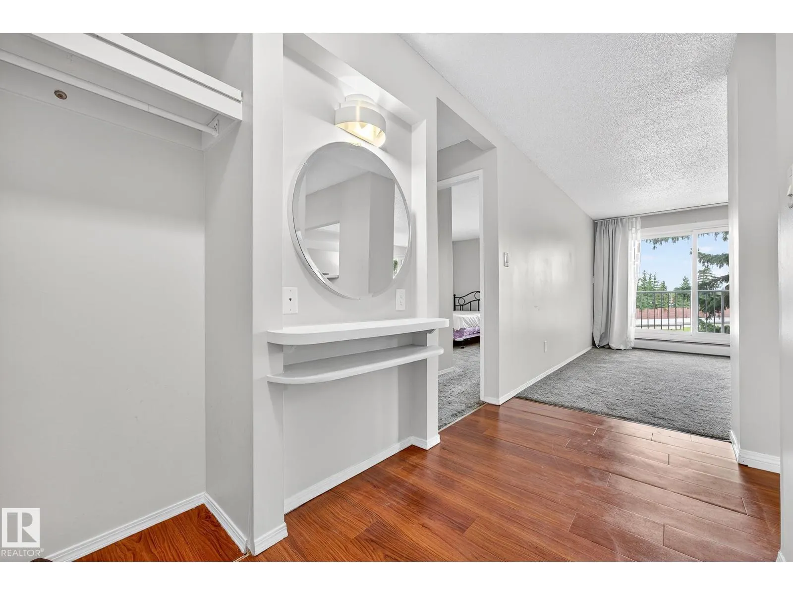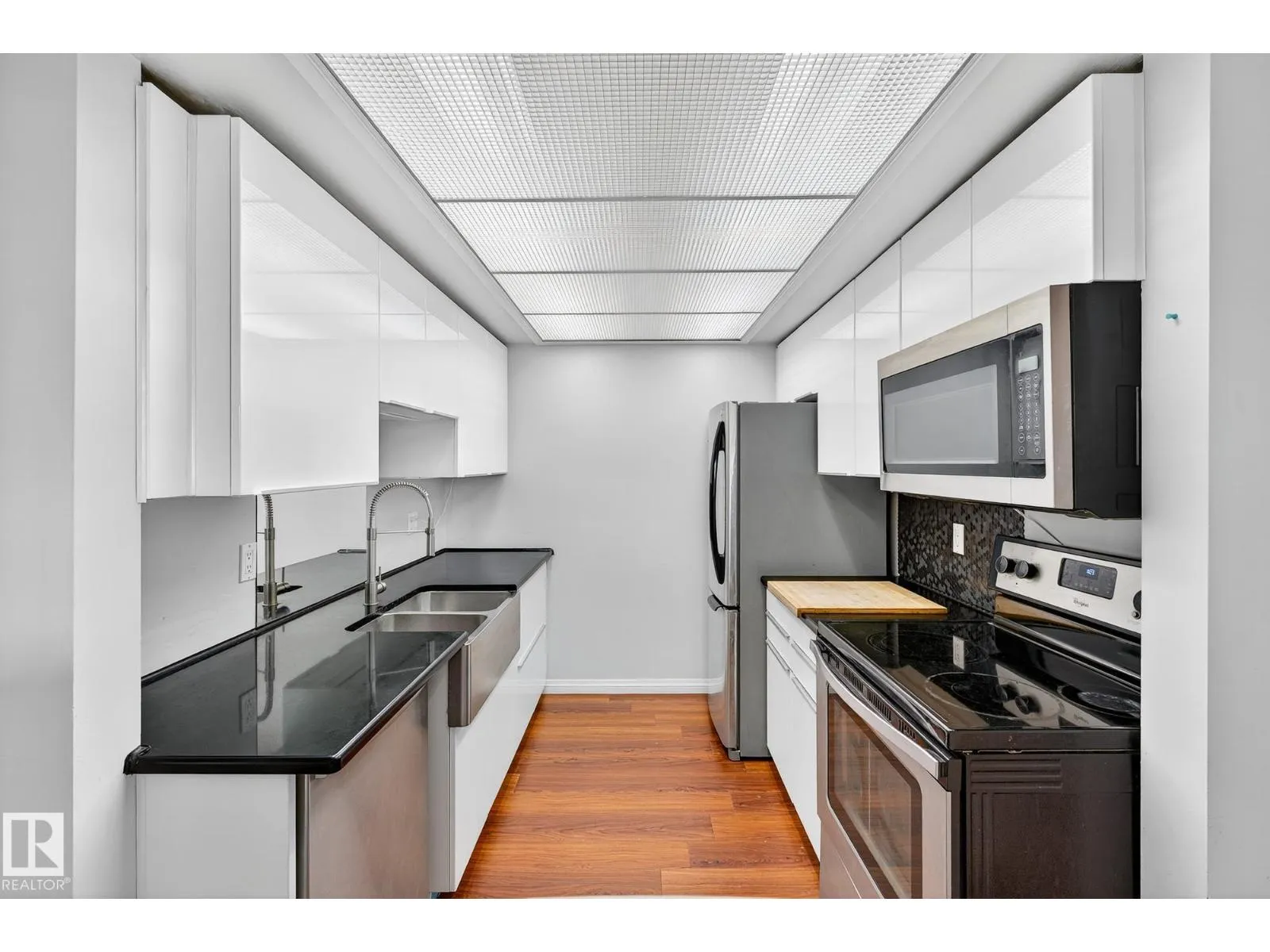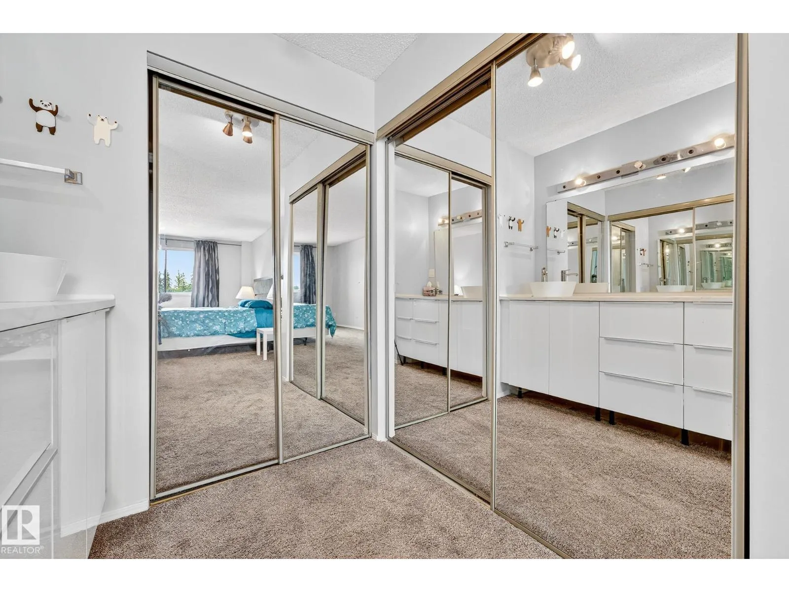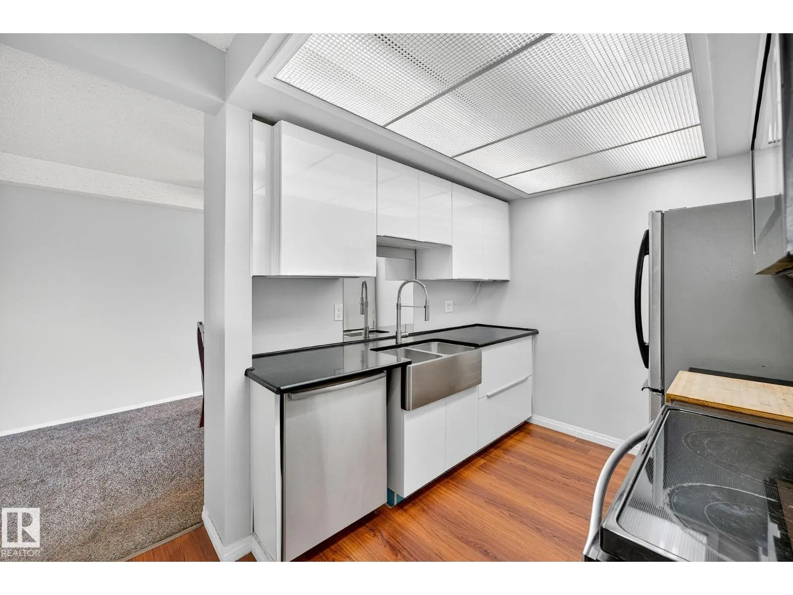 Step into this updated 2-bedroom condo, styled with neutral decor & thoughtful details throughout. The bright, functional kitchen offers stainless steel appliances, quartz countertops, & a sleek, contemporary design. Just off the kitchen is the dining area. The spacious living room boasts updated windows & sliding doors that open to a large balcony. Down the hall, the generous primary bedroom includes a refreshed 2pce ensuite with ample drawer space & double closets with mirrored sliding doors. A 2nd bedroom with double closet & an updated 4pce main bathroom complete the layout. Addt'l highlights include a stackable washer/dryer in a storage closet, newer windows & a well-maintained building. This building offers an indoor pool, hot tub, sauna, gym, party room & deck. Great layout, excellent location, & desirable building amenities - this condo is perfect for students & professionals alike. It is located steps from the Whitemud Creek Ravine, close to the Snow Valley Ski Club, golf, & endless amenities. (id:27476)