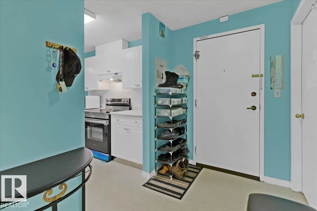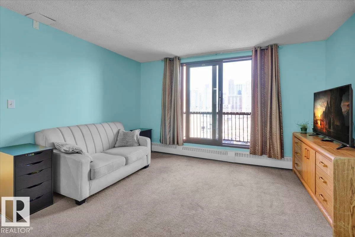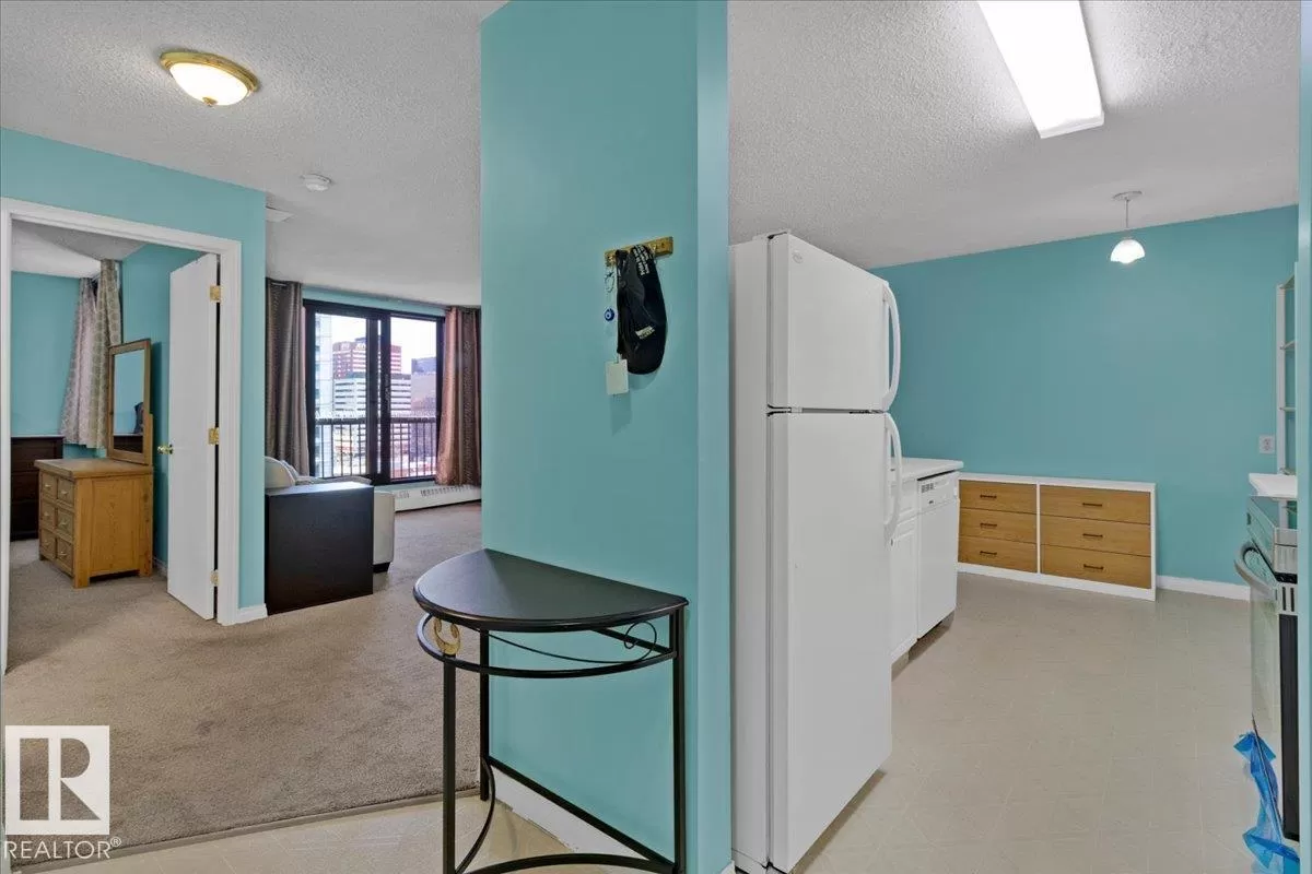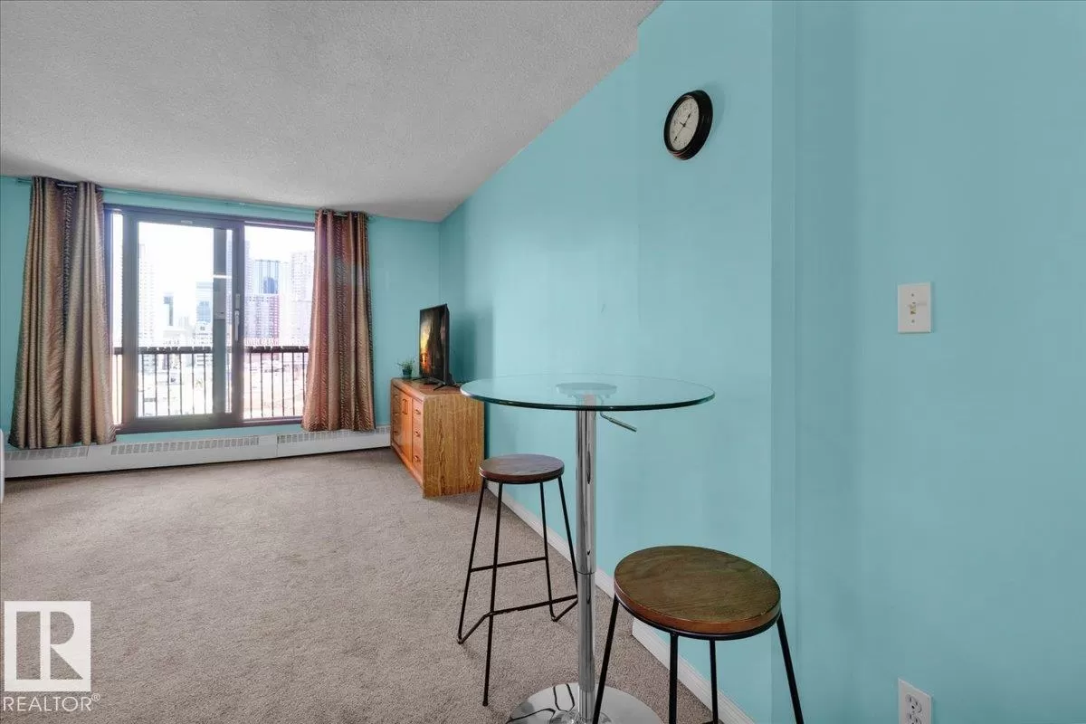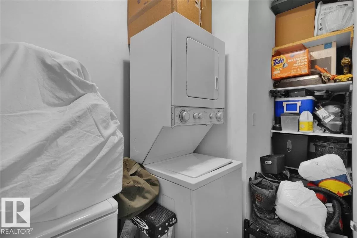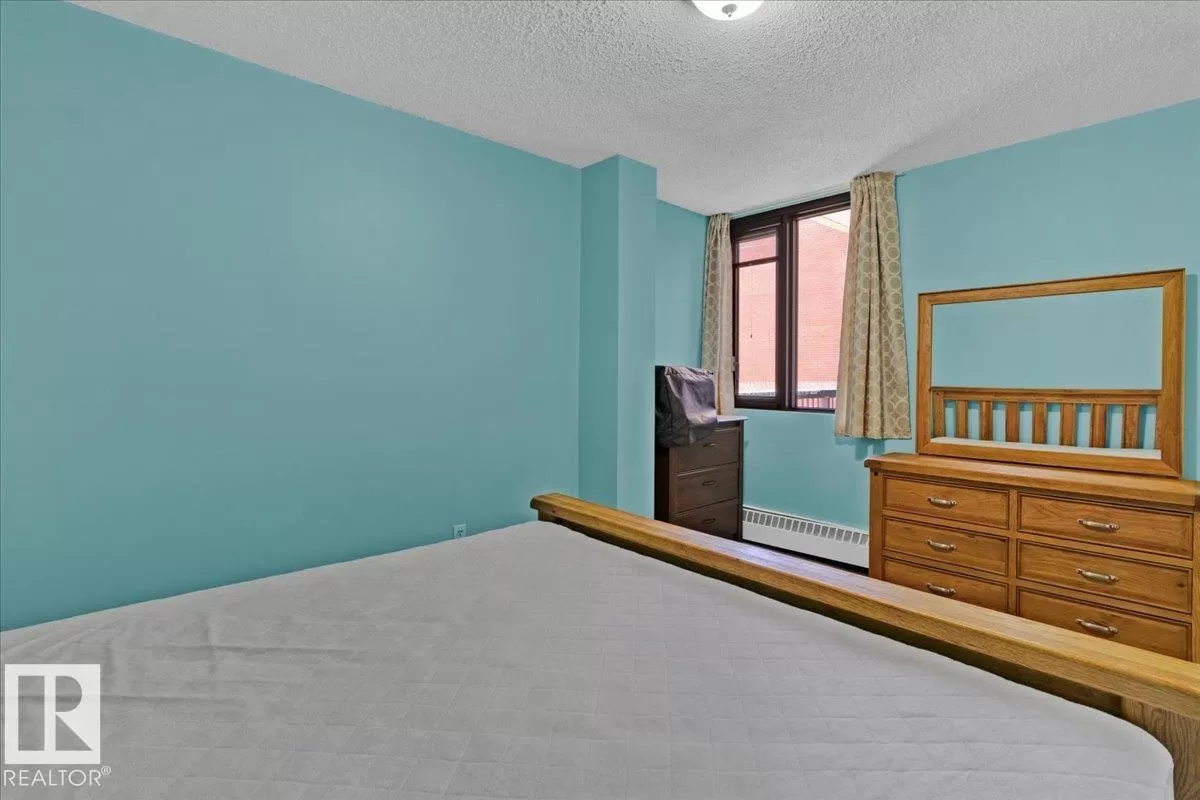 Fantastic city centre location offering exceptional convenience and much affordable and easy care downtown living style at its best. This perfect 1-bedrooms concrete highrise condo has an open floor plan featuring large living room, nice size dining room and kitchen. Nice sized main bath, In-suite washer and & dryer and large storage/ pantry bring the comfort to your everyday living. Enjoy the summer evenings on the huge balcony with a nice day/night city view and a private storage room. Building amenities feature roof top patio, fitness room, rec/room & onsite management. Perfect first time home or investment property. (id:27476)