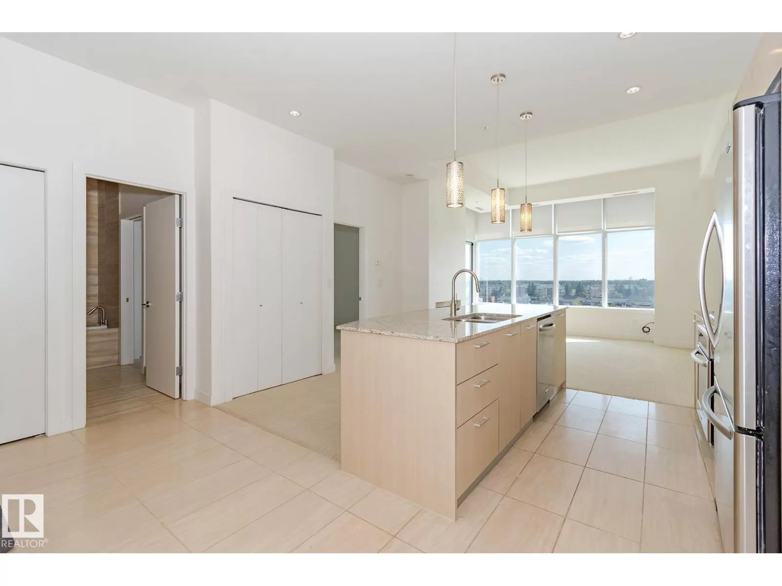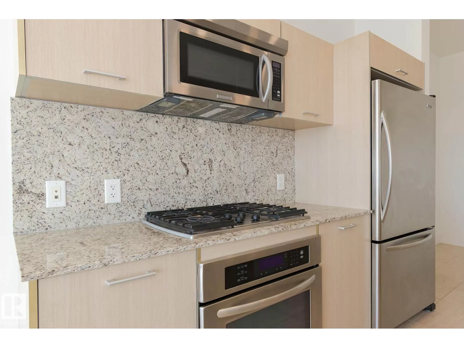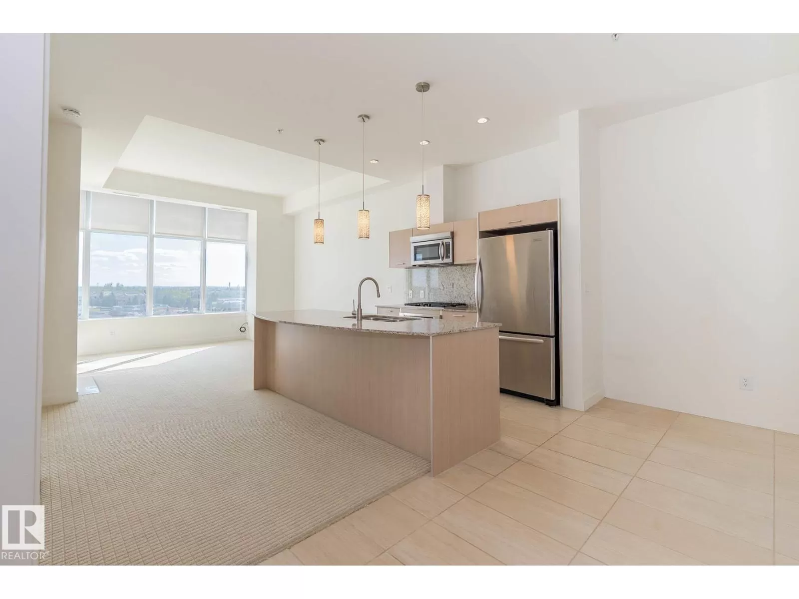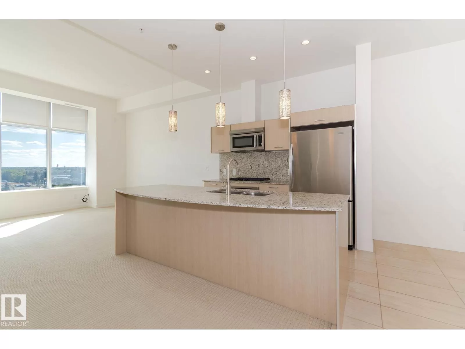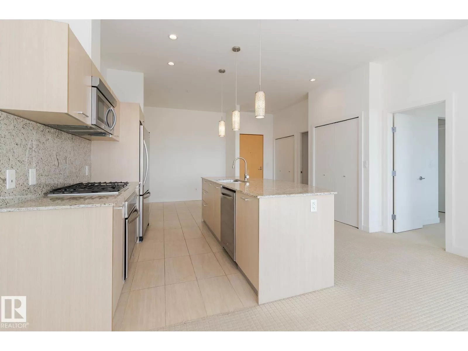 Welcome to One at Century Park, where luxury, comfort, & convenience come together in this stunning top-floor one-bedroom condo located in the sought after south tower. Bathed in natural light from large south facing windows, this home feels airy & spacious with its soaring high ceilings & open concept design. The modern kitchen features light wood cabinetry, granite countertops, stainless steel appliances, & an island with curved seating, perfectly complemented by a generous dining area. The large living room offers plenty of space to relax & enjoy the beautiful views or step out onto your private balcony to soak in the sunshine. The bedroom is well-sized, & elegant bathroom includes high-end finishes. Enjoy the convenience of in-suite laundry, titled underground parking, & a titled storage locker. The secure building features an exercise room & is ideally located close by tons of shopping, restaurants, LRT access, & Anthony Henday Drive. Perfect for professionals or downsizers alike (id:27476)