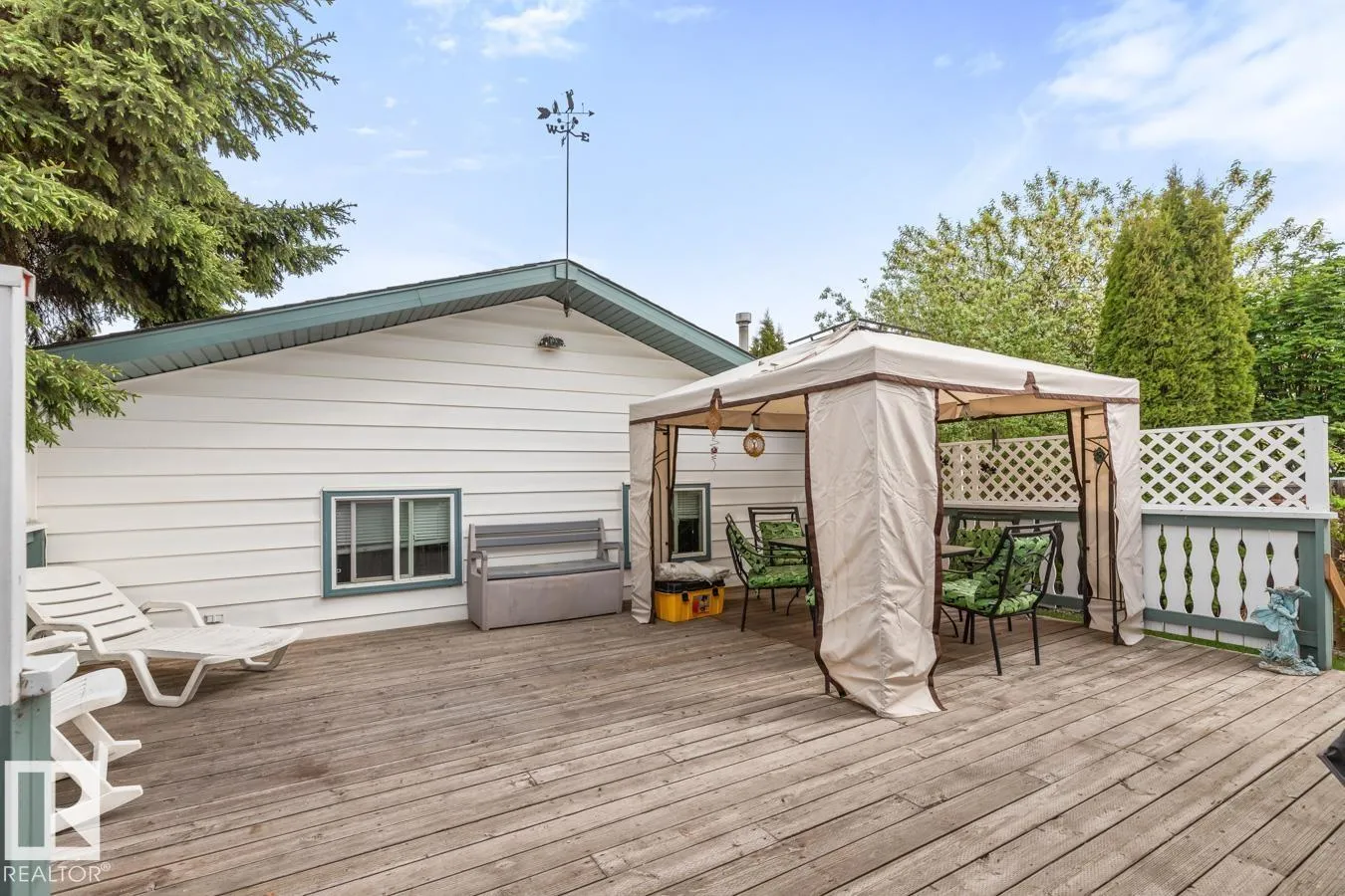Nestled in Sakaw's SE corner, this cozy bungalow will be sure to entice you! This great home has been very well maintained over the years, allowing you to buy with confidence: some of the updates/upgrades include hardwood flooring, quartz countertops, MF triple pane windows HIEFF furnace, newer HWT, and outside, newer shingles, a huge deck (with NG connection) to the heated double garage, which also has 220V wiring! Downstairs, watch the big game or catch a movie in the large Family Room, complete with a wet bar! Another bedroom /bathroom completes the lower level. Sakaw is located on Edmonton's south edge, with easy Anthony Henday access to points beyond, and schools, shopping, and places of worship are all located within walking distance or short drive. A wonderful property indeed! (id:27476)
