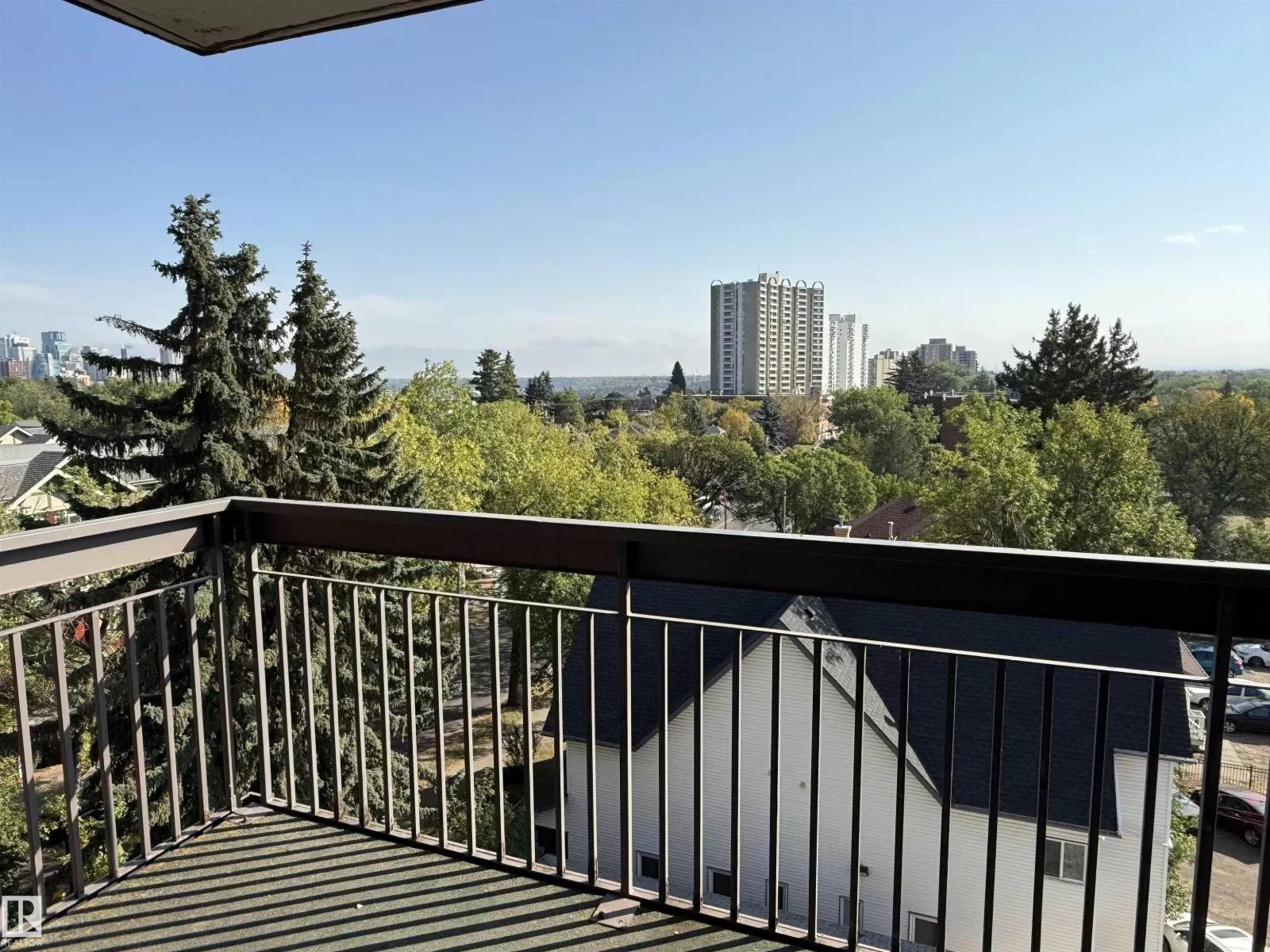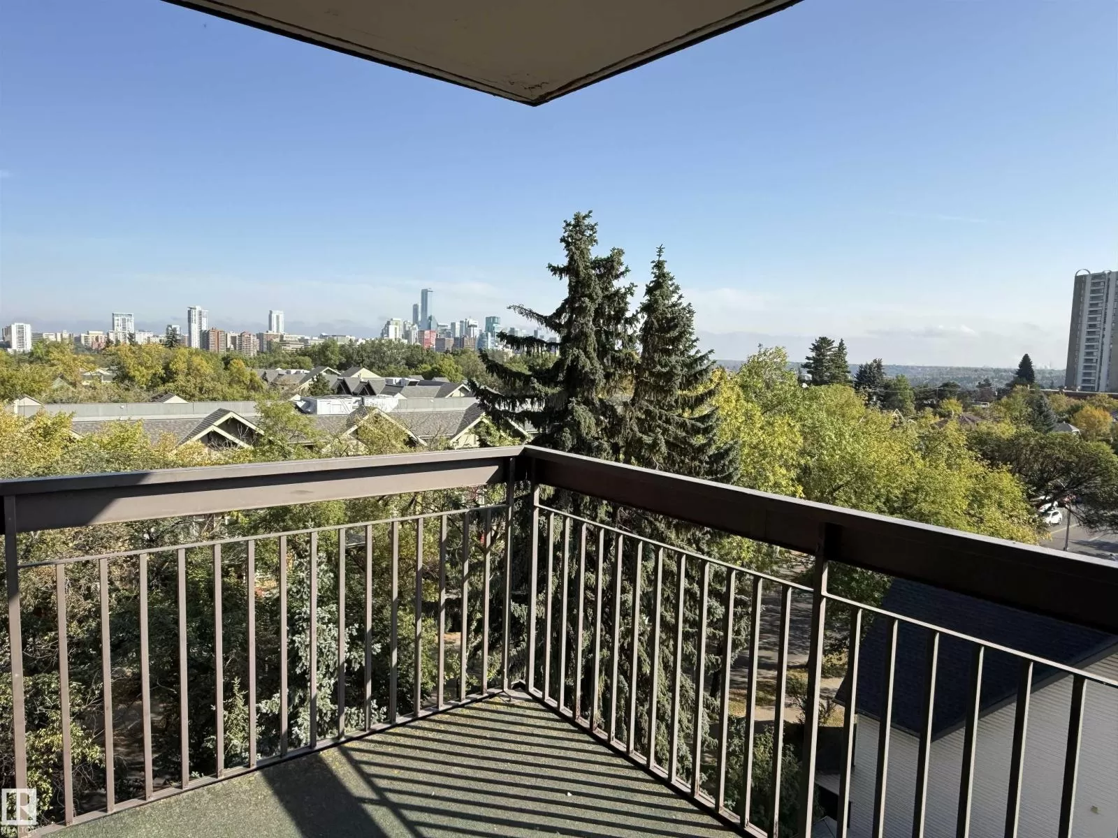 This stunning 6th floor one-bedroom unit offers breathtaking downtown and river valley views from a spacious north east facing balcony. Designed with modern living in mind, the open-concept layout features 983 sq ft of living space which includes a large living and dining area with fireplace, spacious kitchen with ample cabinets and a generous primary bedroom with wall-to-wall closets. There is In-suite laundry and a good size storage room just off the balcony area that can store bikes, etc. Upgrades include: laminate flooring, ceramic floor tile in bathroom & laundry area, newer carpet in bedroom, newer kitchen and bathroom counters, Hunter Douglas blinds, lighting and paint. Additional highlights include one heated underground parking spot, all utilities included in condo fees of $660.02/month (heat, water, sewer & power), and access to a highly desirable location just steps from the University of Alberta, University Hospital, LRT, and vibrant Whyte Avenue. (id:27476)