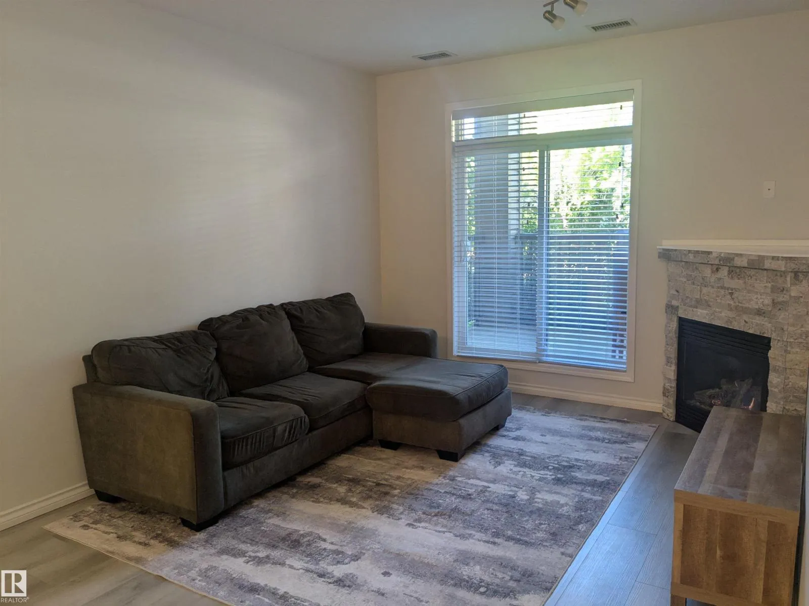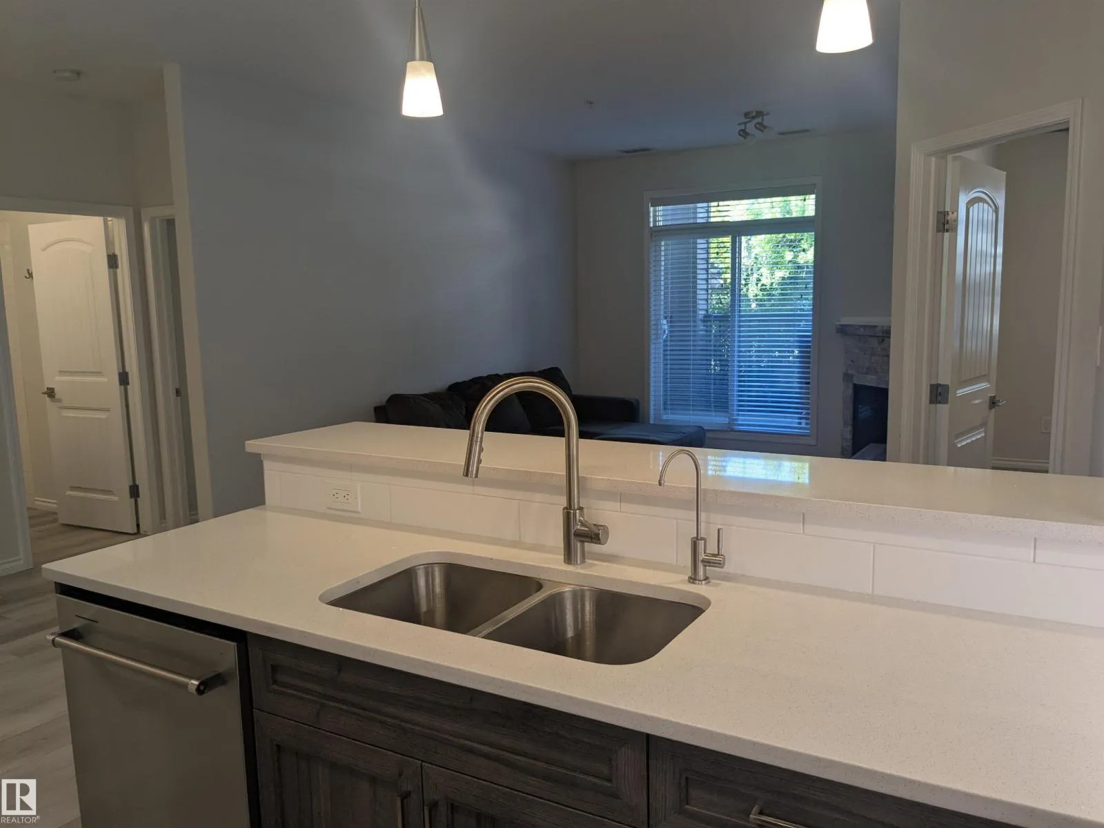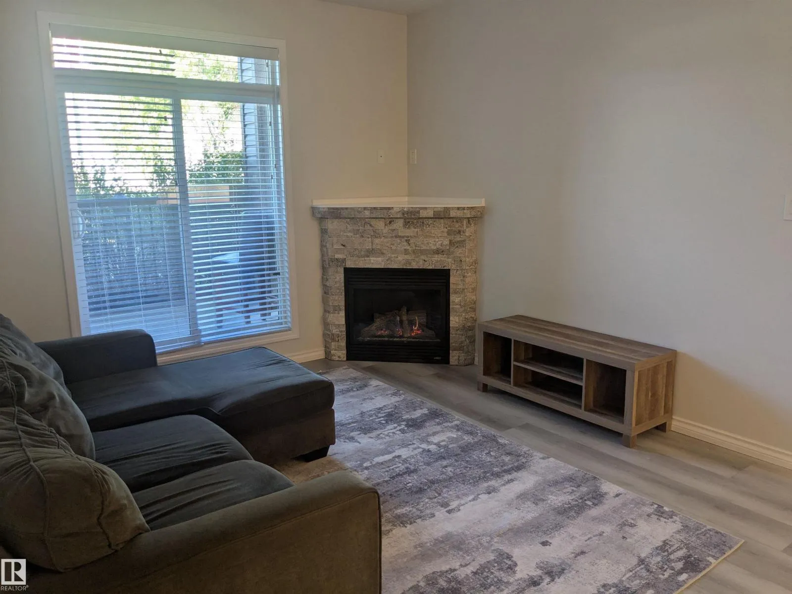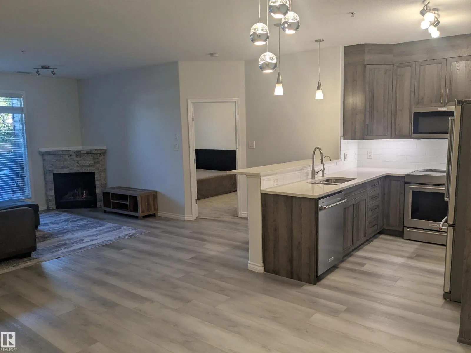 Beautiful upgraded main floor condo in the desirable Tradition at Riverside. Sleek and modern, its hard to find a 2 bedroom/2 bathroom unit like this. Luxury vinyl plank flooring, light paint colors, chic lighting. Totally upgraded kitchen featuring stainless steel KitchenAid appliances, quartz countertops, tiled backsplash, ceiling height cabinets, under cabinet lighting. Spacious living room with a corner gas fireplace and patio doors leading out to the main floor balcony. 2 spacious bedrooms; including a primary bedroom with double closets and an updated 3pc ensuite bathroom with walk in tiled shower. Bonus storage area which holds the in suite laundry. Titled underground parking stall with caged storage space. Many condo amenities including a large gym, movie room, games room, social room, 2 guest suites, car wash bay. Just off Terwillegar and Anthony Henday, great spot to go any direction from there. Ready to just move in and enjoy! (id:27476)