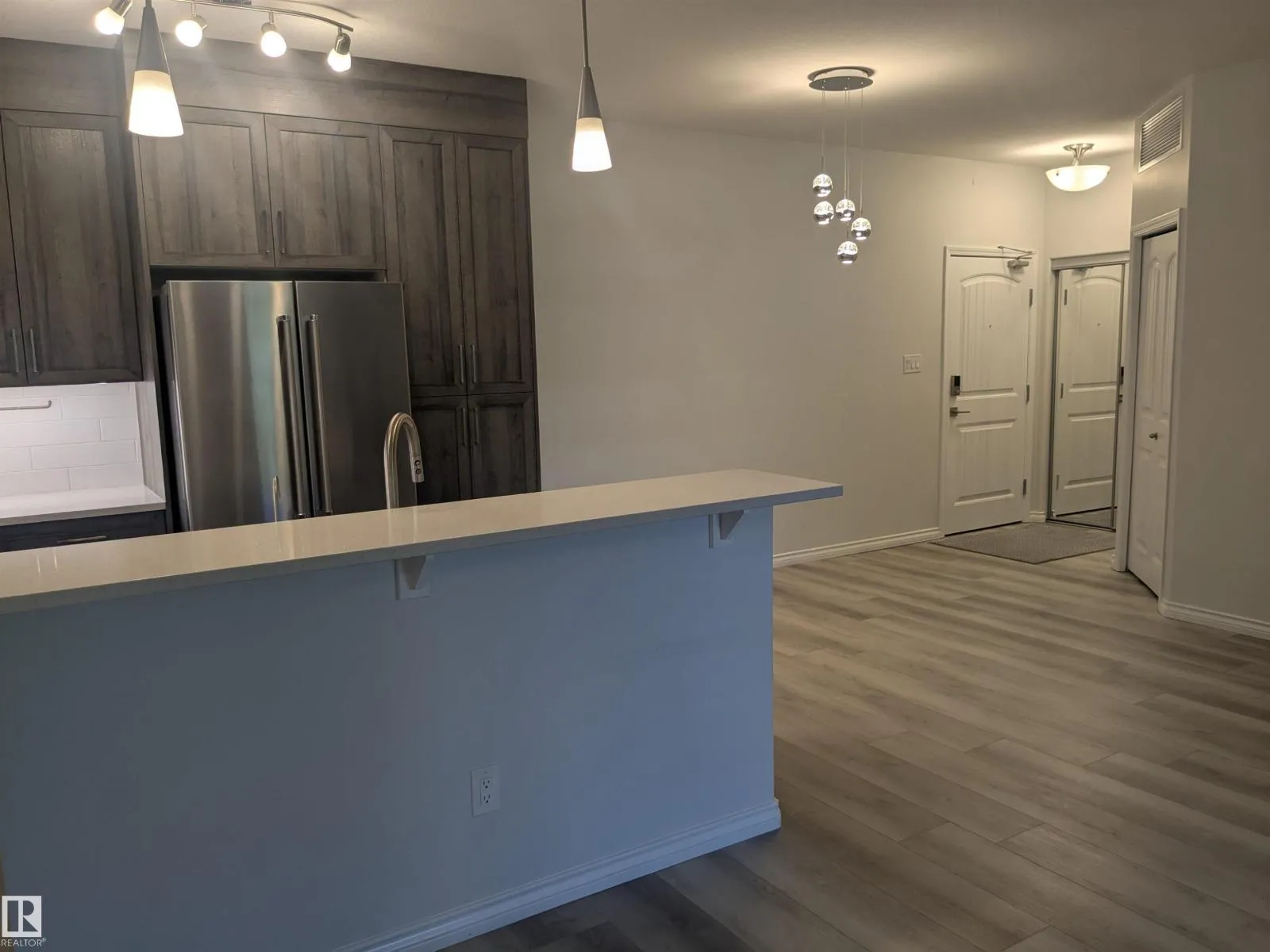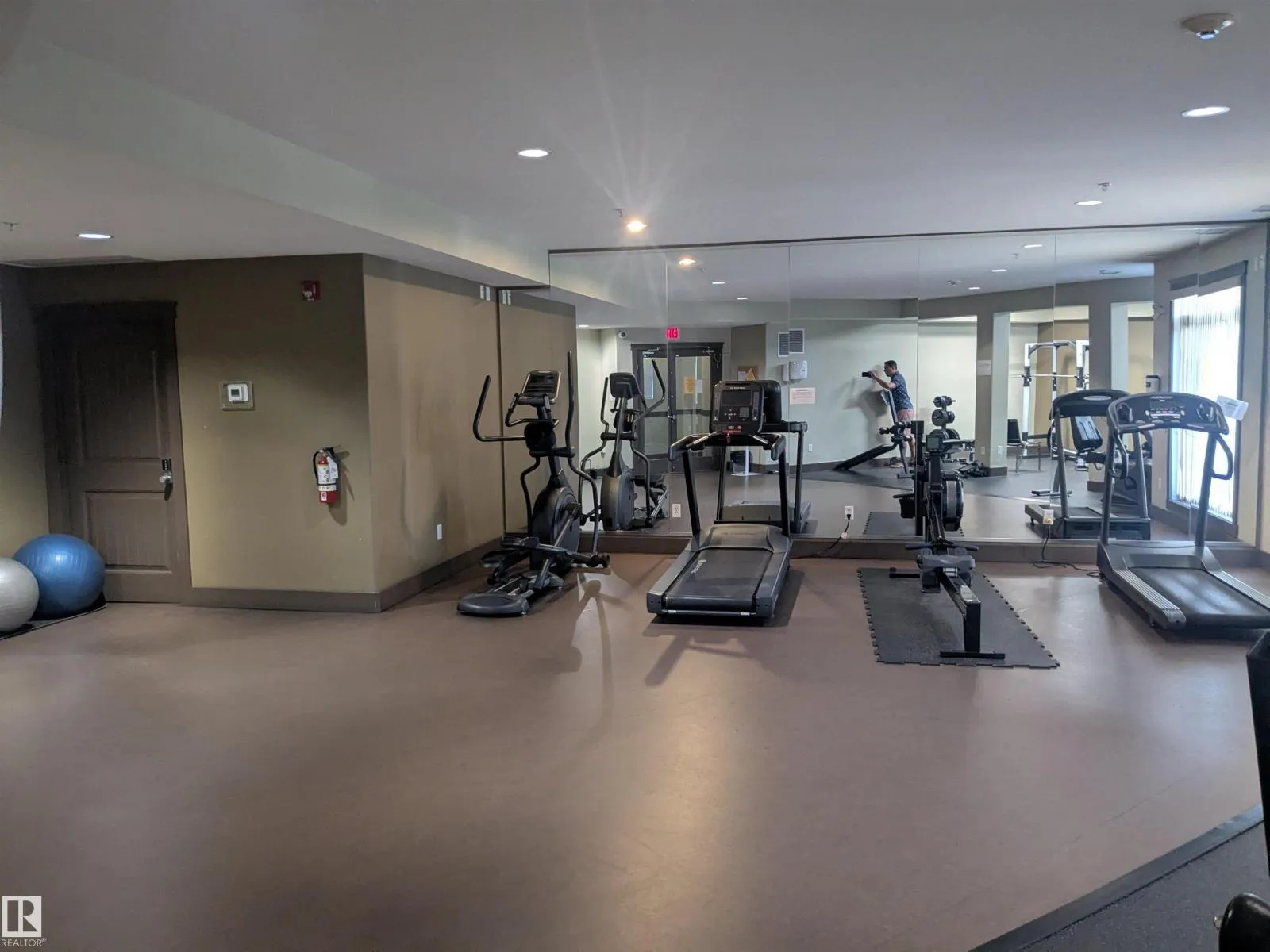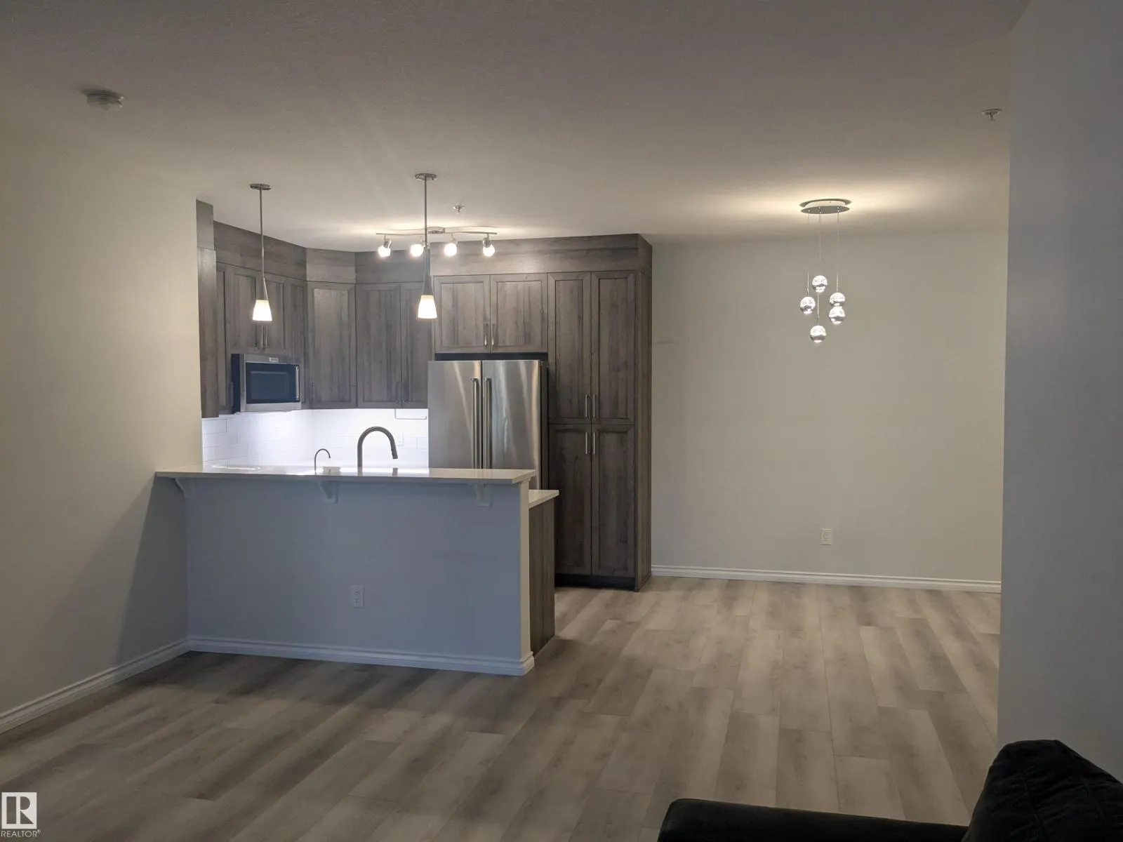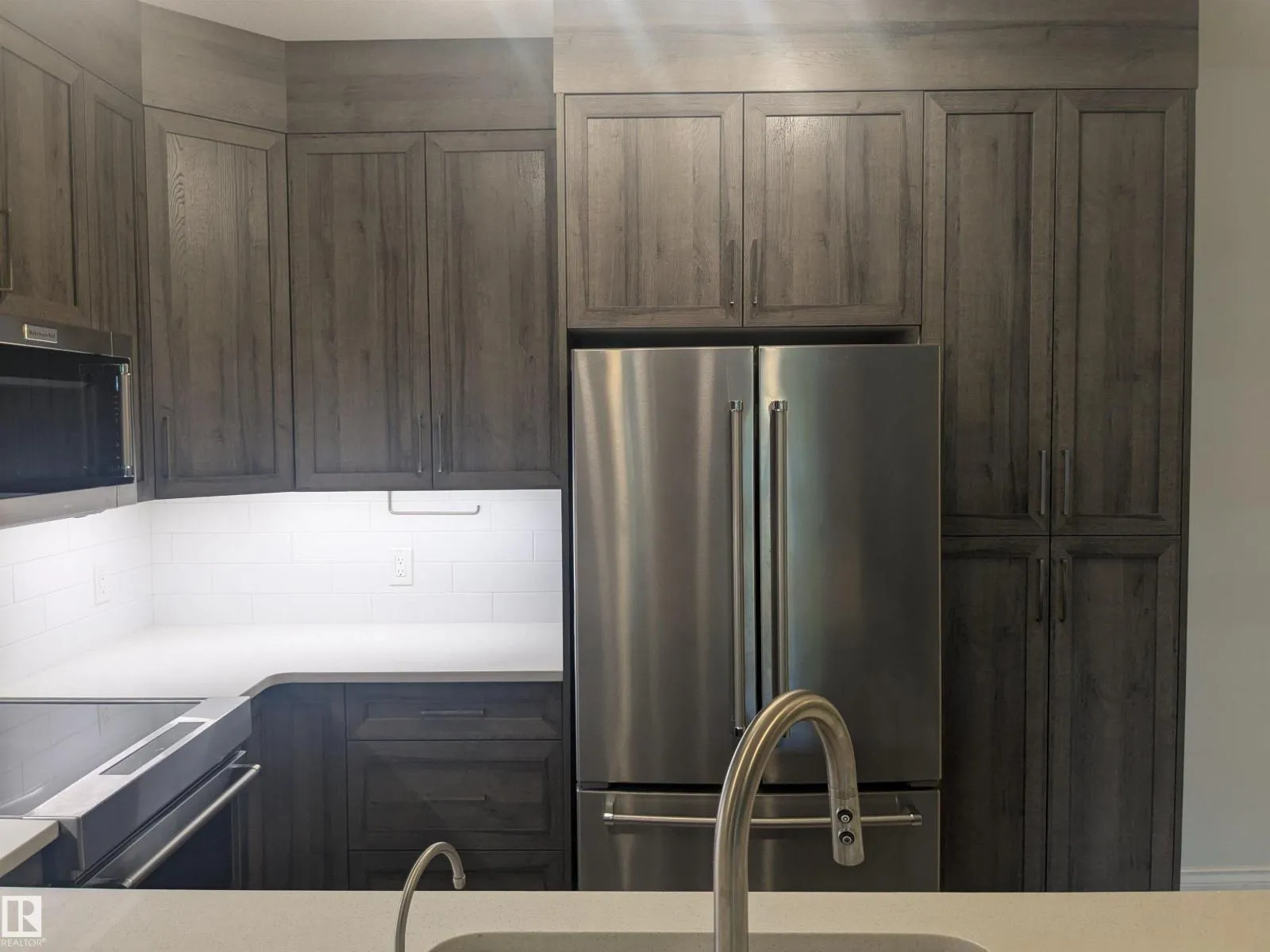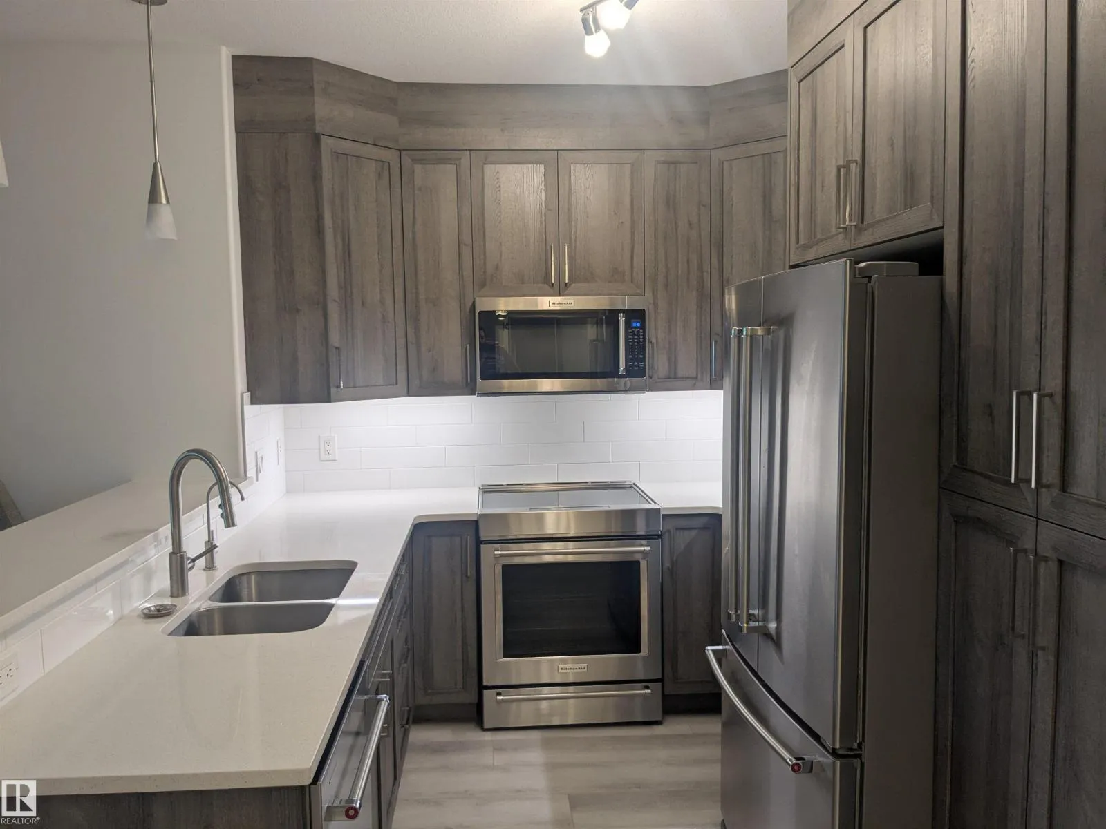 Beautiful upgraded main floor condo in the desirable Tradition at Riverside. Sleek and modern, its hard to find a 2 bedroom/2 bathroom unit like this. Luxury vinyl plank flooring, light paint colors, chic lighting. Totally upgraded kitchen featuring stainless steel KitchenAid appliances, quartz countertops, tiled backsplash, ceiling height cabinets, under cabinet lighting. Spacious living room with a corner gas fireplace and patio doors leading out to the main floor balcony. 2 spacious bedrooms; including a primary bedroom with double closets and an updated 3pc ensuite bathroom with walk in tiled shower. Bonus storage area which holds the in suite laundry. Titled underground parking stall with caged storage space. Many condo amenities including a large gym, movie room, games room, social room, 2 guest suites, car wash bay. Just off Terwillegar and Anthony Henday, great spot to go any direction from there. Ready to just move in and enjoy! (id:27476)