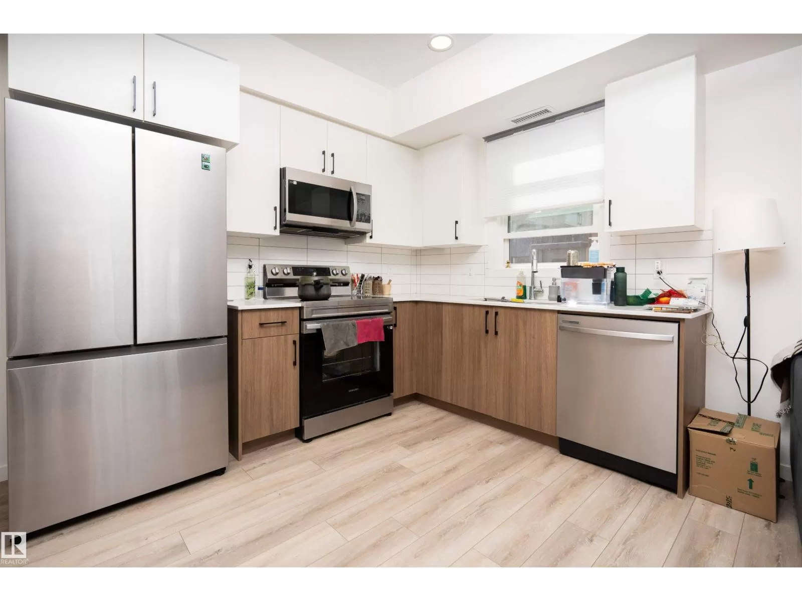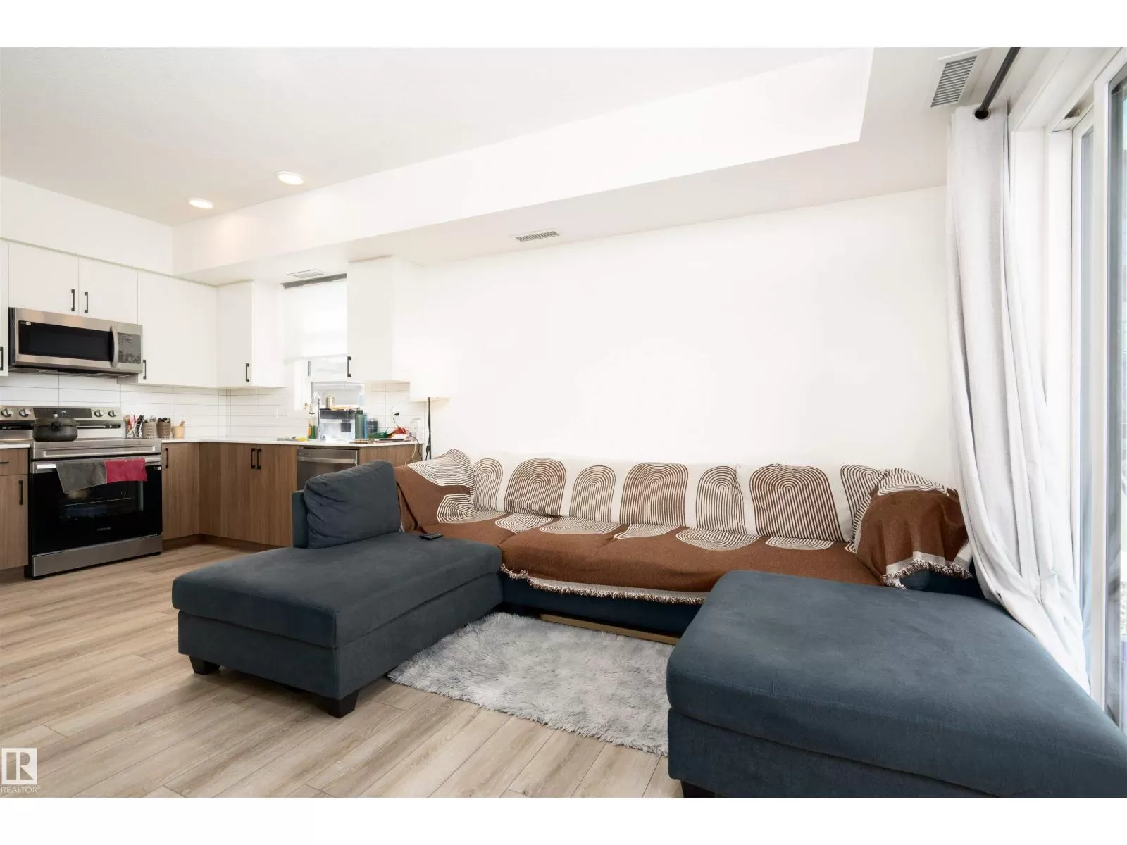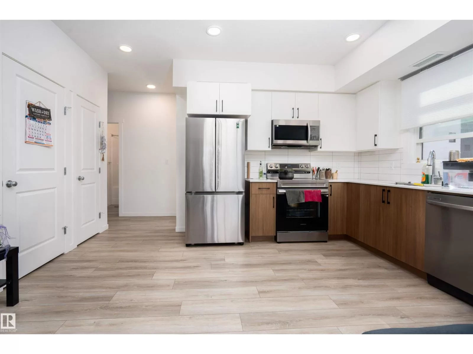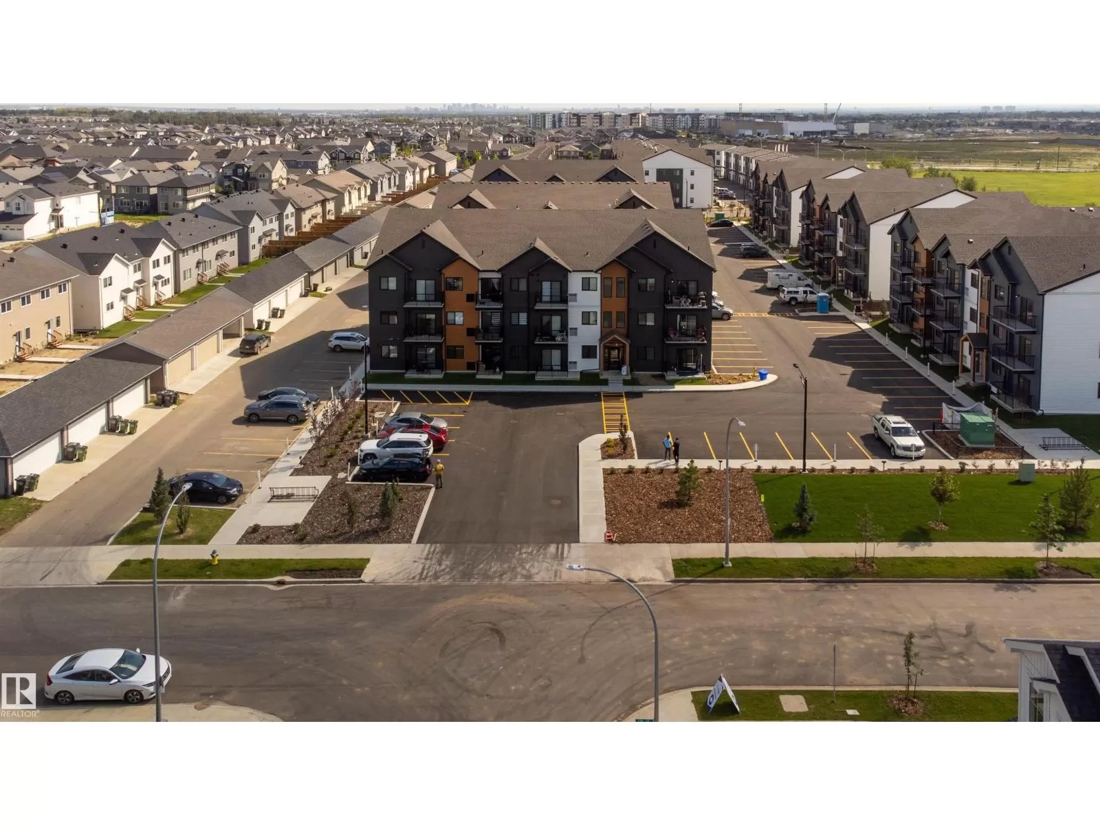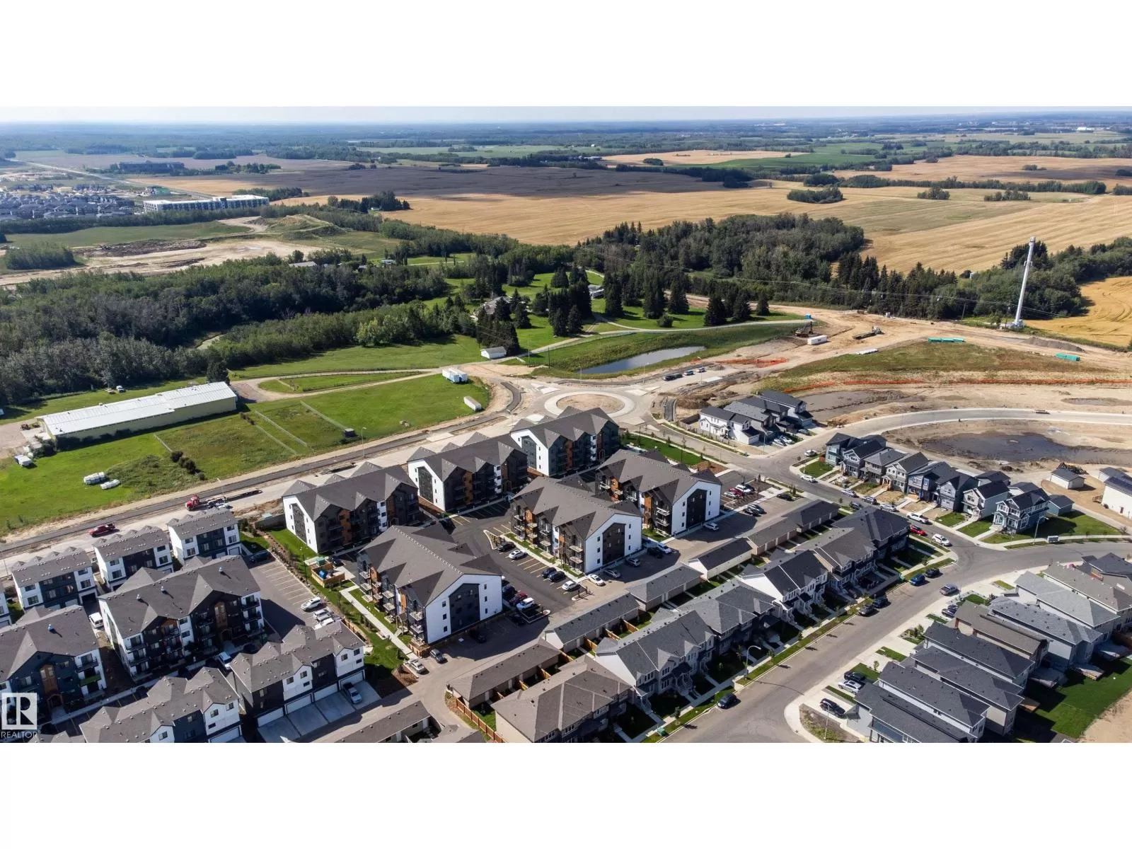 Welcome to Nordic Village in Secord, one of West Edmontonâs most vibrant and growing communities. This stylish main floor corner unit, part of StreetSide Developmentsâ popular âKoseligâ model, blends modern Nordic farmhouse design with energy-efficient construction. Featuring two spacious bedrooms, including a primary bedroom with a private ensuite, and a second full bathroom, this home offers both comfort and functionality. Enjoy upscale finishes such as quartz countertops, durable vinyl plank flooring, and large windows that fill the space with natural light. The open-concept layout flows seamlessly to a generous corner balconyâperfect for relaxing or entertaining. Additional highlights include in-suite stackable laundry, one assigned surface parking stall, and plenty of visitor parking. Located just minutes from schools, shopping, dining, and public transit, this low-maintenance, affordable home is ideal for first-time buyers, investors, or anyone looking to enjoy modern living in a convenient. (id:27476)