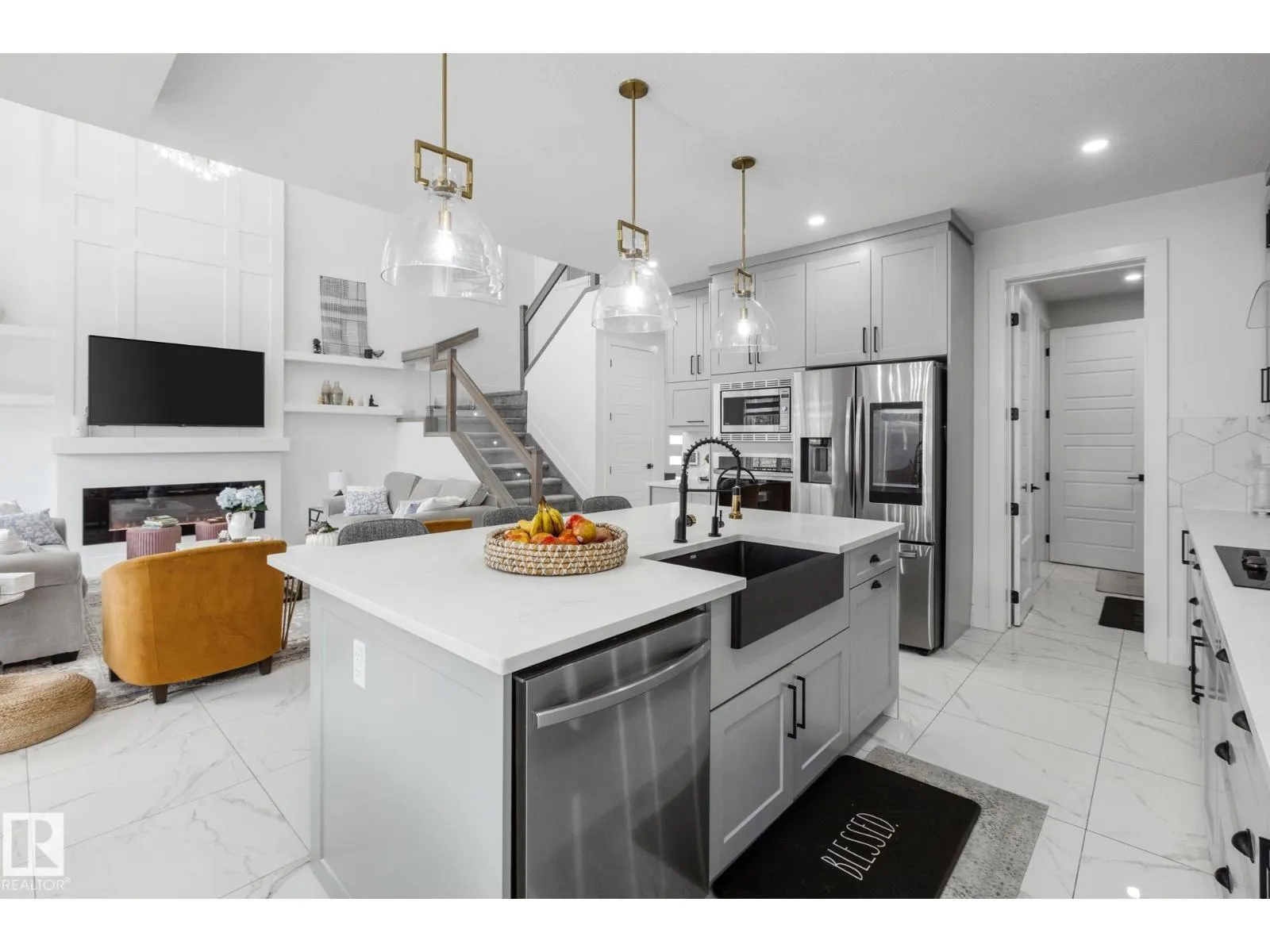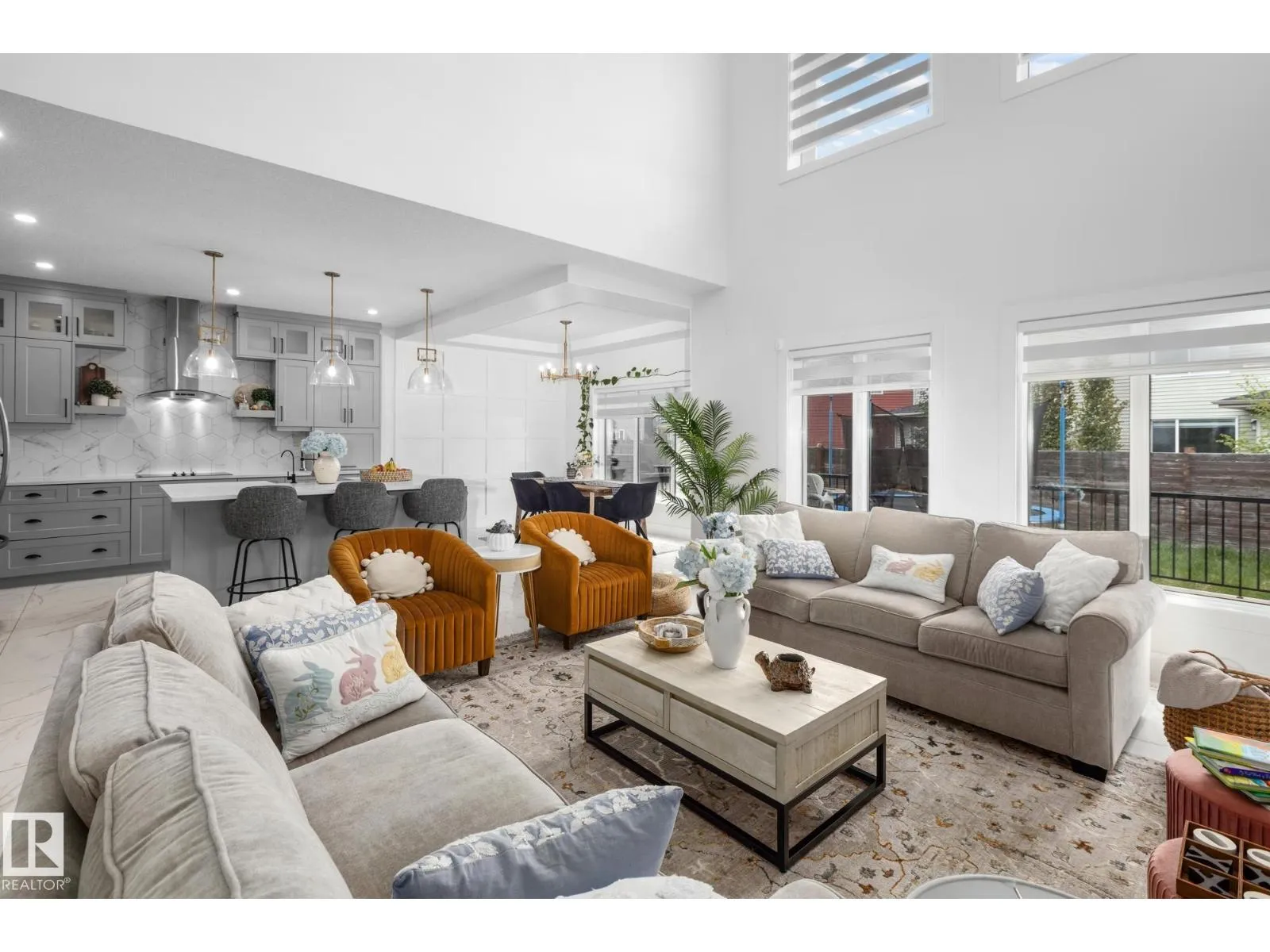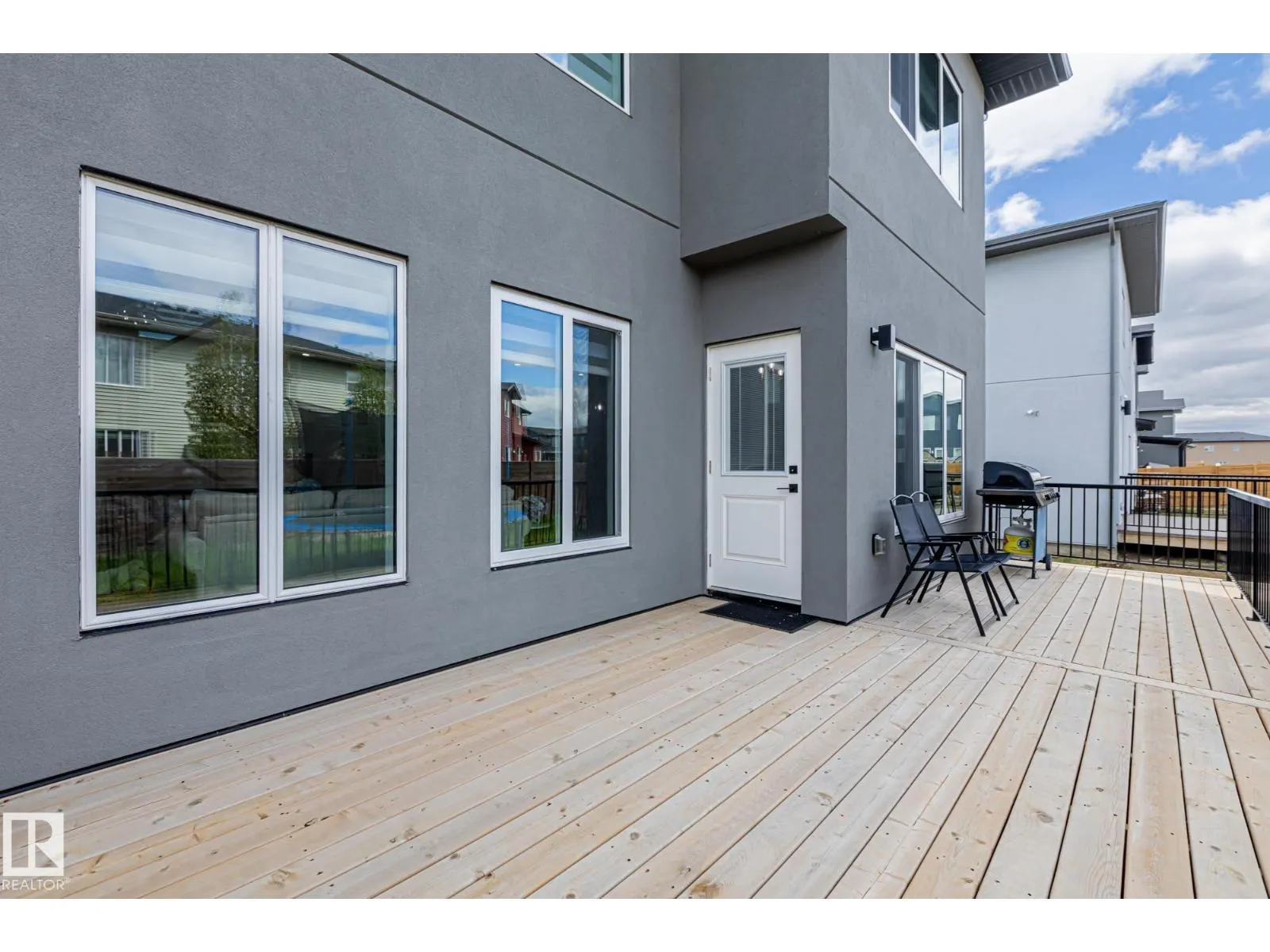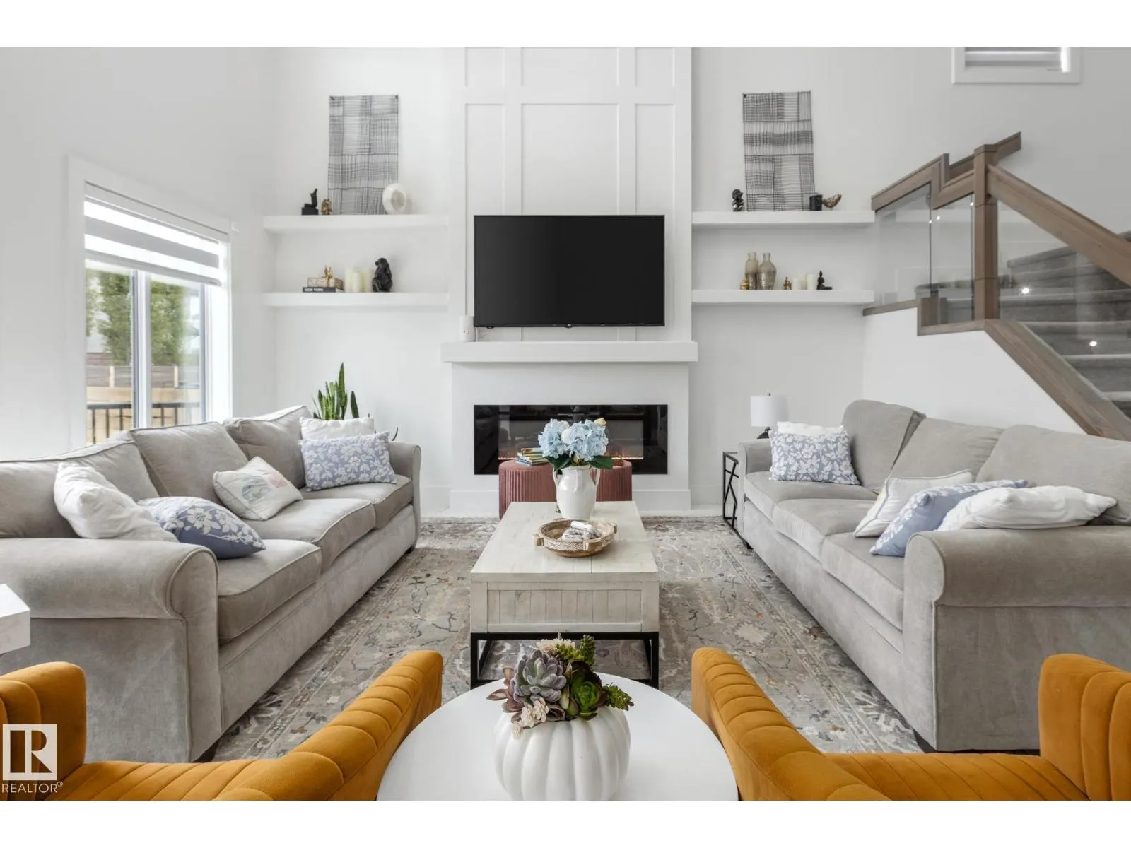 Welcome to this stunning 2021 custom-built home in the vibrant community of Keswick, perfectly situated on a wide 42-pocket lot and featuring a TRIPLE CAR GARAGE with exposed aggregate concrete. It offers 4 bedrooms and 4 full bathrooms, including a main floor bedroom with a full bath. The open-to-above living room is bright and inviting, highlighted by a sleek feature fireplace. The upgraded kitchen offers built-in appliances and a convenient spice kitchen. Enjoy 9-ft ceilings on all three levels, 8-ft doors, elegant tile flooring on the main, luxury vinyl upstairs, and carpet only on the stairs. Other highlights include glass railings, a spacious bonus room, and a well-appointed laundry area with sink and cabinetry. Built with thoughtful details and premium finishes, this home features stucco siding, a back deck, and a low-maintenance front yard. A separate side entrance leads to the unfinished basement, offering excellent future potential. Close to schools, parks, shopping, and all amenities!! (id:27476)