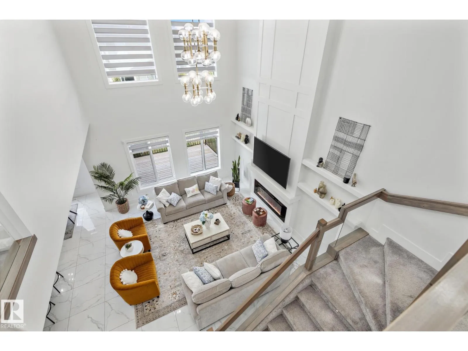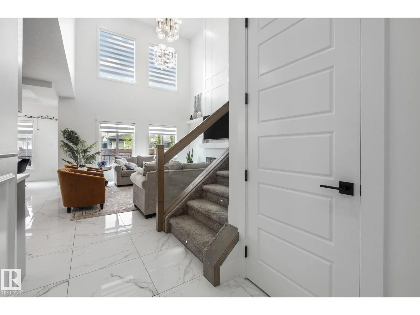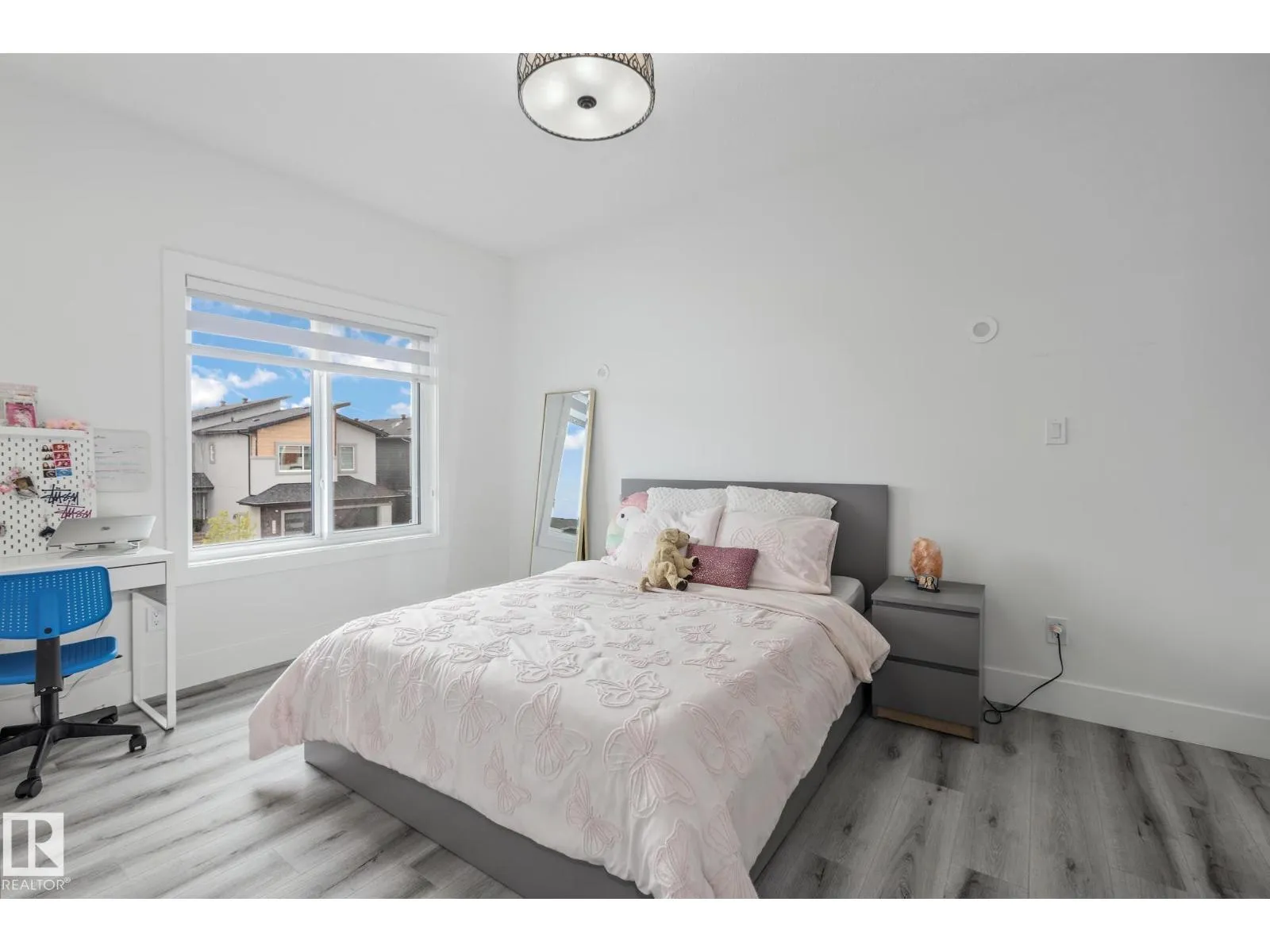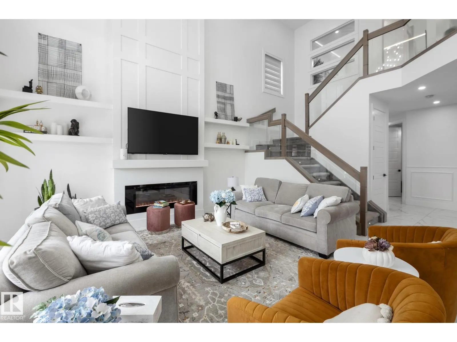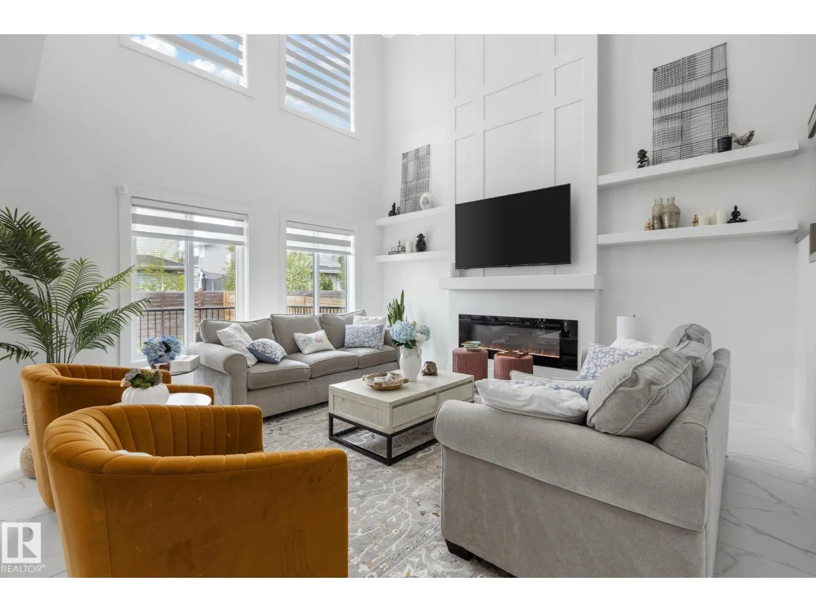 Welcome to this stunning 2021 custom-built home in the vibrant community of Keswick, perfectly situated on a wide 42-pocket lot and featuring a TRIPLE CAR GARAGE with exposed aggregate concrete. It offers 4 bedrooms and 4 full bathrooms, including a main floor bedroom with a full bath. The open-to-above living room is bright and inviting, highlighted by a sleek feature fireplace. The upgraded kitchen offers built-in appliances and a convenient spice kitchen. Enjoy 9-ft ceilings on all three levels, 8-ft doors, elegant tile flooring on the main, luxury vinyl upstairs, and carpet only on the stairs. Other highlights include glass railings, a spacious bonus room, and a well-appointed laundry area with sink and cabinetry. Built with thoughtful details and premium finishes, this home features stucco siding, a back deck, and a low-maintenance front yard. A separate side entrance leads to the unfinished basement, offering excellent future potential. Close to schools, parks, shopping, and all amenities!! (id:27476)