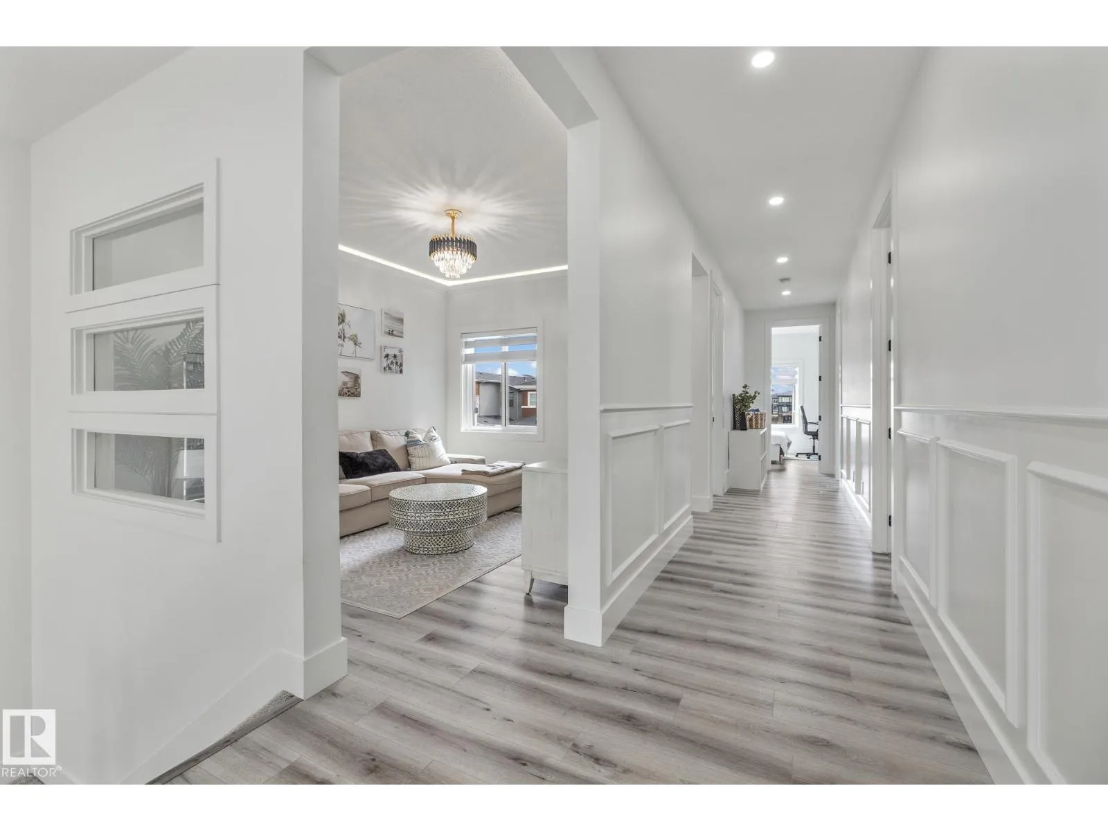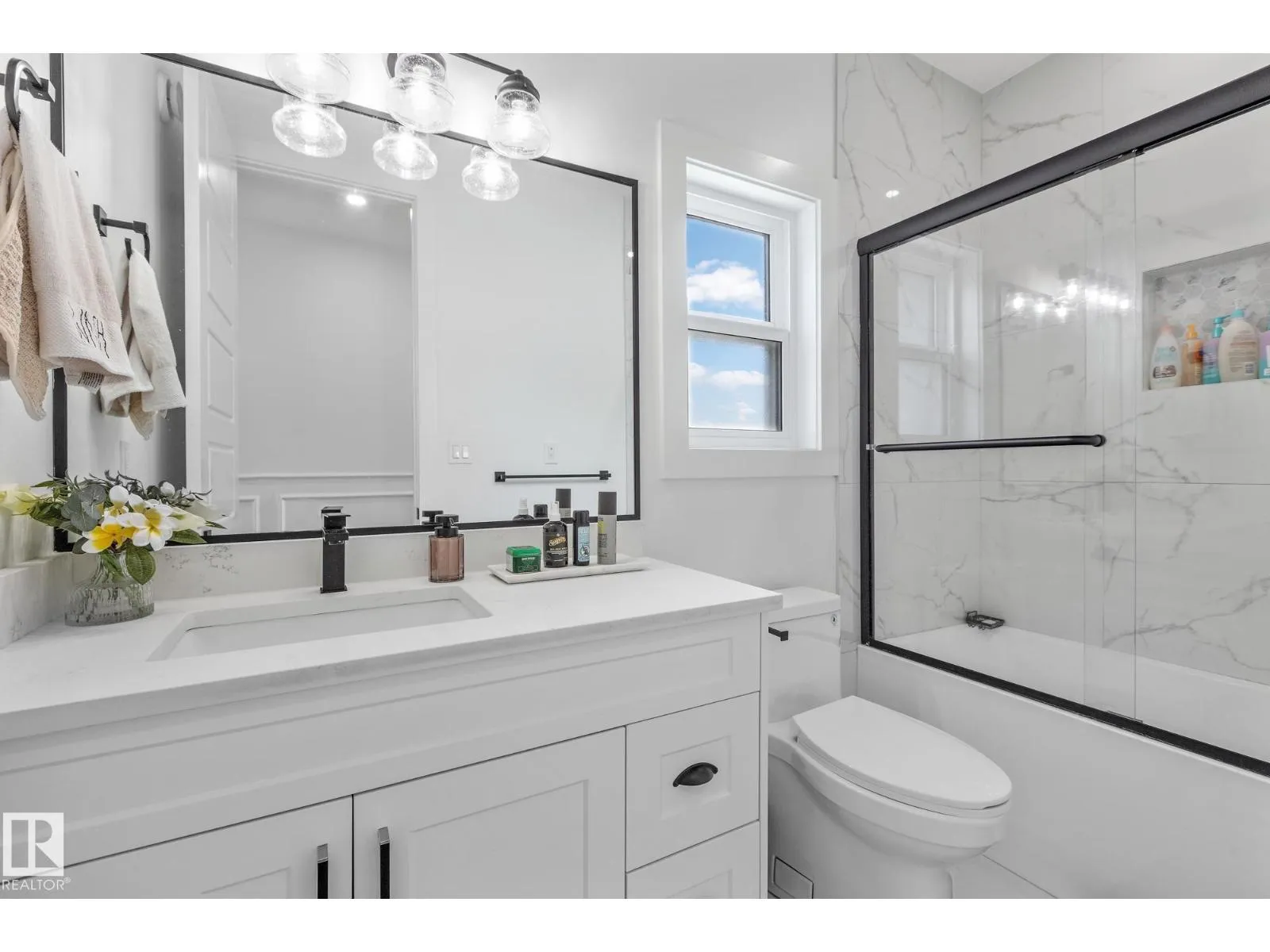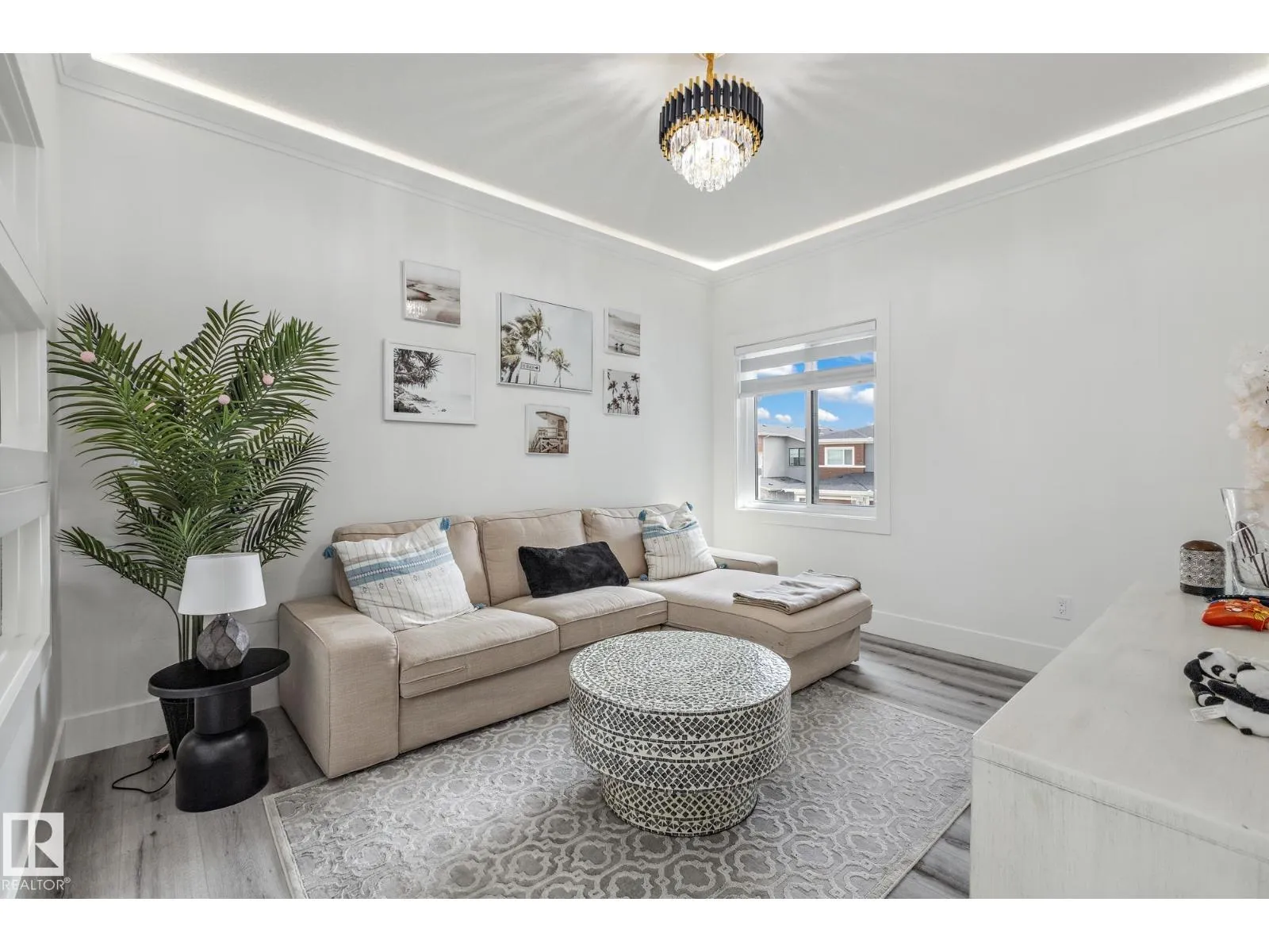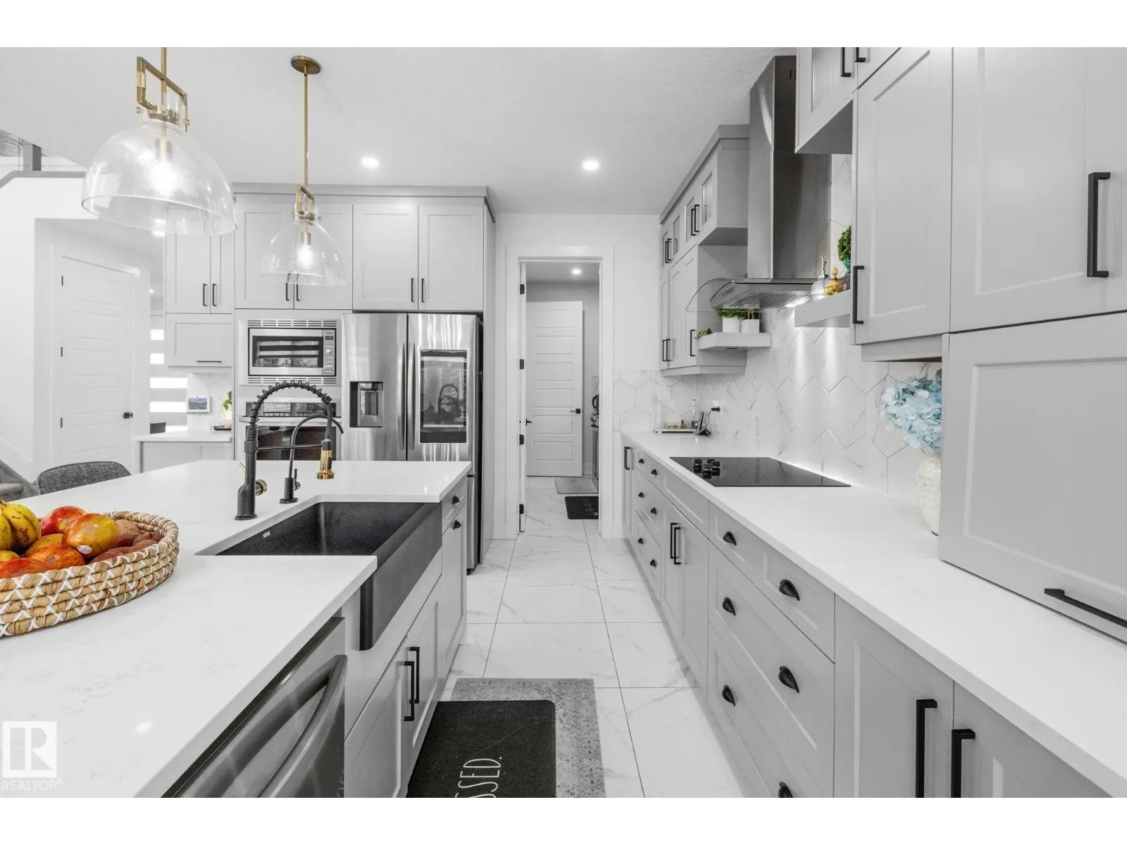 Welcome to this stunning 2021 custom-built home in the vibrant community of Keswick, perfectly situated on a wide 42-pocket lot and featuring a TRIPLE CAR GARAGE with exposed aggregate concrete. It offers 4 bedrooms and 4 full bathrooms, including a main floor bedroom with a full bath. The open-to-above living room is bright and inviting, highlighted by a sleek feature fireplace. The upgraded kitchen offers built-in appliances and a convenient spice kitchen. Enjoy 9-ft ceilings on all three levels, 8-ft doors, elegant tile flooring on the main, luxury vinyl upstairs, and carpet only on the stairs. Other highlights include glass railings, a spacious bonus room, and a well-appointed laundry area with sink and cabinetry. Built with thoughtful details and premium finishes, this home features stucco siding, a back deck, and a low-maintenance front yard. A separate side entrance leads to the unfinished basement, offering excellent future potential. Close to schools, parks, shopping, and all amenities!! (id:27476)