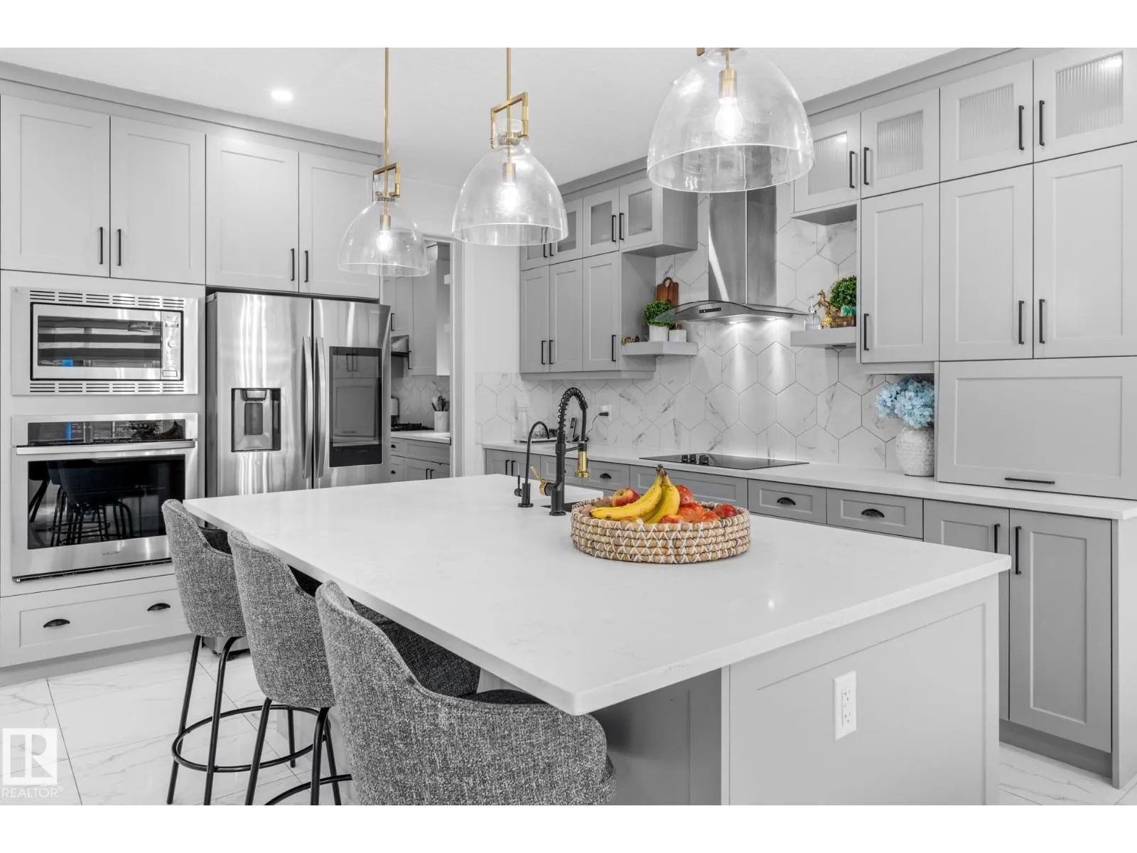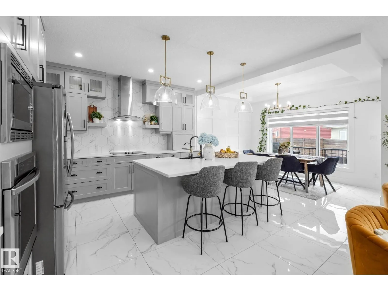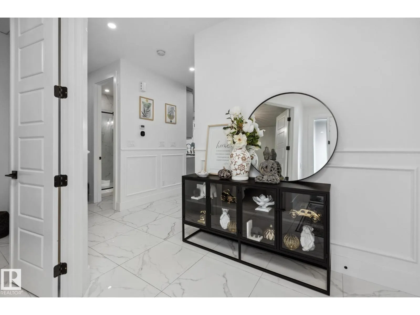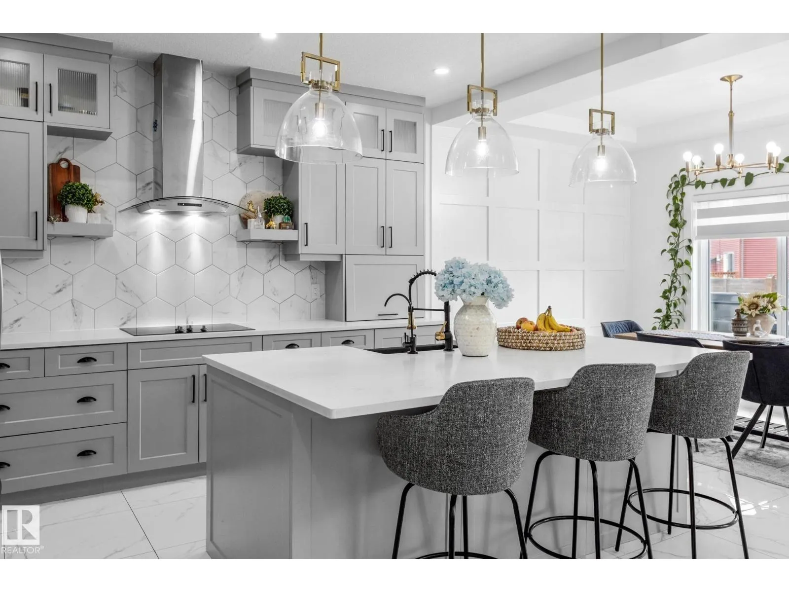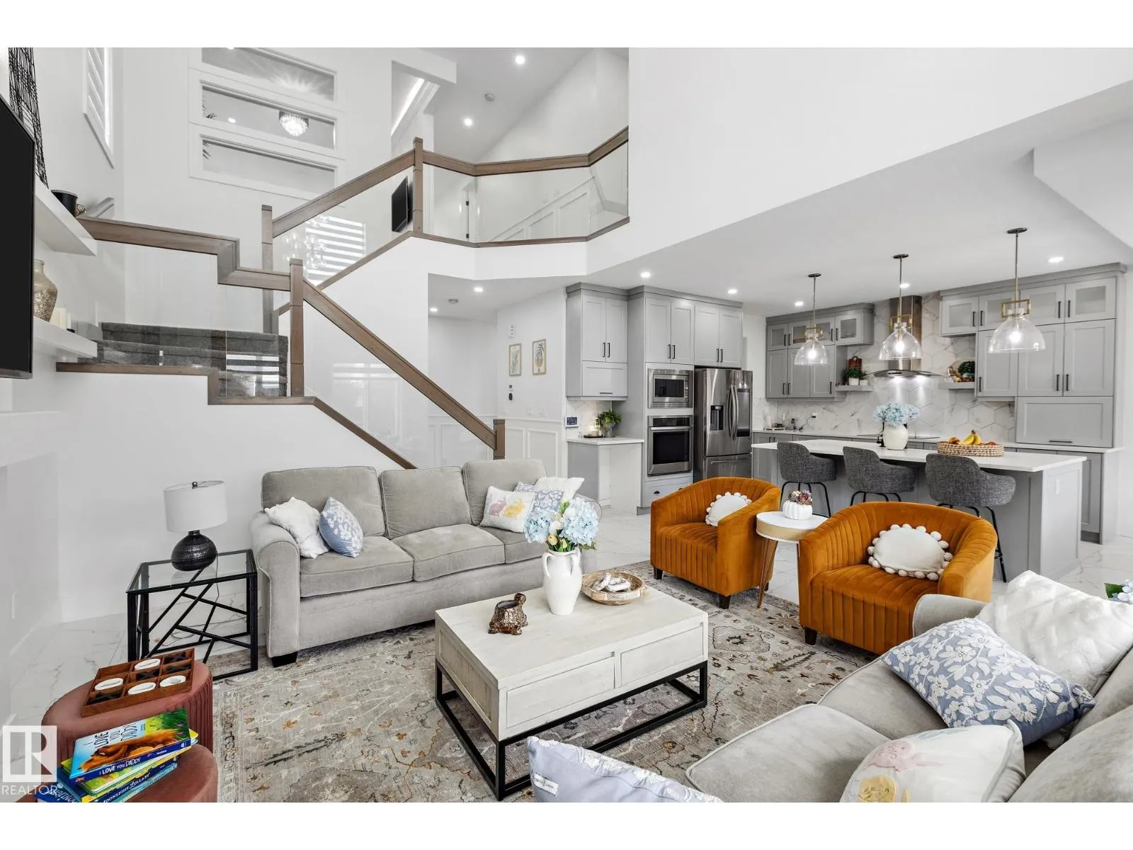 Welcome to this stunning 2021 custom-built home in the vibrant community of Keswick, perfectly situated on a wide 42-pocket lot and featuring a TRIPLE CAR GARAGE with exposed aggregate concrete. It offers 4 bedrooms and 4 full bathrooms, including a main floor bedroom with a full bath. The open-to-above living room is bright and inviting, highlighted by a sleek feature fireplace. The upgraded kitchen offers built-in appliances and a convenient spice kitchen. Enjoy 9-ft ceilings on all three levels, 8-ft doors, elegant tile flooring on the main, luxury vinyl upstairs, and carpet only on the stairs. Other highlights include glass railings, a spacious bonus room, and a well-appointed laundry area with sink and cabinetry. Built with thoughtful details and premium finishes, this home features stucco siding, a back deck, and a low-maintenance front yard. A separate side entrance leads to the unfinished basement, offering excellent future potential. Close to schools, parks, shopping, and all amenities!! (id:27476)