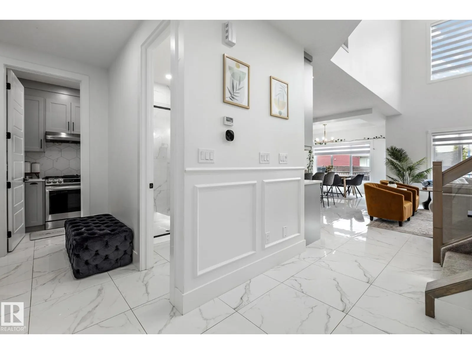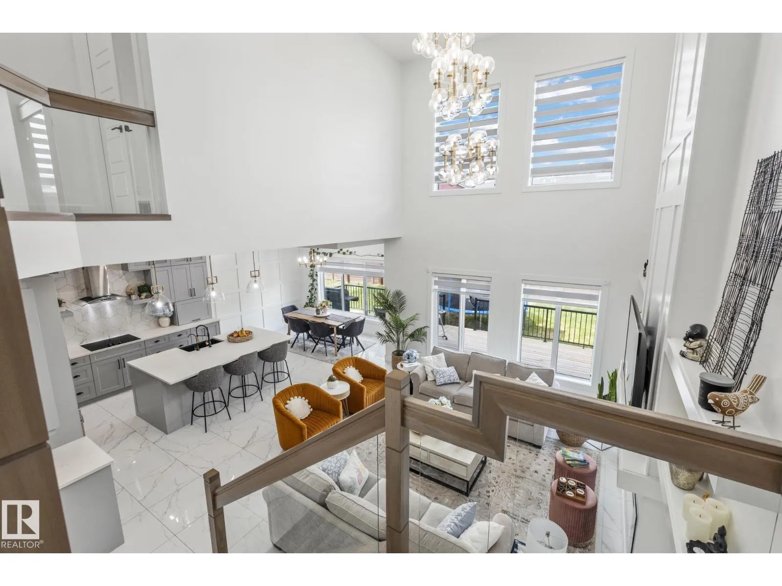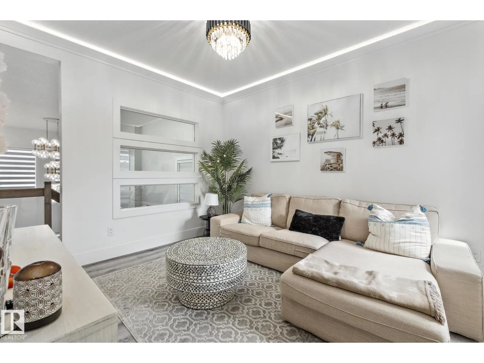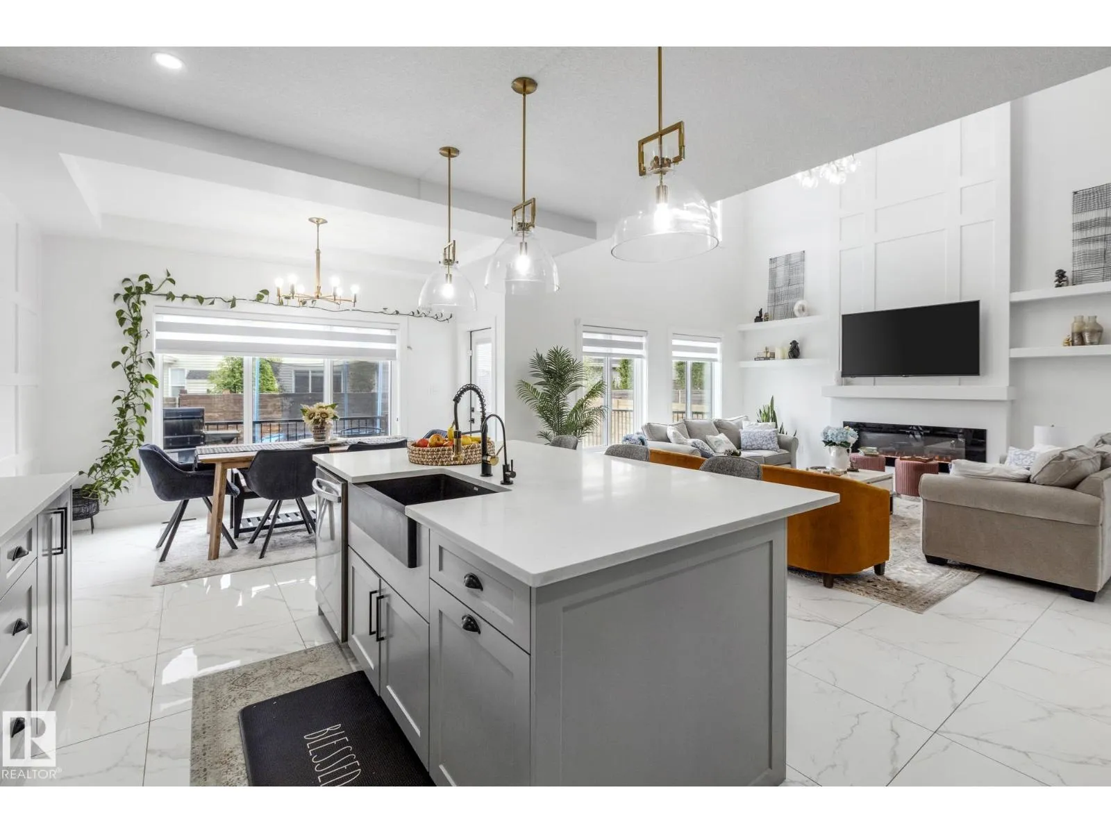 Welcome to this stunning 2021 custom-built home in the vibrant community of Keswick, perfectly situated on a wide 42-pocket lot and featuring a TRIPLE CAR GARAGE with exposed aggregate concrete. It offers 4 bedrooms and 4 full bathrooms, including a main floor bedroom with a full bath. The open-to-above living room is bright and inviting, highlighted by a sleek feature fireplace. The upgraded kitchen offers built-in appliances and a convenient spice kitchen. Enjoy 9-ft ceilings on all three levels, 8-ft doors, elegant tile flooring on the main, luxury vinyl upstairs, and carpet only on the stairs. Other highlights include glass railings, a spacious bonus room, and a well-appointed laundry area with sink and cabinetry. Built with thoughtful details and premium finishes, this home features stucco siding, a back deck, and a low-maintenance front yard. A separate side entrance leads to the unfinished basement, offering excellent future potential. Close to schools, parks, shopping, and all amenities!! (id:27476)