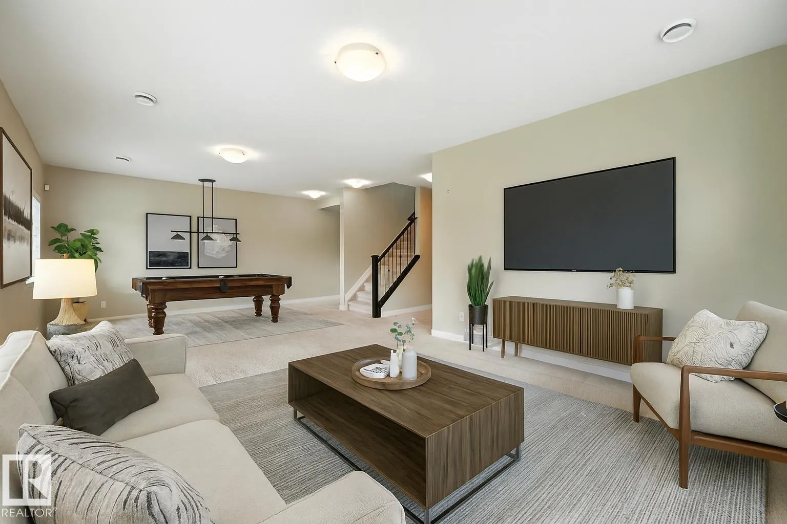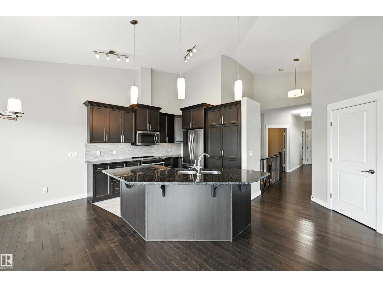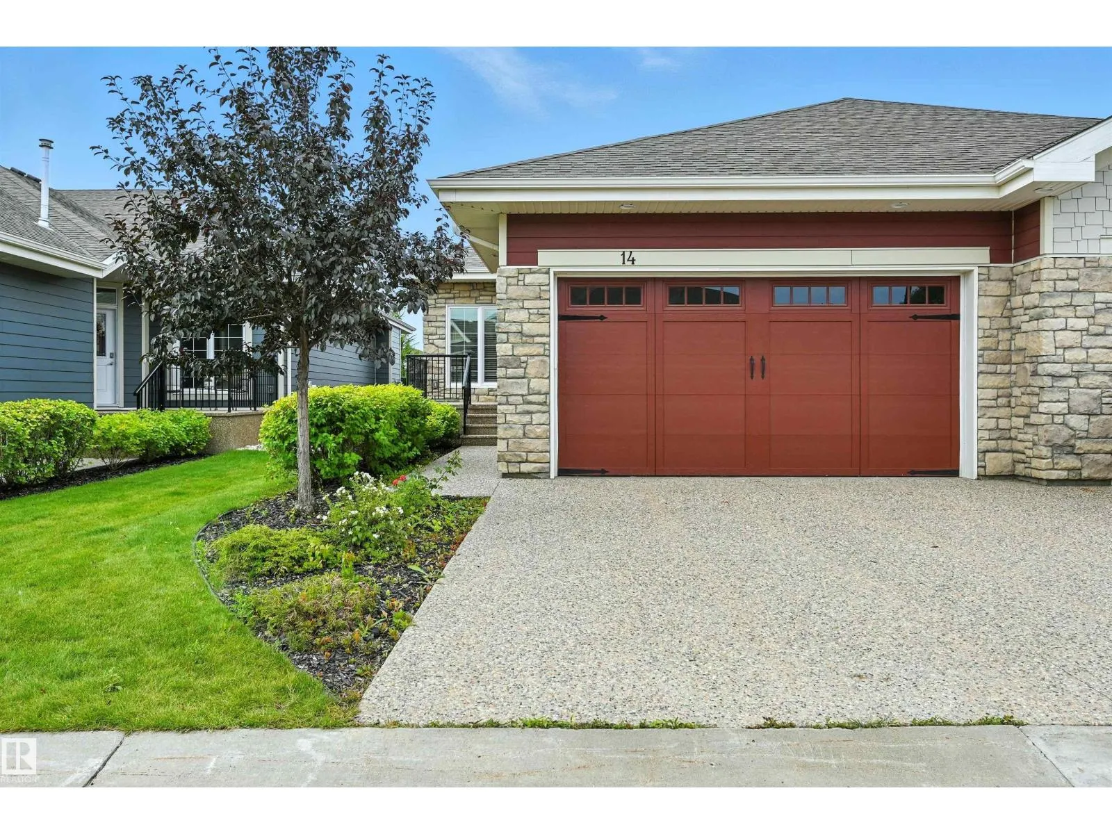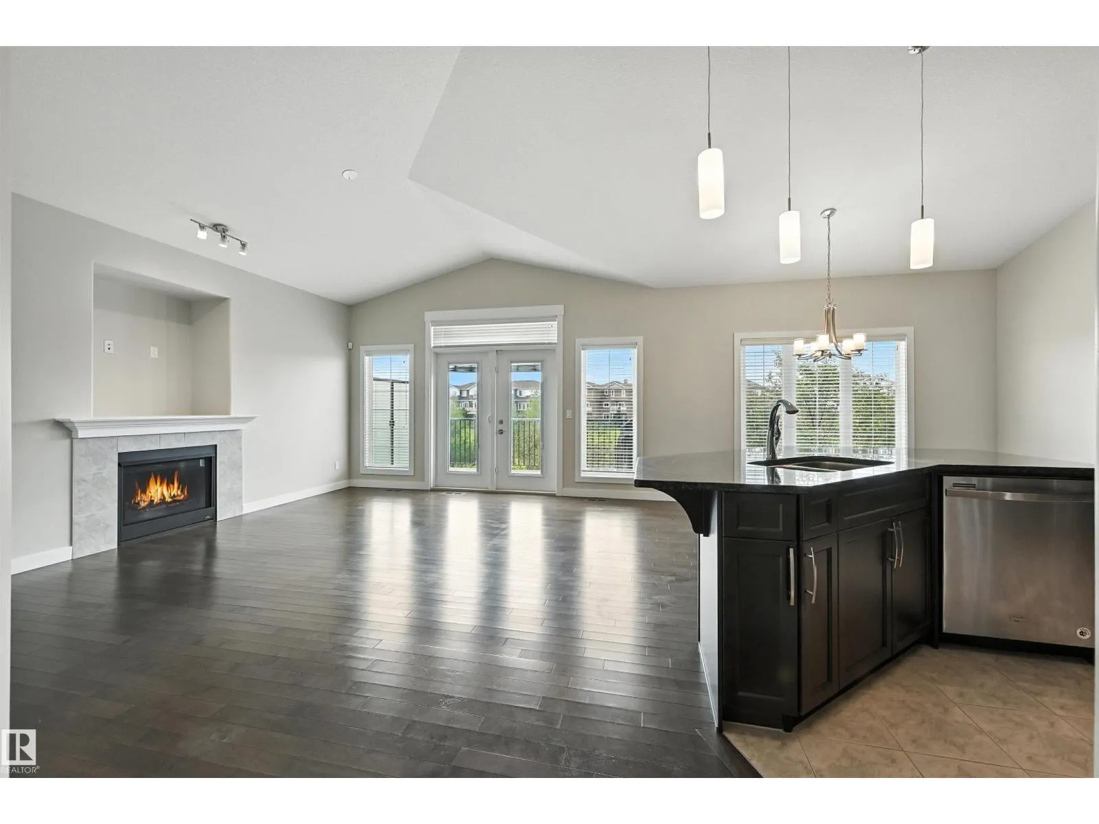 Pristine BUNGALOW with F/F WALKOUT BASEMENT BACKING A POND! Quiet luxury living at Rivers Edge Villas, a 55+ adult only community. Amazing location in Cameron Heights, surrounded by the lush river valley & steps to trails. Main flr boasts a thoughtfully designed open concept layout, vaulted ceiling, H/W floors, generously sized living rm w/ tons of natural light & gas f/p, laundry rm, den or 2nd bedrm, full bath & access to a massive SW facing deck overlooking the pond & walking path. Kitchen features a sleek dark color palette, granite counters, shaker cabinets w/ tons of storage & island w/ eating bar. Dine w/ a view of the peaceful greenspace from the breakfast nook. Roomy primary suite sanctuary offers 5pc ensuite w/ soaker tub & walk-in glass shower, walk-in closet & 9 ft ceilings. Entertainers will love the huge walkout basement - 9 ft ceilings & plenty of space for a family rm & rec/games rm. Perfect place to unwind and enjoy! 3rd bedrm, full bath & large storage rm complete this level. A must see! (id:27476)