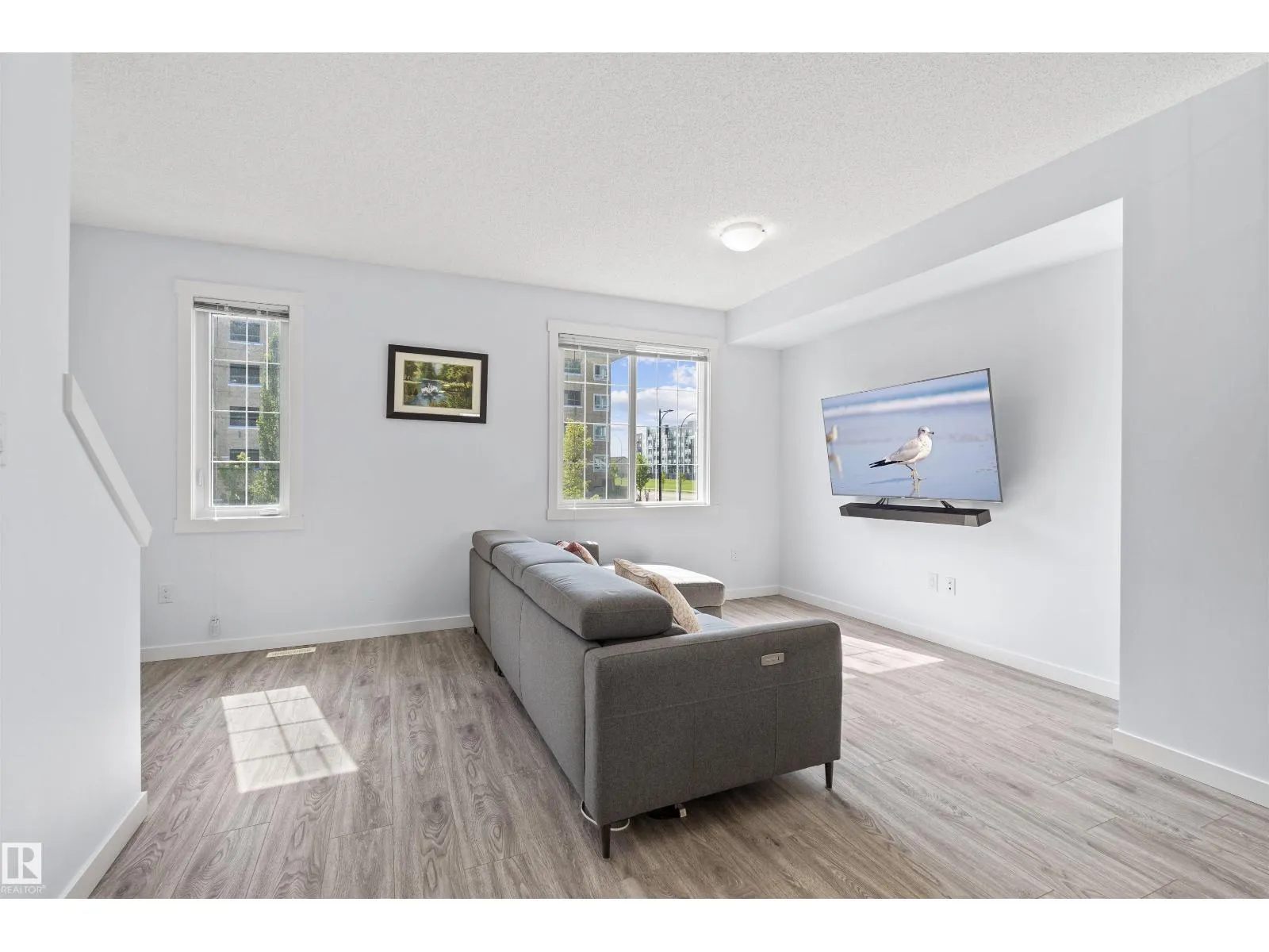 Welcome to this 3-storey townhouse in Allard that offers all the features of a single-family home for under $400K! With 3 bedrooms, 2.5 bathrooms, a versatile den, upgraded water softener, and a double attached garage that lets you enter directly into the homeâno cold winter walks from the garage, this property is both practical and inviting. The second level features an open-concept layout with 9' ceilings, wide plank laminate flooring, and south-facing windows that fill the home with natural light. The modern U-shaped kitchen boasts quartz countertops, stainless steel appliances, and ample cabinetry, opening to a spacious dining area, cozy living room, half bath, and a large balcony with BBQ hook-up. Upstairs, youâll find three bedrooms including a primary suite with ensuite, a 4-piece main bath, and in-suite laundry. Walking distance to Dr. Lila Fahlman and Dr. Anne Anderson schools, this home combines comfort, location, and unbeatable value. (id:27476)