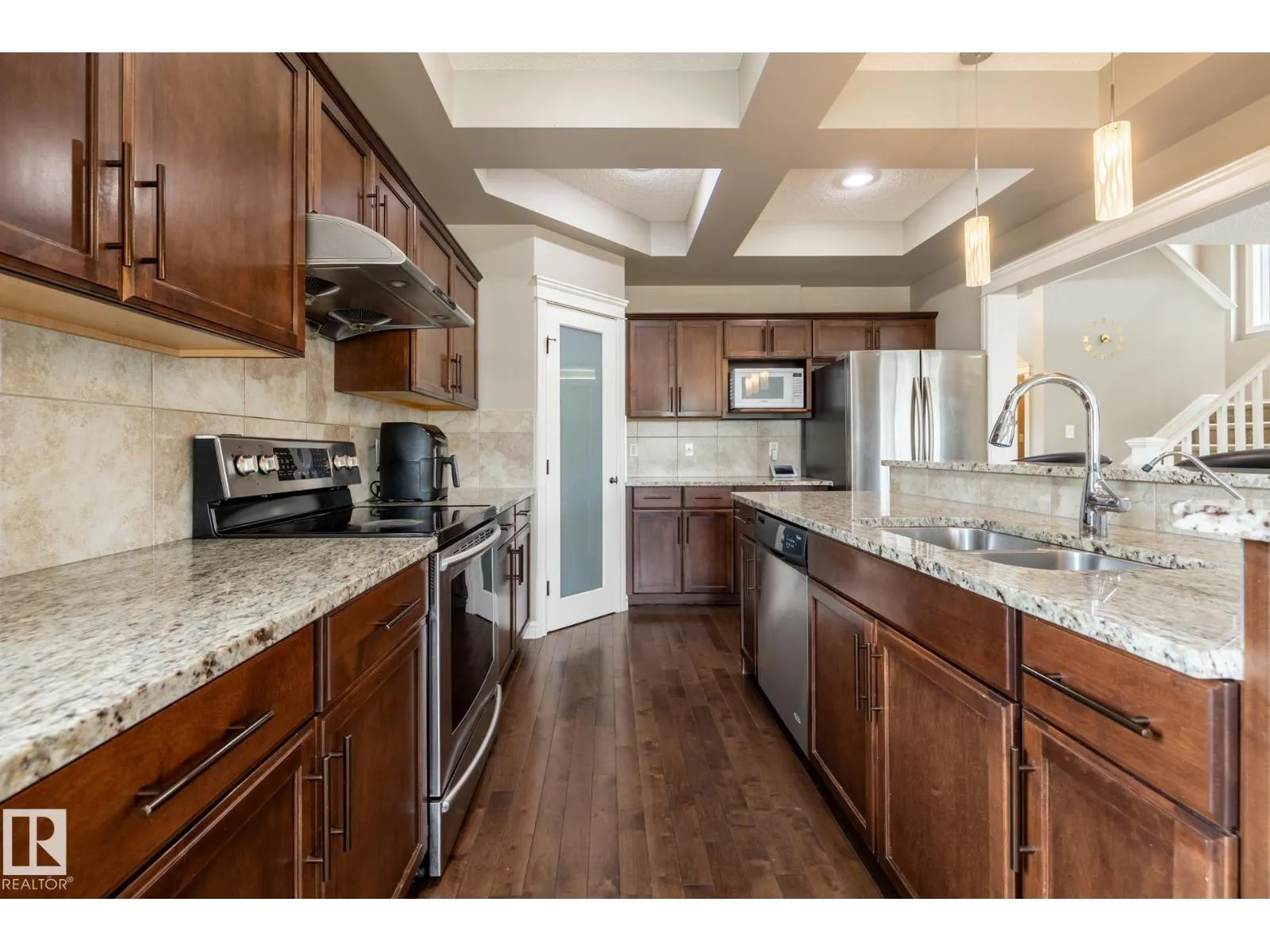 Welcome to this fantastic opportunity to own a spacious, move-in-ready home thatâs ideal for families or professionals seeking both space & functionality. The bright & open main floor features a spacious living room with large windows & a cozy fireplace, seamlessly connected to the kitchen & dining area. The kitchen boasts stainless steel appliances, granite counters, a large island & a walk-in pantry, making it perfect for meal prep & entertaining. The main-floor den is perfect to work-from-home or flex space. Upstairs you'll find a huge bonus room, ideal for families to lounge or a media area. The primary suite is a peaceful retreat, complete with a walk-in closet & a 5-piece ensuite featuring a soaker tub & separate shower. Two additional bedrooms, a full bathroom. The finished basement adds even more living space, with a rec room, full bath & 2 additional bedrooms. Enjoy parking in an oversized double garage & summer days in your private backyard, in one of North Edmontonâs most desirable communities! (id:27476)