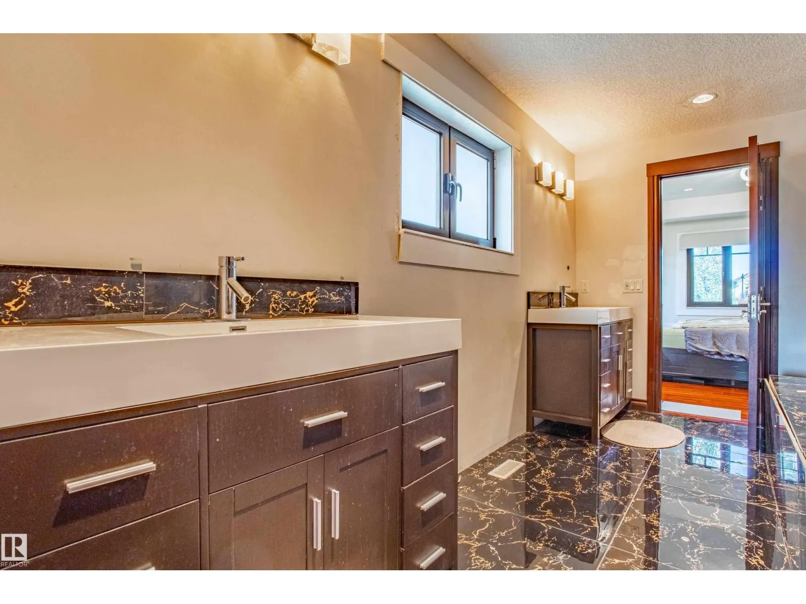 Welcome to this stunning 5,600 sq ft luxury home located on a premium corner lot in prestigious Windermere, Edmonton. Thoughtfully designed and masterfully built, this executive residence offers exceptional space and comfort across three levels, featuring 9 ft ceilings on the main and basement levels, and 8 ft ceilings upstairs. The main floor is complete with a bedroom and full bath â perfect for guests or multigenerational living. A gourmet kitchen is paired with a fully equipped spice kitchen, ideal for entertaining and everyday convenience. Upstairs, you'll find 5 generously sized bedrooms and 3 additional full baths, offering ample space for large families. The basement includes a media room tucked beneath the triple car garage waiting for your personal touch. Radiant heating in the basement needs boiler connections. With a total of 6 bedrooms, 4 full bathrooms, and a 2-piece powder room, this home offers both functionality and upscale living. Additionally, it is situated close to all amenities. (id:27476)
