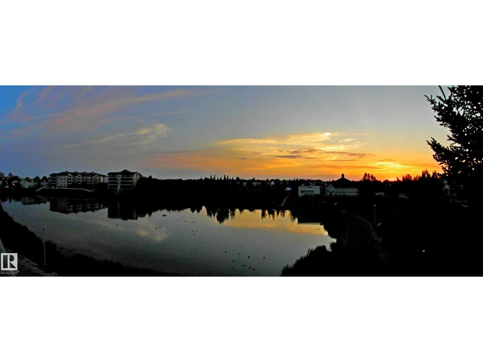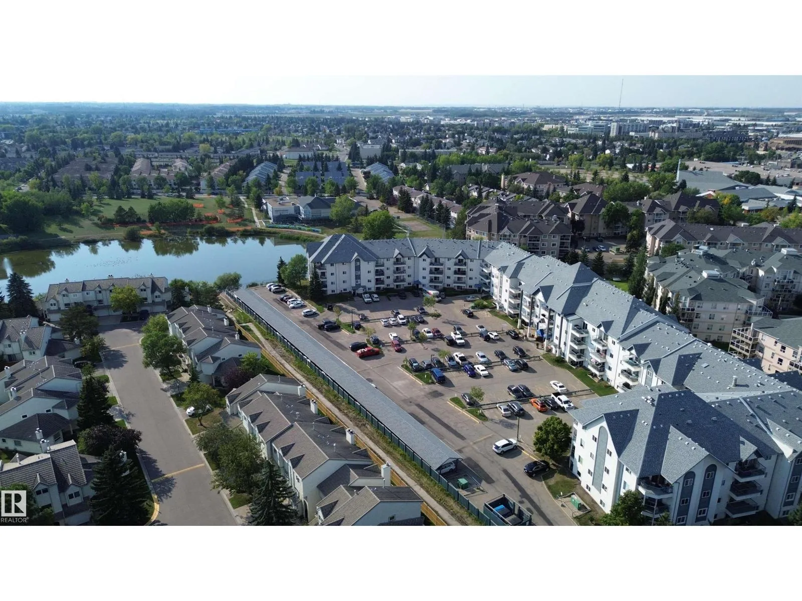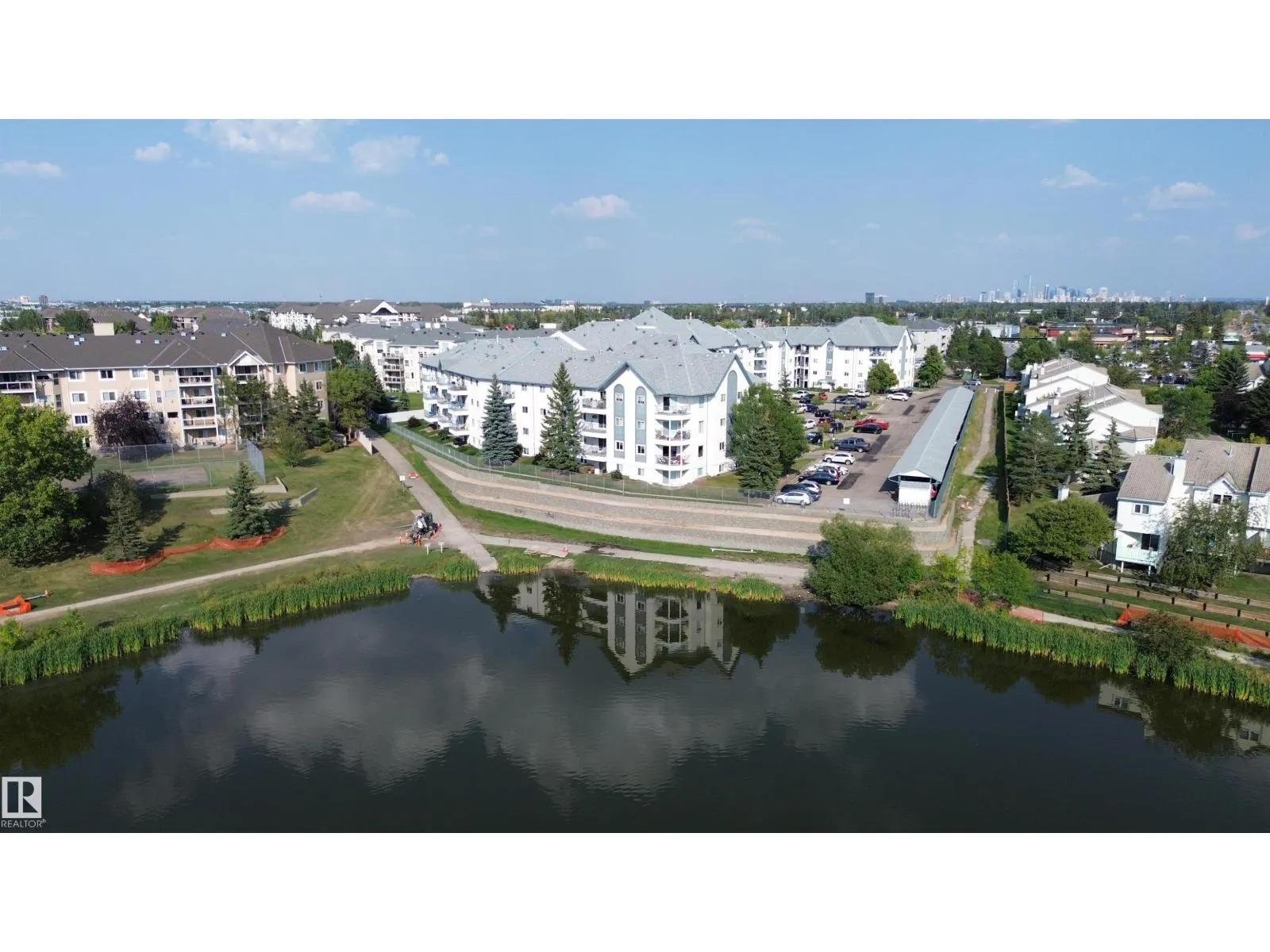 Stunning Lakefront Views! It's rare to find a home in the heart of vibrant West Edmonton that offers this kind of natural beauty. This 3rd floor condo backs directly onto a serene lake, offering peace, privacy, and breathtaking sunsets from every room. Beautifully updated with brand-new luxury vinyl flooring and fresh paint throughout, this bright and airy suite features a smart, functional layout: two spacious bedrooms with custom closet organizers, a walk-through kitchen, in-suite laundry and storage, plus air conditioning and a brand new toilet for year-round comfort. Whether you're relaxing in the living room, unwinding in the bedroom, or stepping out onto your west-facing covered balcony, you'll enjoy beautiful lake views, all just minutes from West Edmonton Mall and countless shopping and dining options. The unit also comes with a covered parking stall and convenient elevator access. Available for immediate possession - perfect for both nature lovers and city lifestyle seekers. (id:27476)