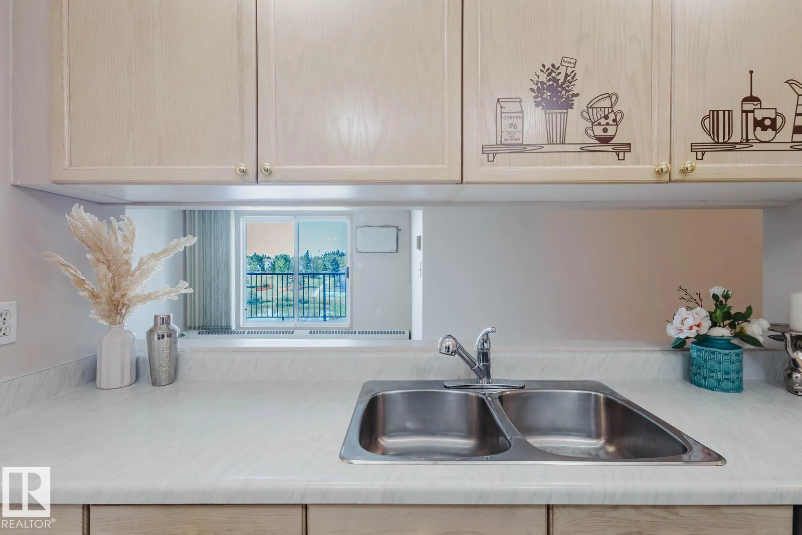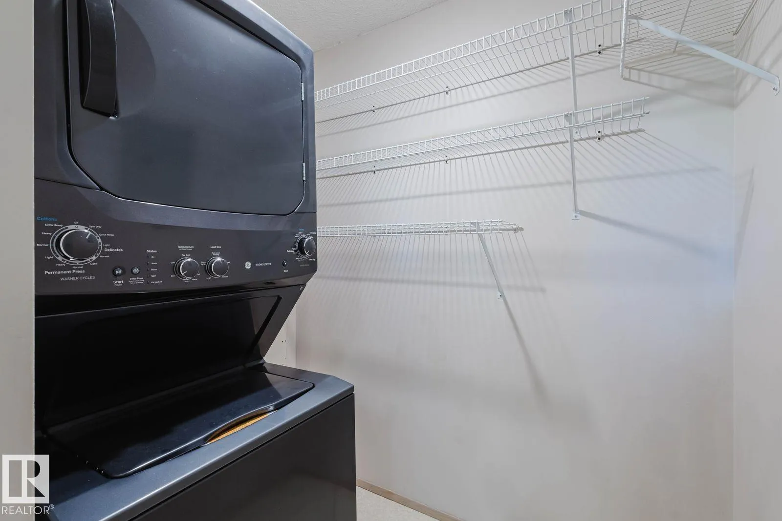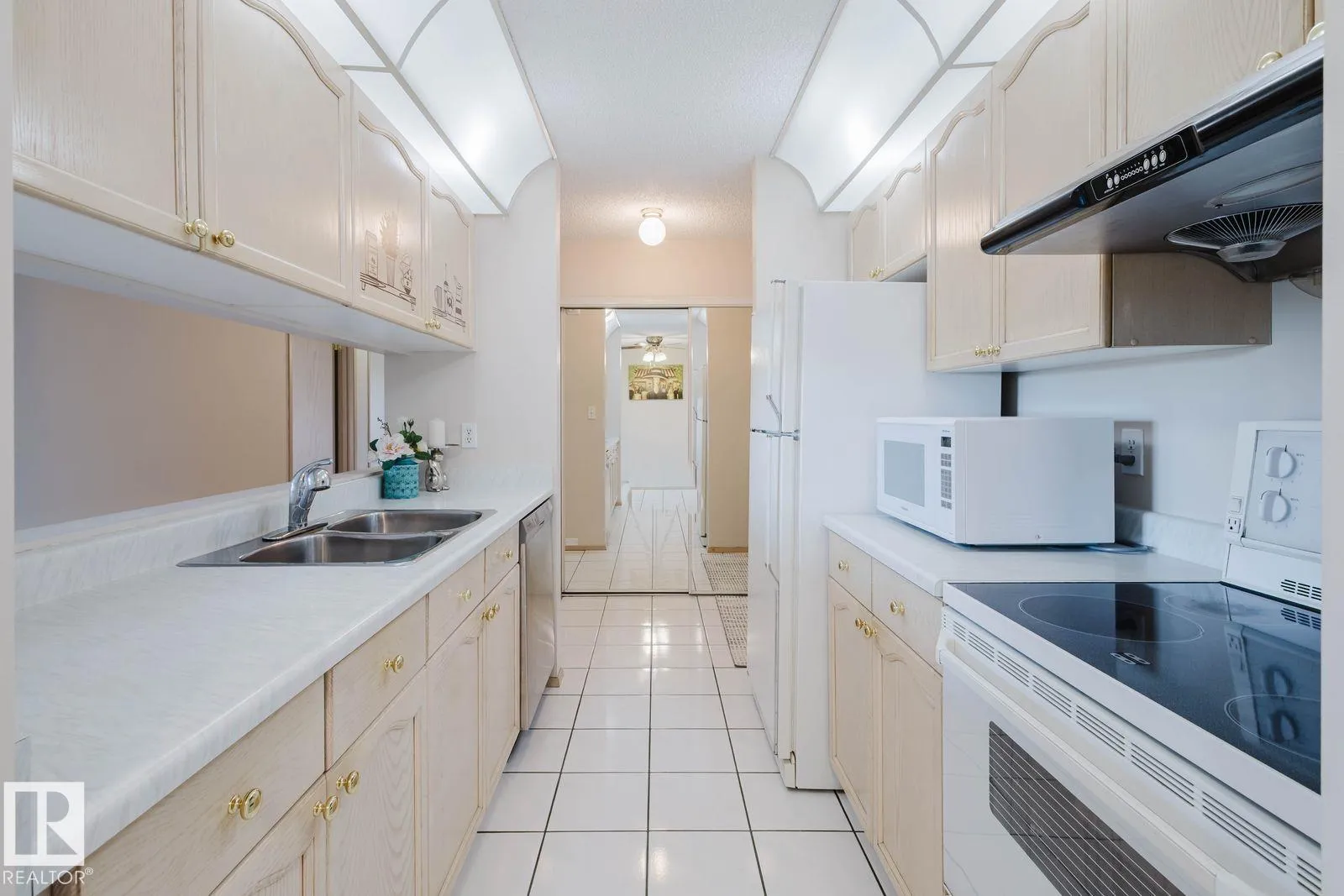 Stunning Lakefront Views! It's rare to find a home in the heart of vibrant West Edmonton that offers this kind of natural beauty. This 3rd floor condo backs directly onto a serene lake, offering peace, privacy, and breathtaking sunsets from every room. Beautifully updated with brand-new luxury vinyl flooring and fresh paint throughout, this bright and airy suite features a smart, functional layout: two spacious bedrooms with custom closet organizers, a walk-through kitchen, in-suite laundry and storage, plus air conditioning and a brand new toilet for year-round comfort. Whether you're relaxing in the living room, unwinding in the bedroom, or stepping out onto your west-facing covered balcony, you'll enjoy beautiful lake views, all just minutes from West Edmonton Mall and countless shopping and dining options. The unit also comes with a covered parking stall and convenient elevator access. Available for immediate possession - perfect for both nature lovers and city lifestyle seekers. (id:27476)