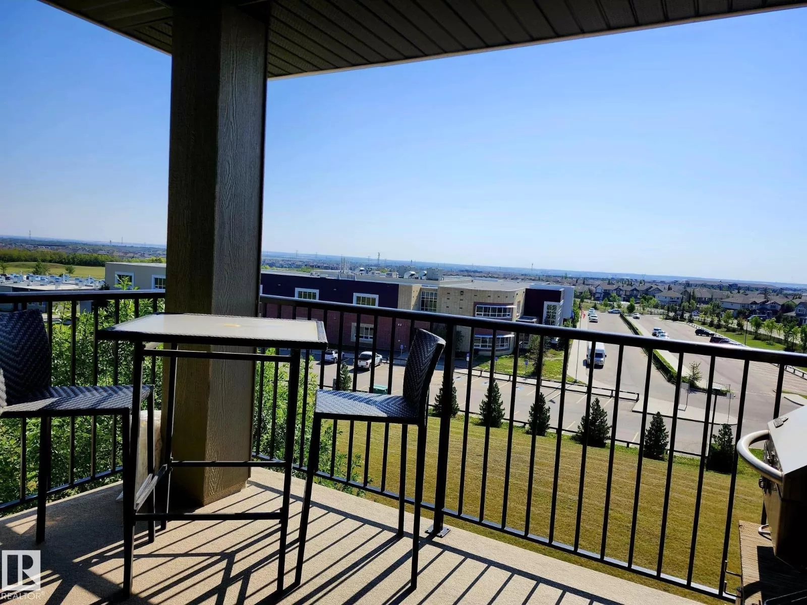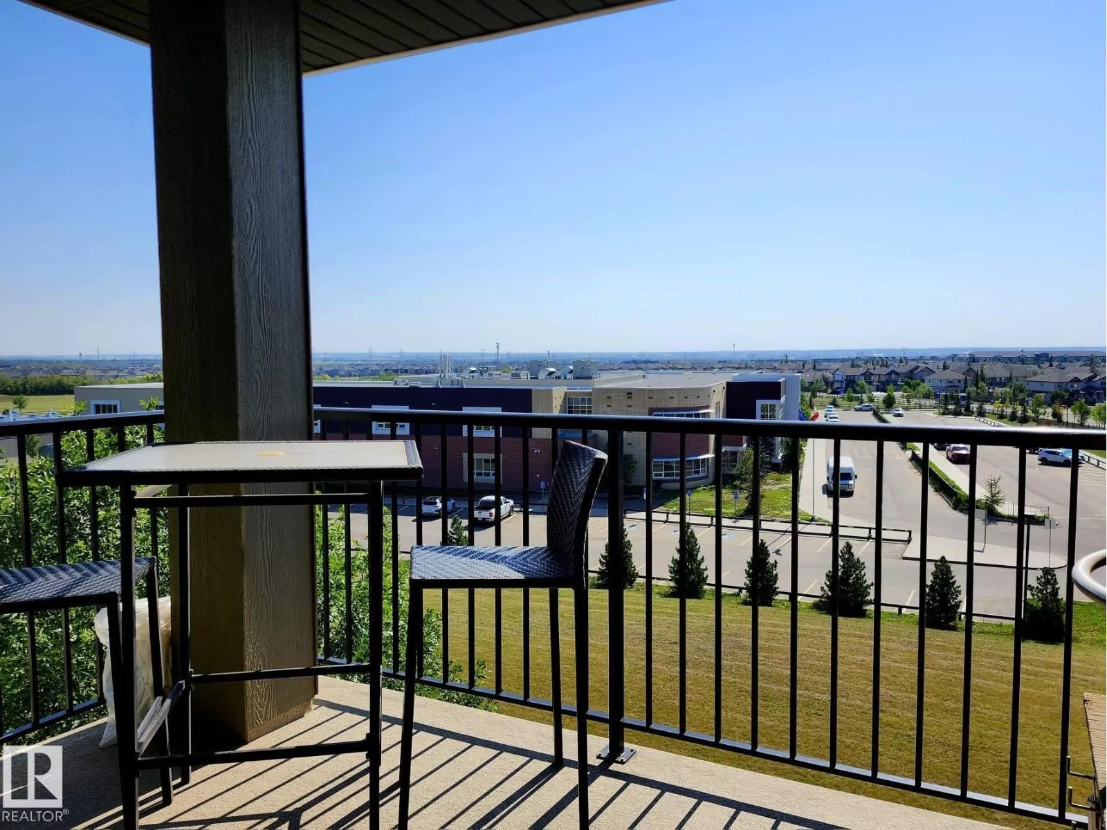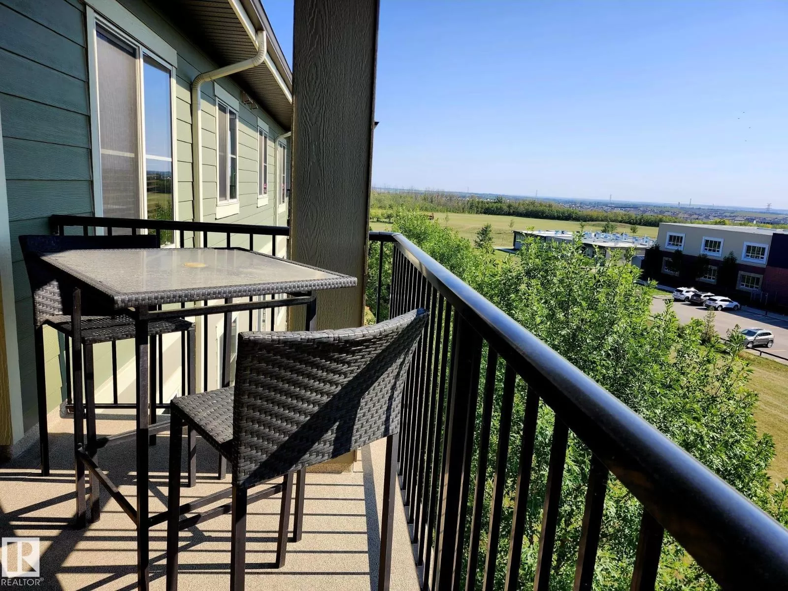 TOP FLOOR Corner Unit with 2 HEATED UNDERGROUND parking stalls, 2 STORAGE UNITS, & IN-SUITE LAUNDRY. Stunning Views! This original owner condo is impeccably clean, beautifully maintained, and offers 2 BEDS + a DEN, 2 full bathrooms, & the comfort of CENTRAL AIR CONDITIONING. Enjoy the privacy & extra light of a top floor corner unit w/ expansive views overlooking GREEN SPACE. Featuring 2 The stylish kitchen is equipped w/ rich dark maple cabinetry, luxurious granite countertops, stainless steel appliances, a breakfast bar, & a dedicated dining area. Abundant windows fill the space w/ natural light, creating a warm, inviting atmosphere. The spacious living room opens to a covered balconyâperfect for relaxing & enjoying the view. The primary suite includes a walkthrough closet & 4-piece ensuite. A generous 2nd bedroom, versatile DEN, & another full bathroom complete the layout. Well maintained building by schools, parks, trails, shopping, public transit, & easy access to henday. (id:27476)