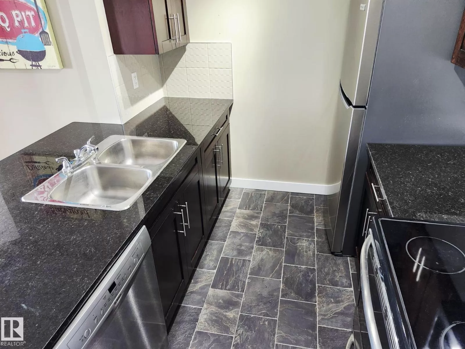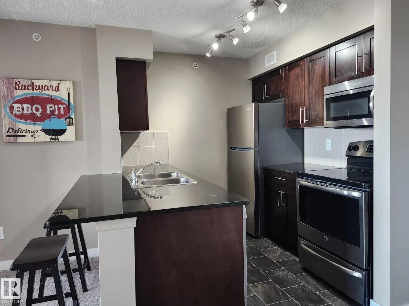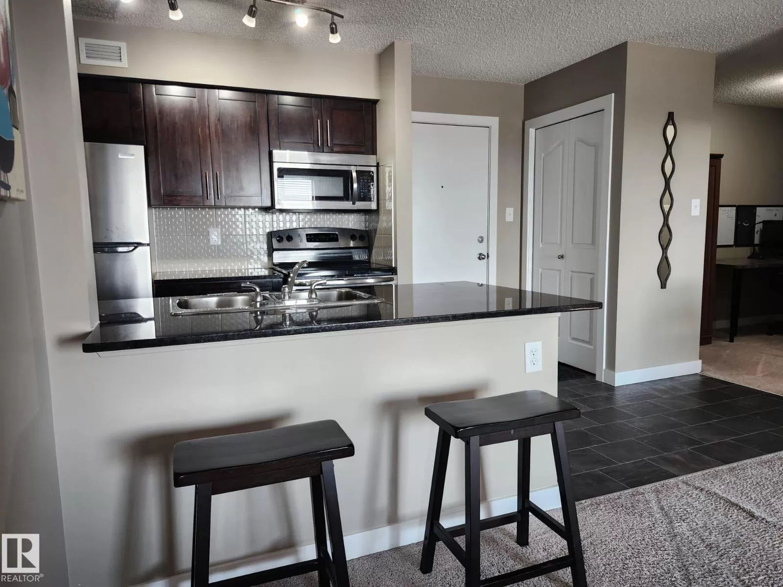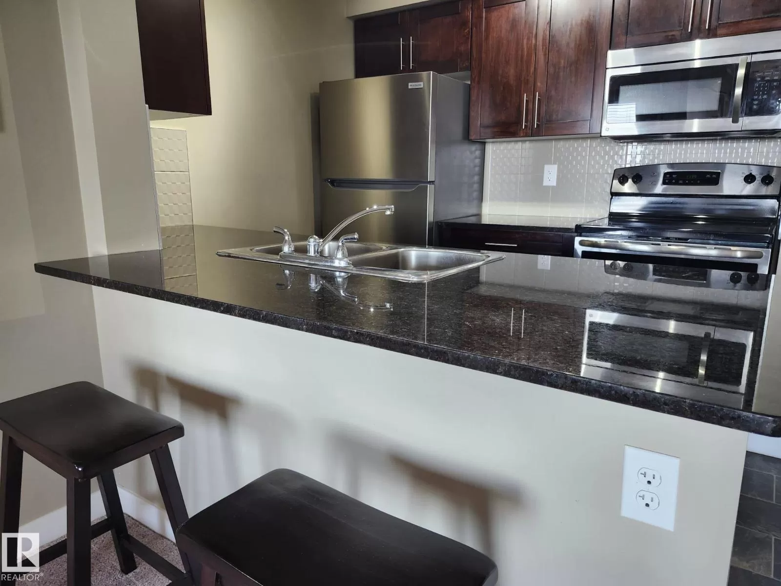 TOP FLOOR Corner Unit with 2 HEATED UNDERGROUND parking stalls, 2 STORAGE UNITS, & IN-SUITE LAUNDRY. Stunning Views! This original owner condo is impeccably clean, beautifully maintained, and offers 2 BEDS + a DEN, 2 full bathrooms, & the comfort of CENTRAL AIR CONDITIONING. Enjoy the privacy & extra light of a top floor corner unit w/ expansive views overlooking GREEN SPACE. Featuring 2 The stylish kitchen is equipped w/ rich dark maple cabinetry, luxurious granite countertops, stainless steel appliances, a breakfast bar, & a dedicated dining area. Abundant windows fill the space w/ natural light, creating a warm, inviting atmosphere. The spacious living room opens to a covered balconyâperfect for relaxing & enjoying the view. The primary suite includes a walkthrough closet & 4-piece ensuite. A generous 2nd bedroom, versatile DEN, & another full bathroom complete the layout. Well maintained building by schools, parks, trails, shopping, public transit, & easy access to henday. (id:27476)