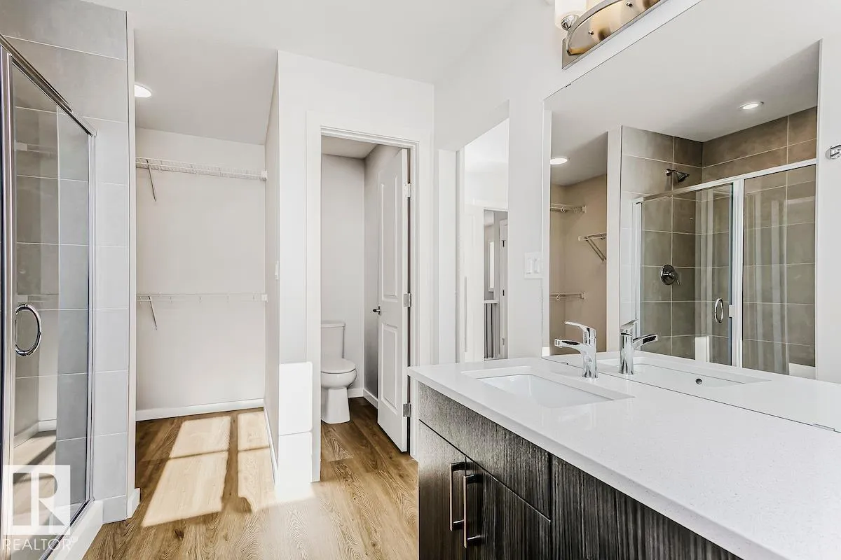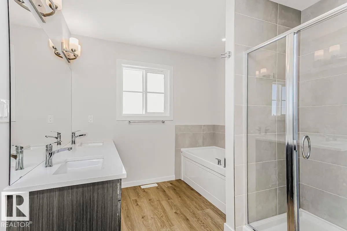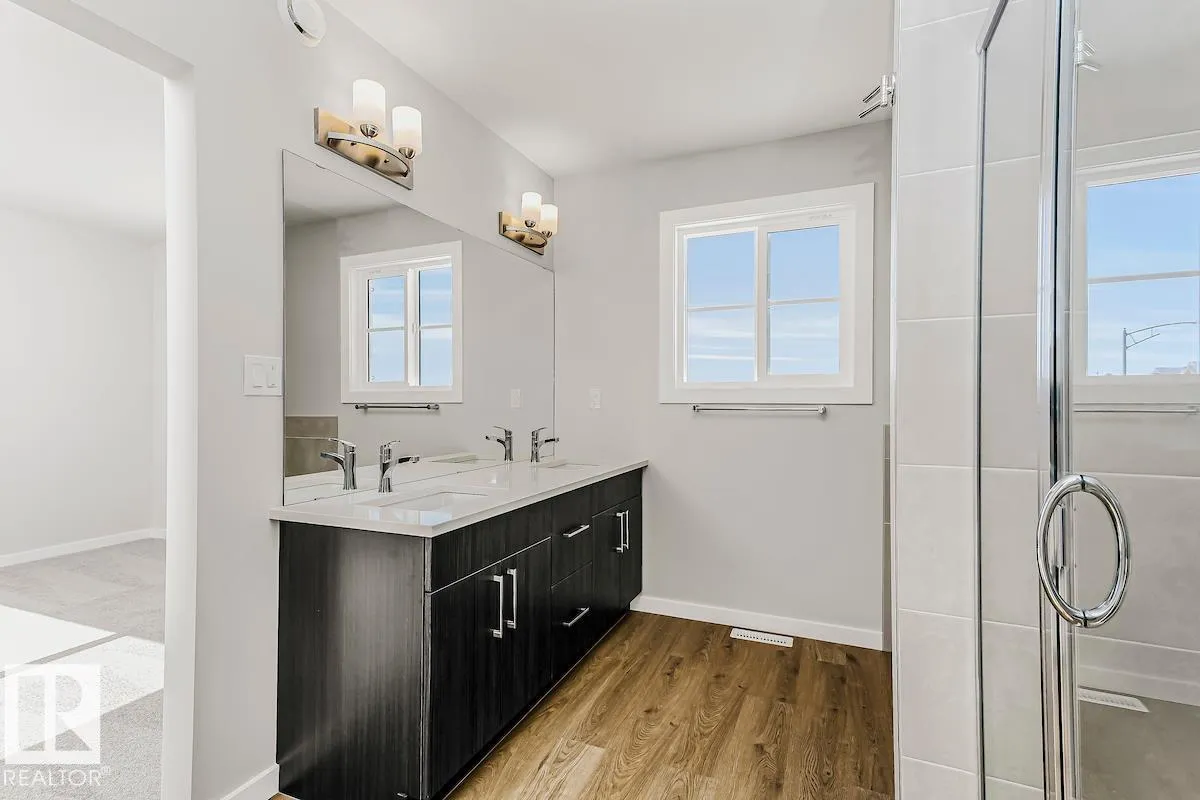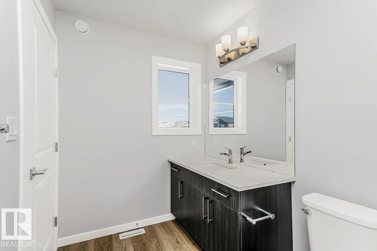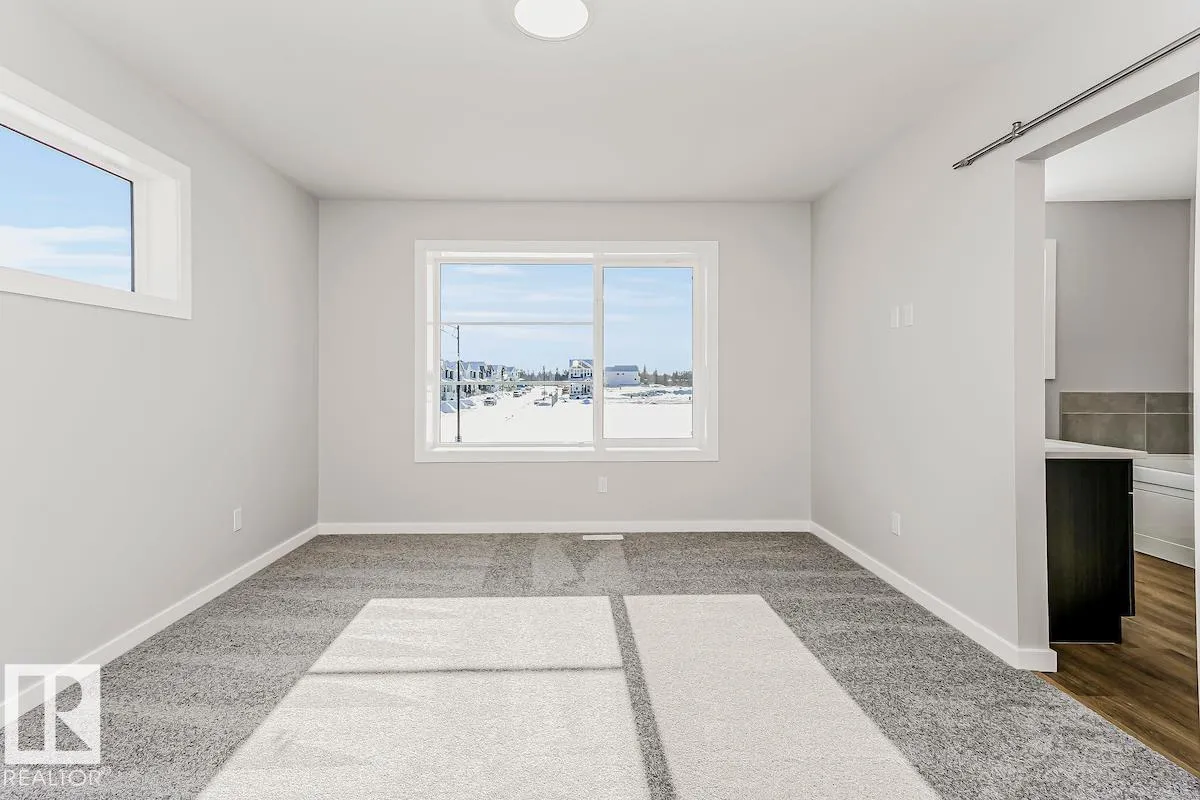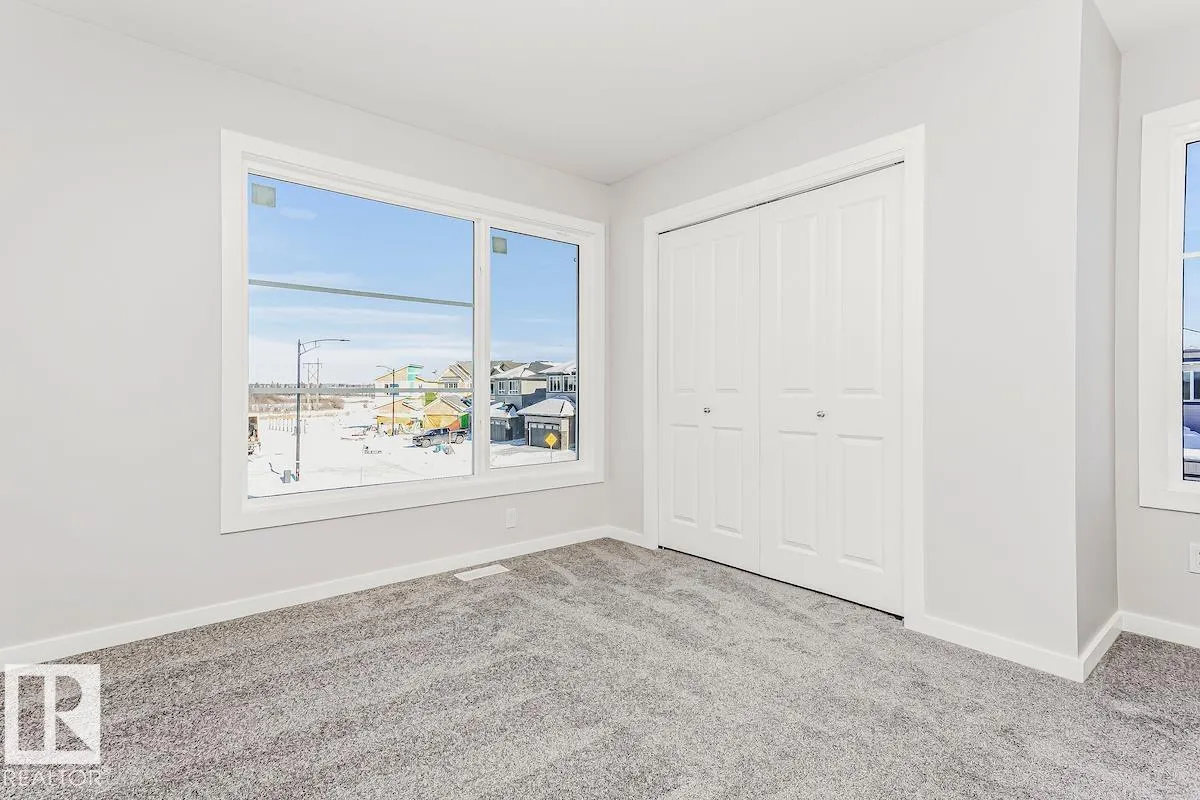 Marquis West is away from the hustle and bustle, yet close to Edmontonâs main ring road for amenities and commuting. Backing onto a park will provide privacy in your backyard. This stunning home has a 9â main floor with an open to above great room which includes a 50â linear electric fireplace. The beautiful L-Shaped kitchen at the rear of the home is bright and features quartz counters and a nice size island. As you reach the second floor, you'll discover a bridge leading over the great room towards the bonus room. A side entrance is included for a potential future development, with the basement ceiling height upgraded to 9â, for a more spacious feel. The flex room on the main floor is perfect for an office or playroom for the little ones. You will find metal spindle railing on the main and second floor. Photos are representative. (id:27476)