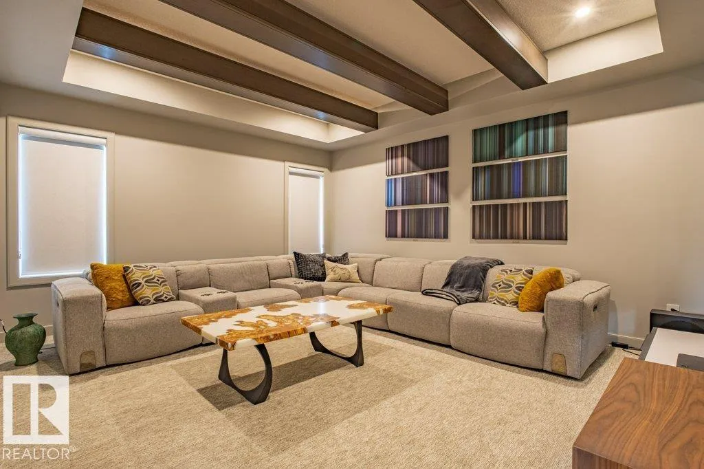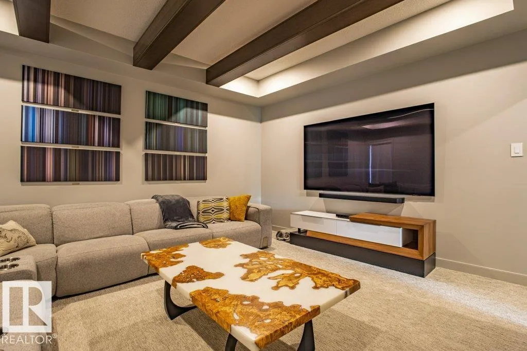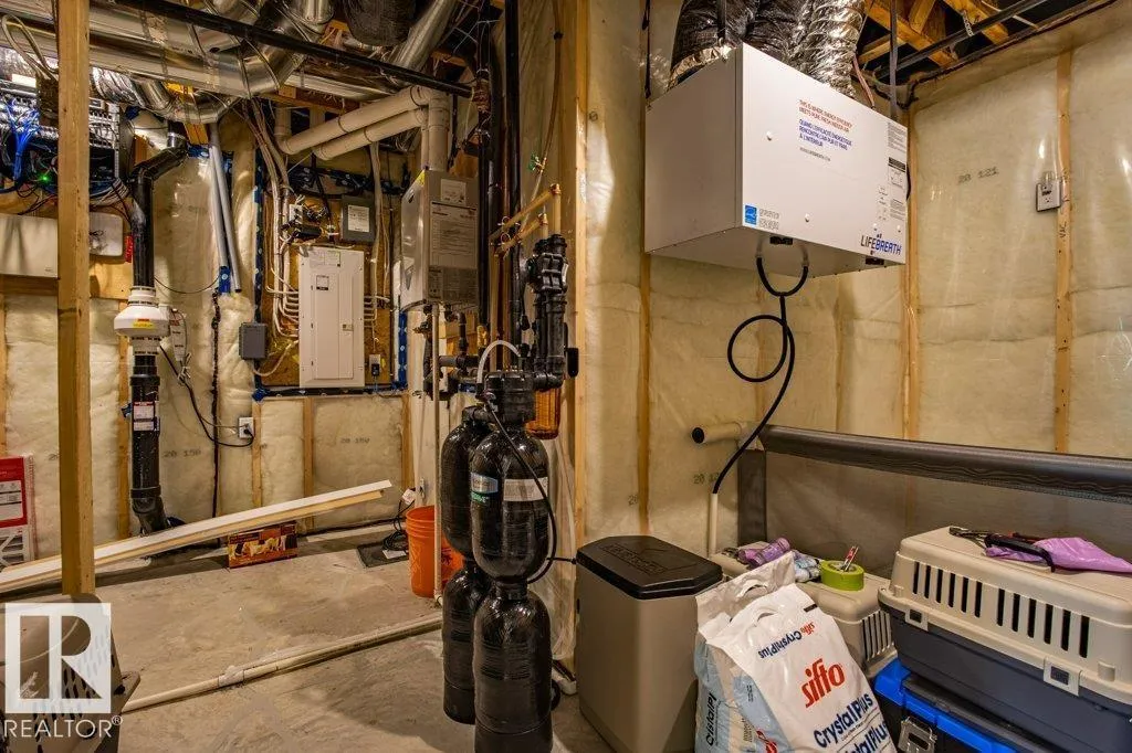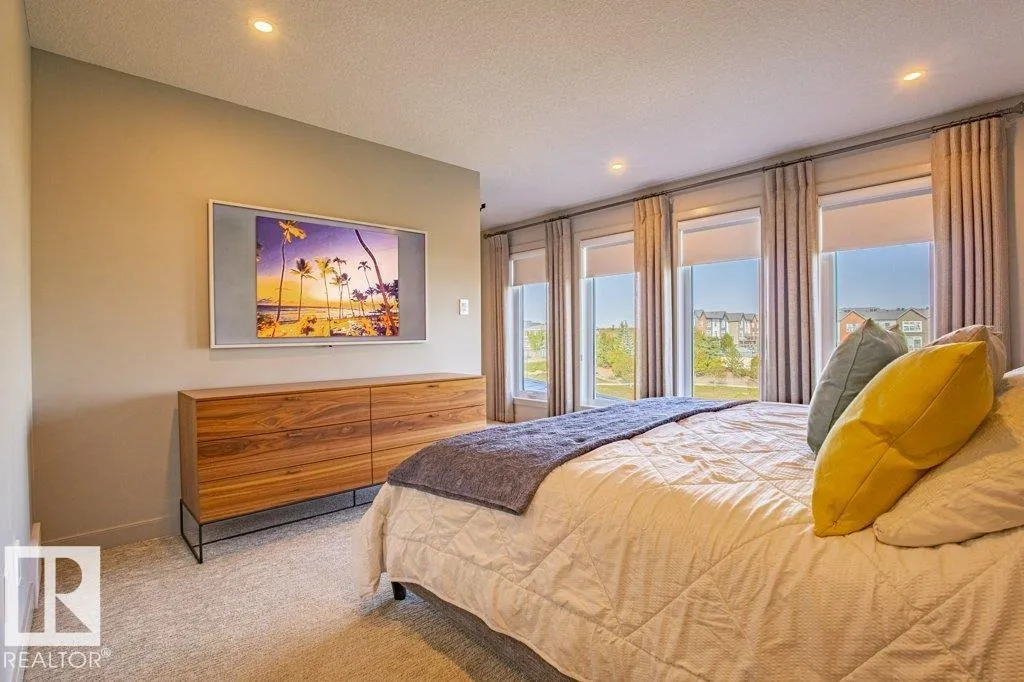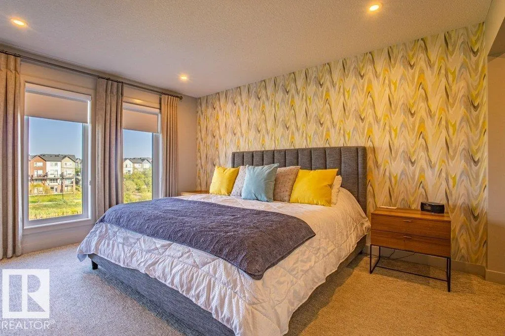 Better than a Show Home. This has to be one of the Nicest Homes in all of Griesbach. This Executive Family Home has amazing views backing onto Bedford Basin Pond. This Home is amazing in every detail. Custom Upgrades throughout: Upgraded Cabinets and Lighting, Interior Decorated Professionally, Custom Window Covering, Custom Tile Work, Fully Finished Walkout Basement, Multiple Outdoor sitting areas, Huge Deck, Covered Portion of the Deck features Retractable Screens, $7,000 Water Softener, Upgraded Bosch Appliances with a 36 Induction cook top, Pot Filler, Garburator, Wine and Bar Fridge, Main floor features a den, open concept Entertainers Kitchen with Massive Kitchen Island. Upstairs features an amazing Theater Area with over $10,000 custom Overhead Beams, Master features a Coffee Bar with sink and Bev fridge, His and Hers Sinks with Huge Walk in Shower and 2 Over sized Bedrooms each with desks, Garage comes Heated with Epoxy Flooring and Drain, Tank less Hot water on Demand. Full A/C (id:27476)