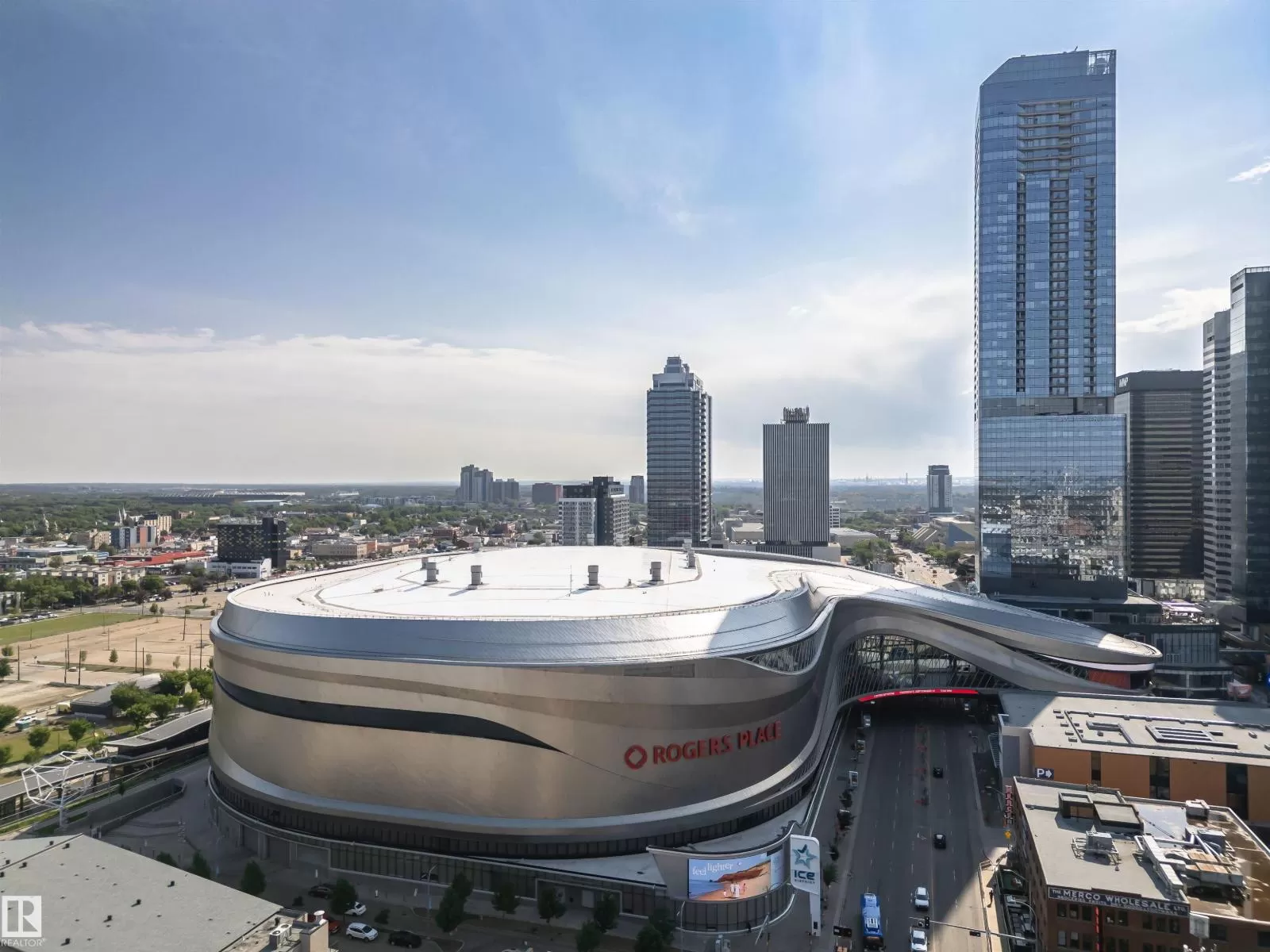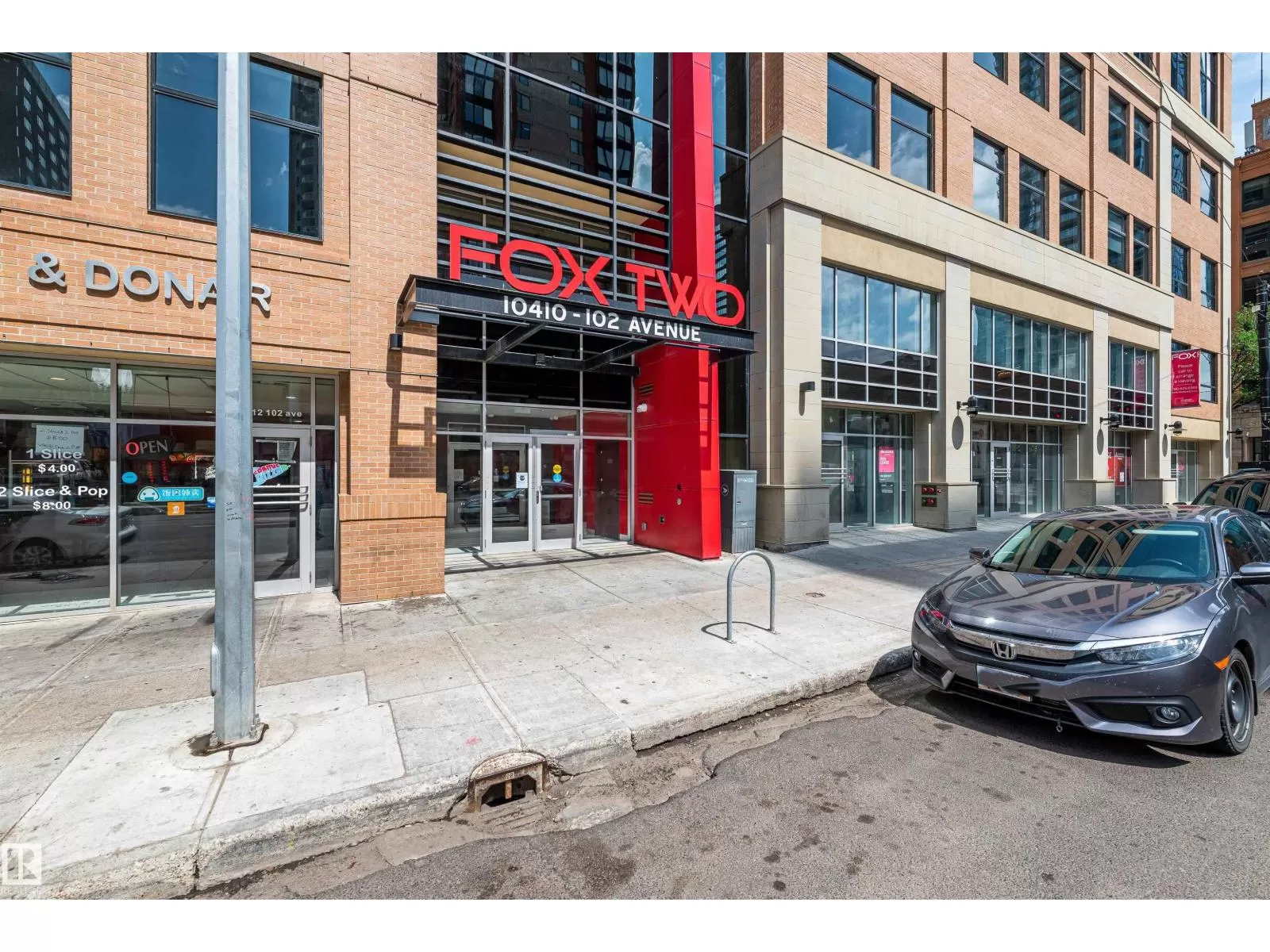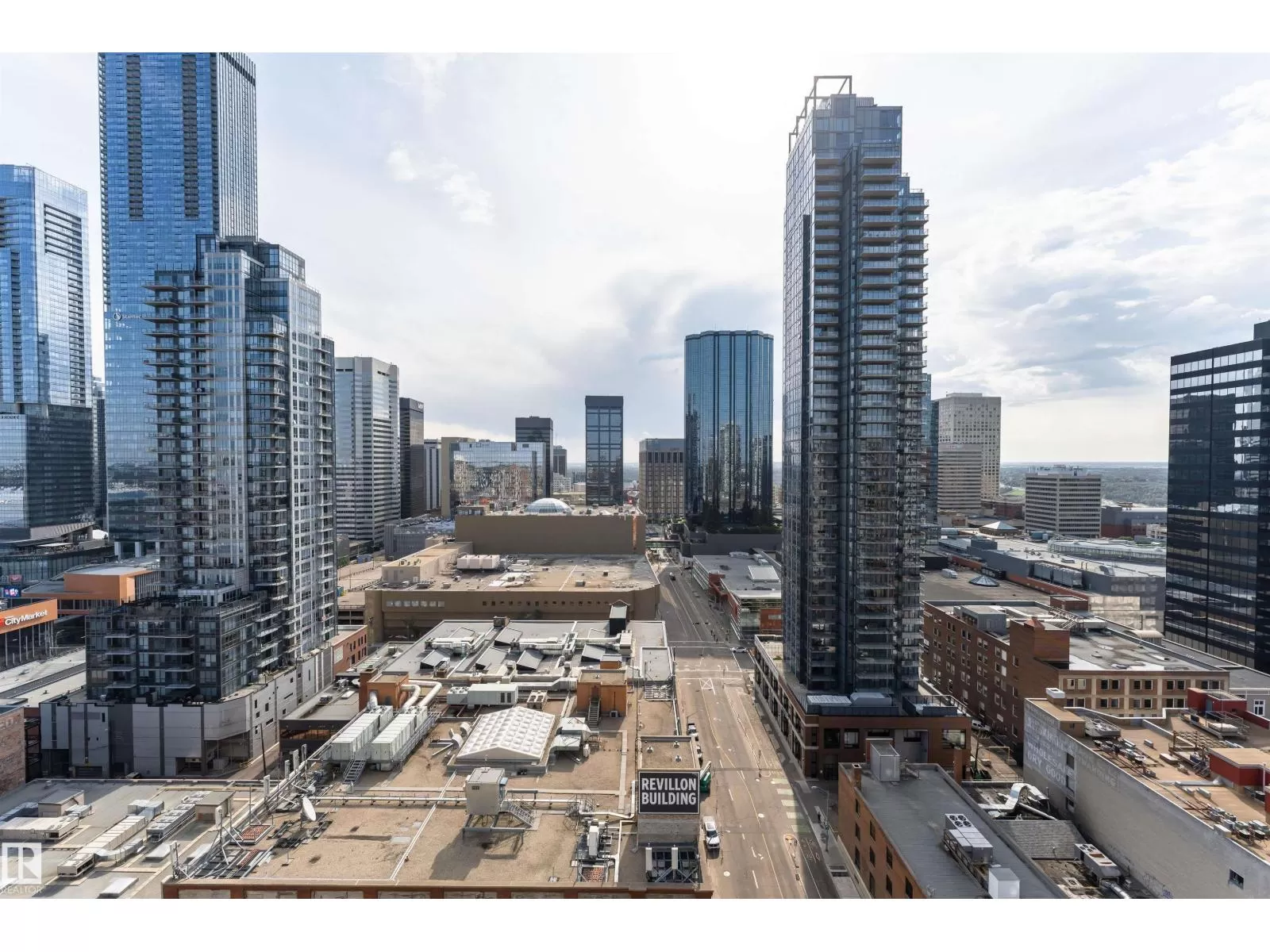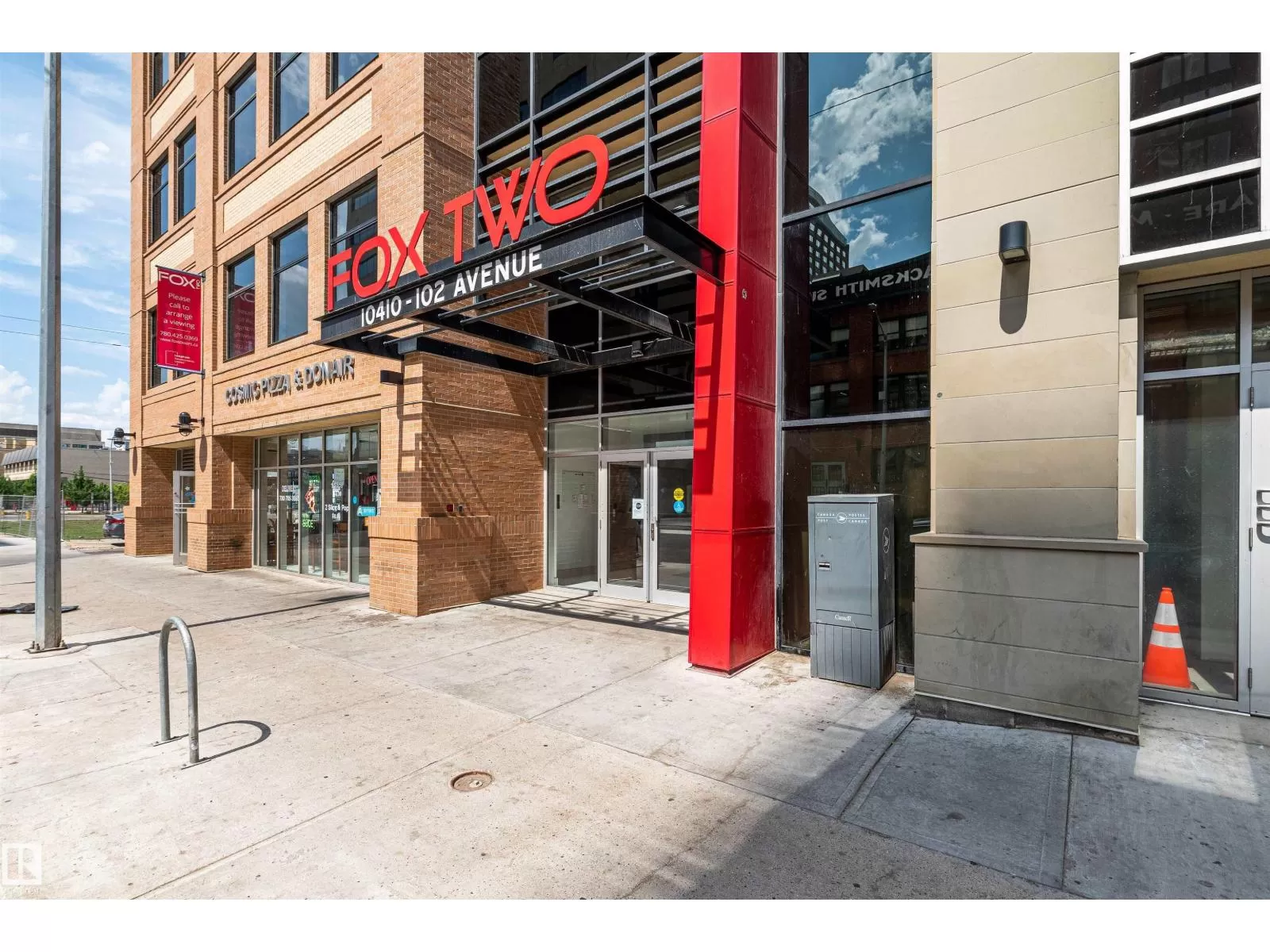 GREAT RENTAL PROPERTY!!! Welcome to the Fox Two Tower, a WALKERS PARADISE, with a walking score of 98/100 this Executive CORNER UNIT IS IN THE HEART OF NEW DOWNTOWN features 2 bedrooms, with a Bonus den/office, 2 FULL bathrooms, a HUGE DECK, POWERED HUNTER DOUGLAS BLINDS W/REMOTE and a LUXURY KITCHEN. Just minutes from the Ice District, 104th street promenade, NEW VALLEY LINE LRT, YMCA, and Rogers Place you are near it all!! The beautiful kitchen features an open-concept design featuring quartz countertops and gloss kitchen cabinets. The open living room features access to your LARGE DECK which has stunning views of the heart downtown and the ice district. The main bedroom features a walk-in closet and 4 pc ensuite. Washer and dryer are in unit and the low condo fees includes heat, water, and sewage! Privacy, convenience, and security are highlighted with underground parking, Bluebox security locker system for package deliveries. The Fox Two is a testament to comfortable, convenient Highrise living! (id:27476)
