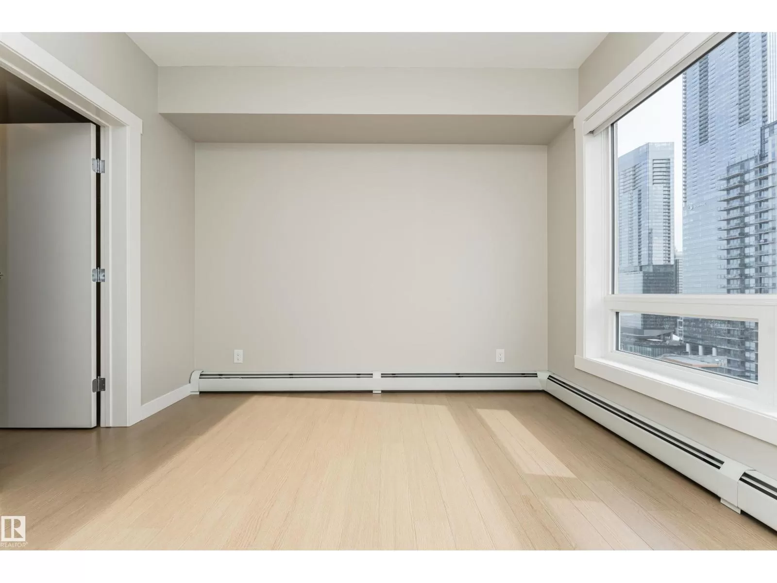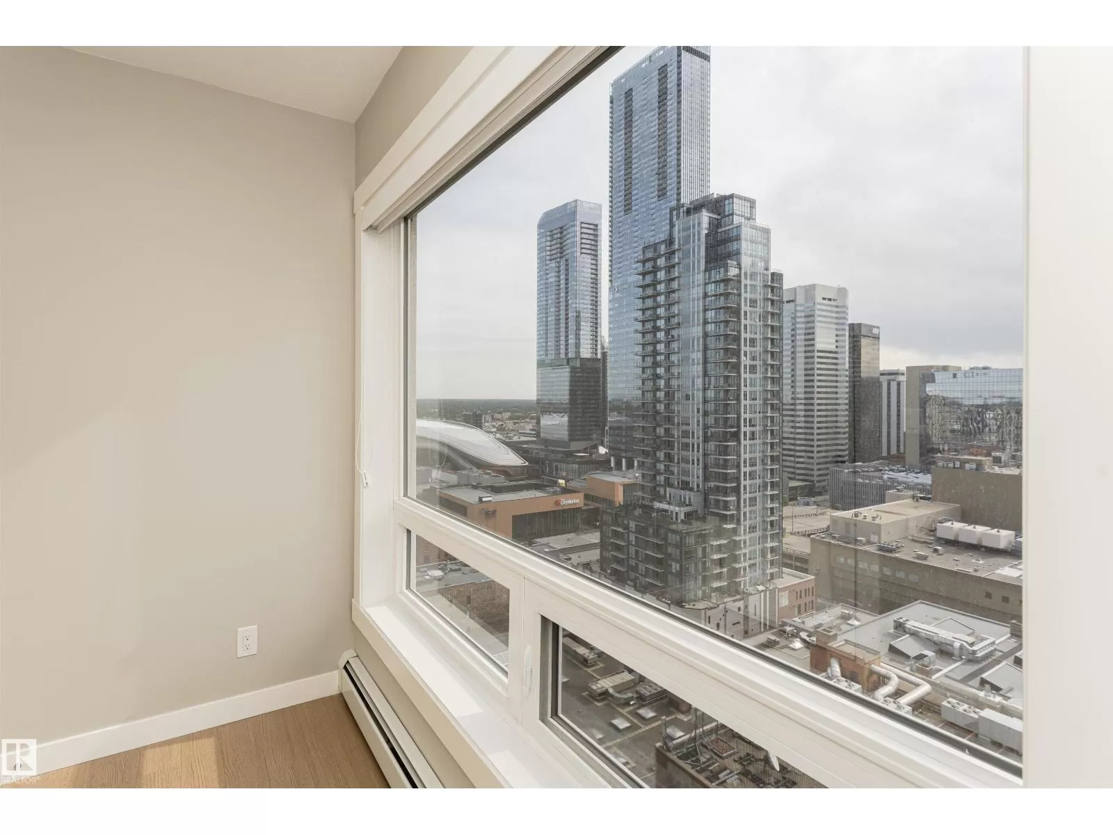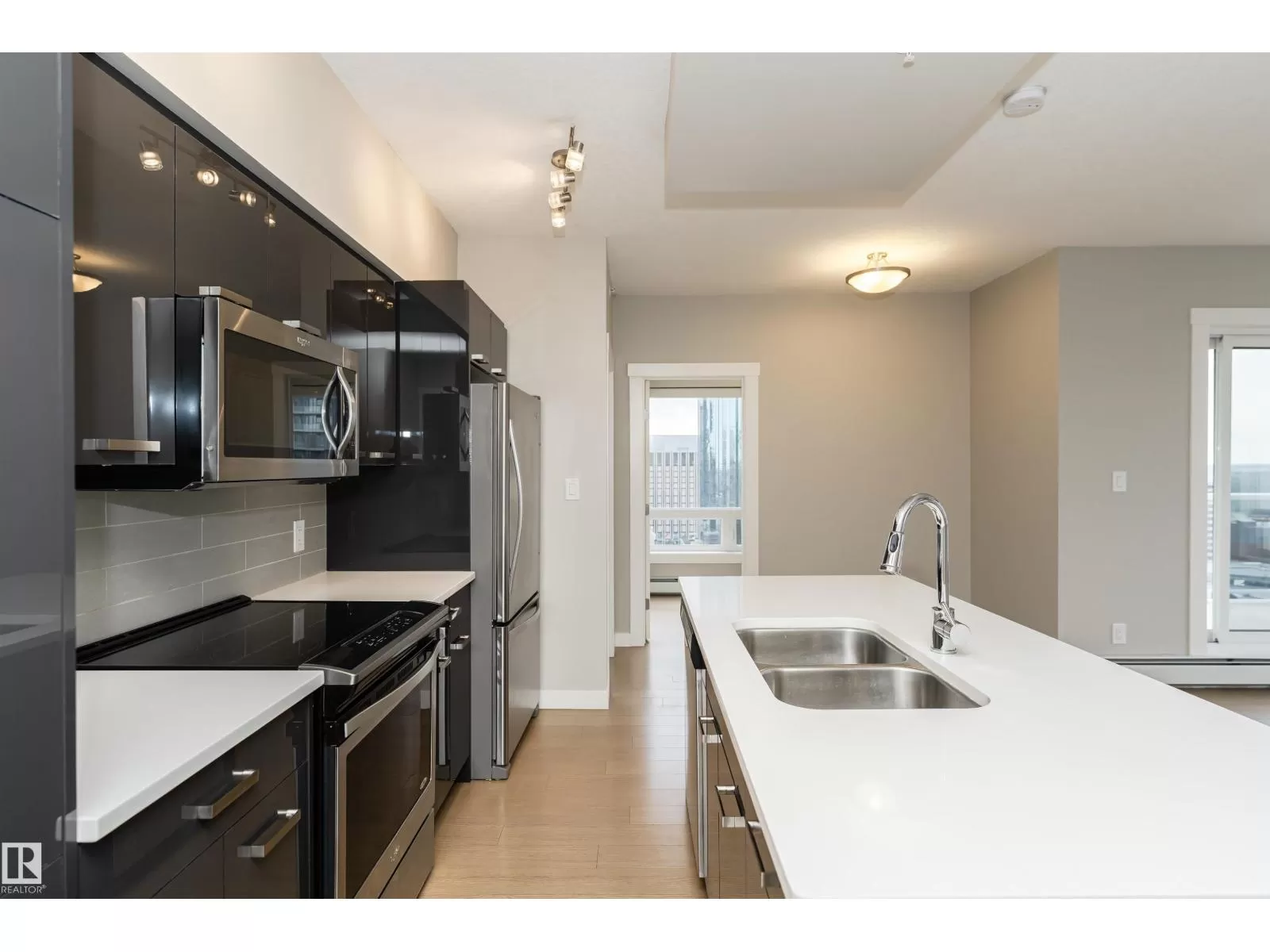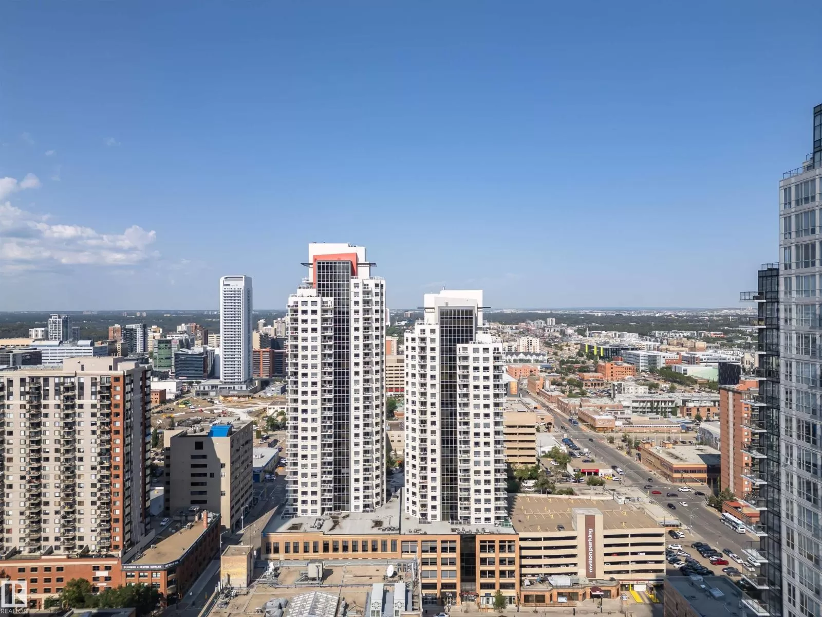 GREAT RENTAL PROPERTY!!! Welcome to the Fox Two Tower, a WALKERS PARADISE, with a walking score of 98/100 this Executive CORNER UNIT IS IN THE HEART OF NEW DOWNTOWN features 2 bedrooms, with a Bonus den/office, 2 FULL bathrooms, a HUGE DECK, POWERED HUNTER DOUGLAS BLINDS W/REMOTE and a LUXURY KITCHEN. Just minutes from the Ice District, 104th street promenade, NEW VALLEY LINE LRT, YMCA, and Rogers Place you are near it all!! The beautiful kitchen features an open-concept design featuring quartz countertops and gloss kitchen cabinets. The open living room features access to your LARGE DECK which has stunning views of the heart downtown and the ice district. The main bedroom features a walk-in closet and 4 pc ensuite. Washer and dryer are in unit and the low condo fees includes heat, water, and sewage! Privacy, convenience, and security are highlighted with underground parking, Bluebox security locker system for package deliveries. The Fox Two is a testament to comfortable, convenient Highrise living! (id:27476)