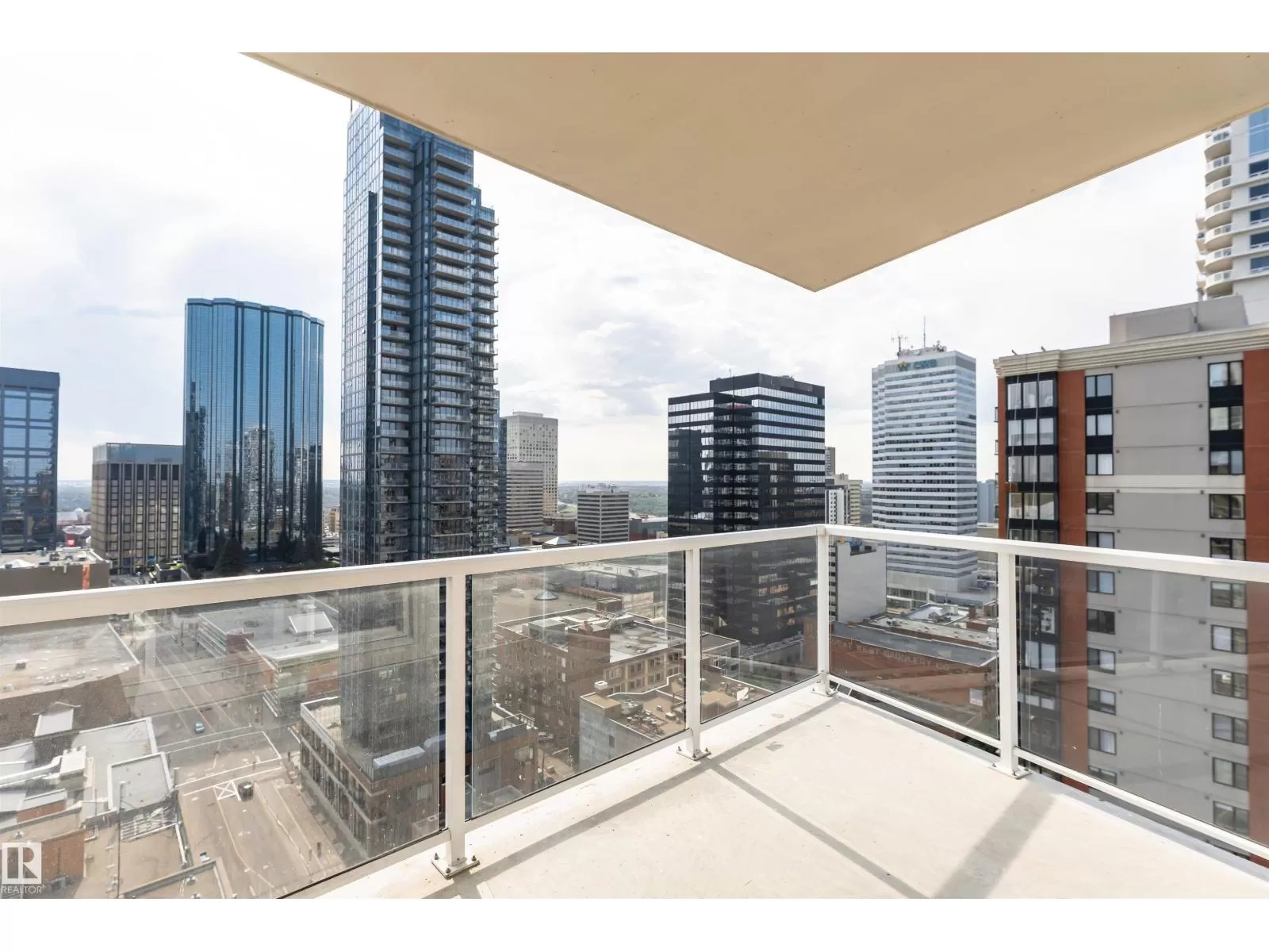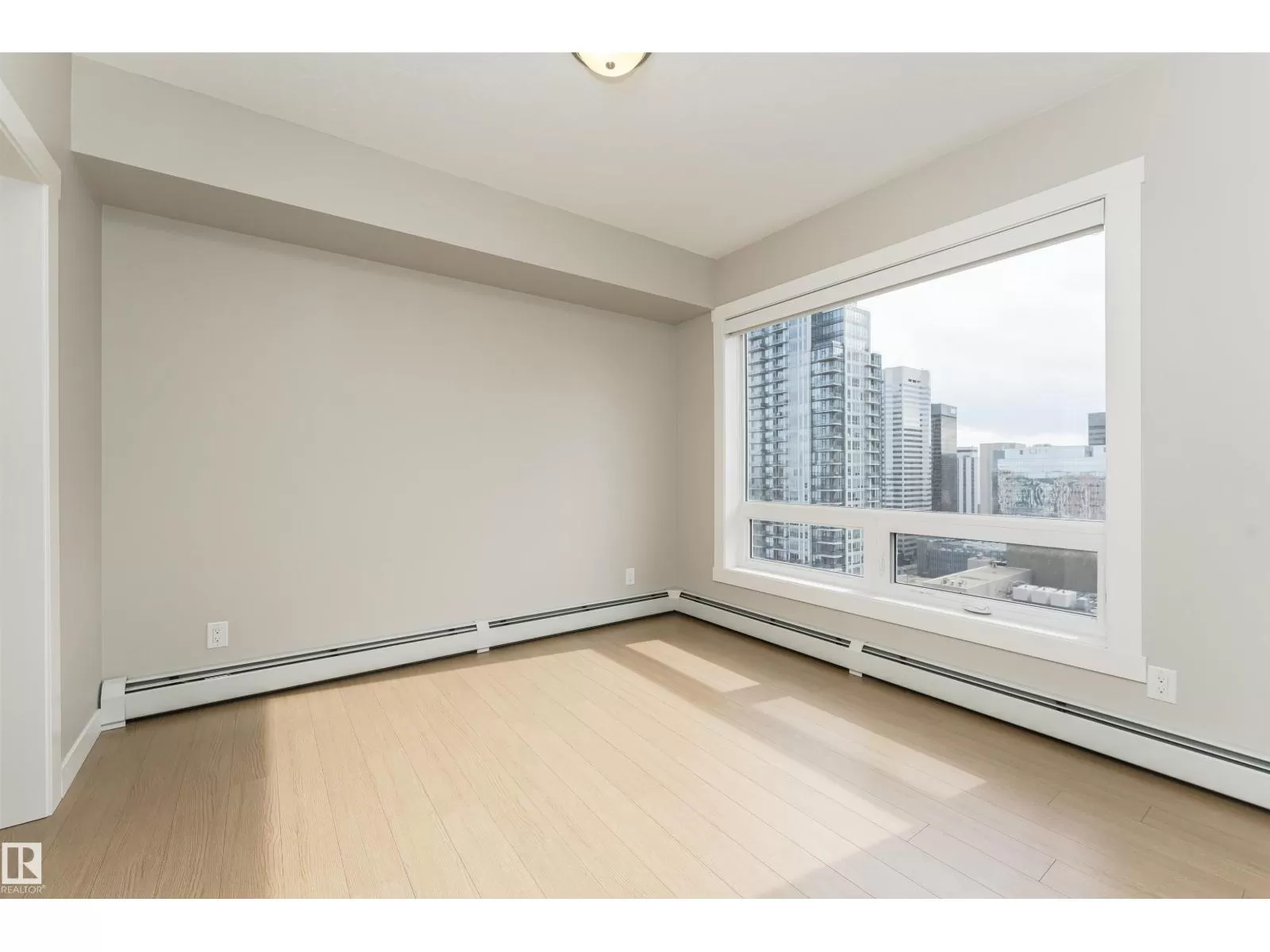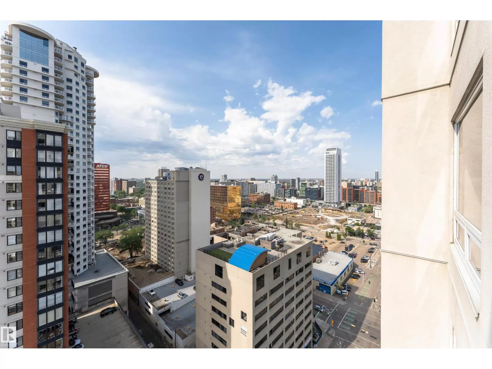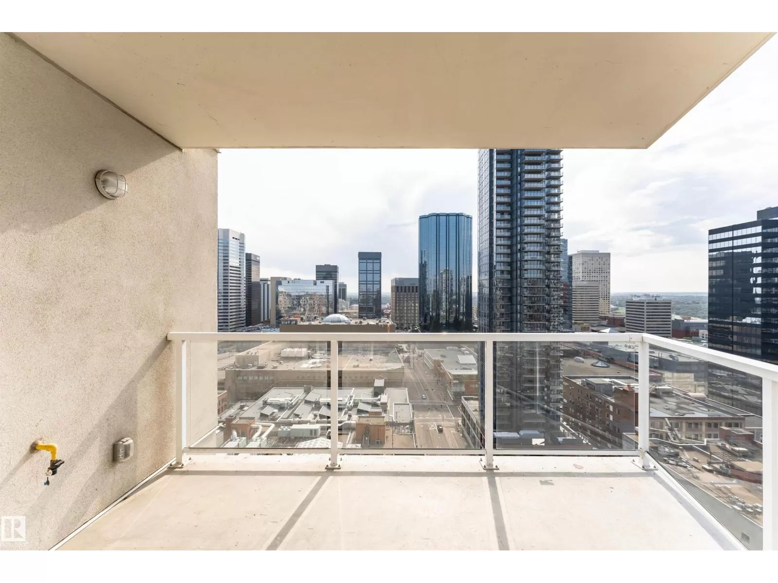 GREAT RENTAL PROPERTY!!! Welcome to the Fox Two Tower, a WALKERS PARADISE, with a walking score of 98/100 this Executive CORNER UNIT IS IN THE HEART OF NEW DOWNTOWN features 2 bedrooms, with a Bonus den/office, 2 FULL bathrooms, a HUGE DECK, POWERED HUNTER DOUGLAS BLINDS W/REMOTE and a LUXURY KITCHEN. Just minutes from the Ice District, 104th street promenade, NEW VALLEY LINE LRT, YMCA, and Rogers Place you are near it all!! The beautiful kitchen features an open-concept design featuring quartz countertops and gloss kitchen cabinets. The open living room features access to your LARGE DECK which has stunning views of the heart downtown and the ice district. The main bedroom features a walk-in closet and 4 pc ensuite. Washer and dryer are in unit and the low condo fees includes heat, water, and sewage! Privacy, convenience, and security are highlighted with underground parking, Bluebox security locker system for package deliveries. The Fox Two is a testament to comfortable, convenient Highrise living! (id:27476)