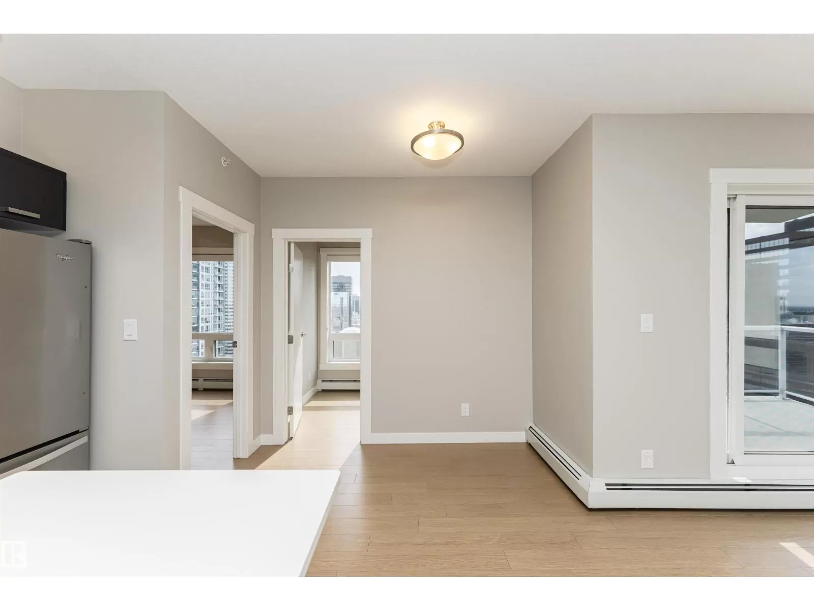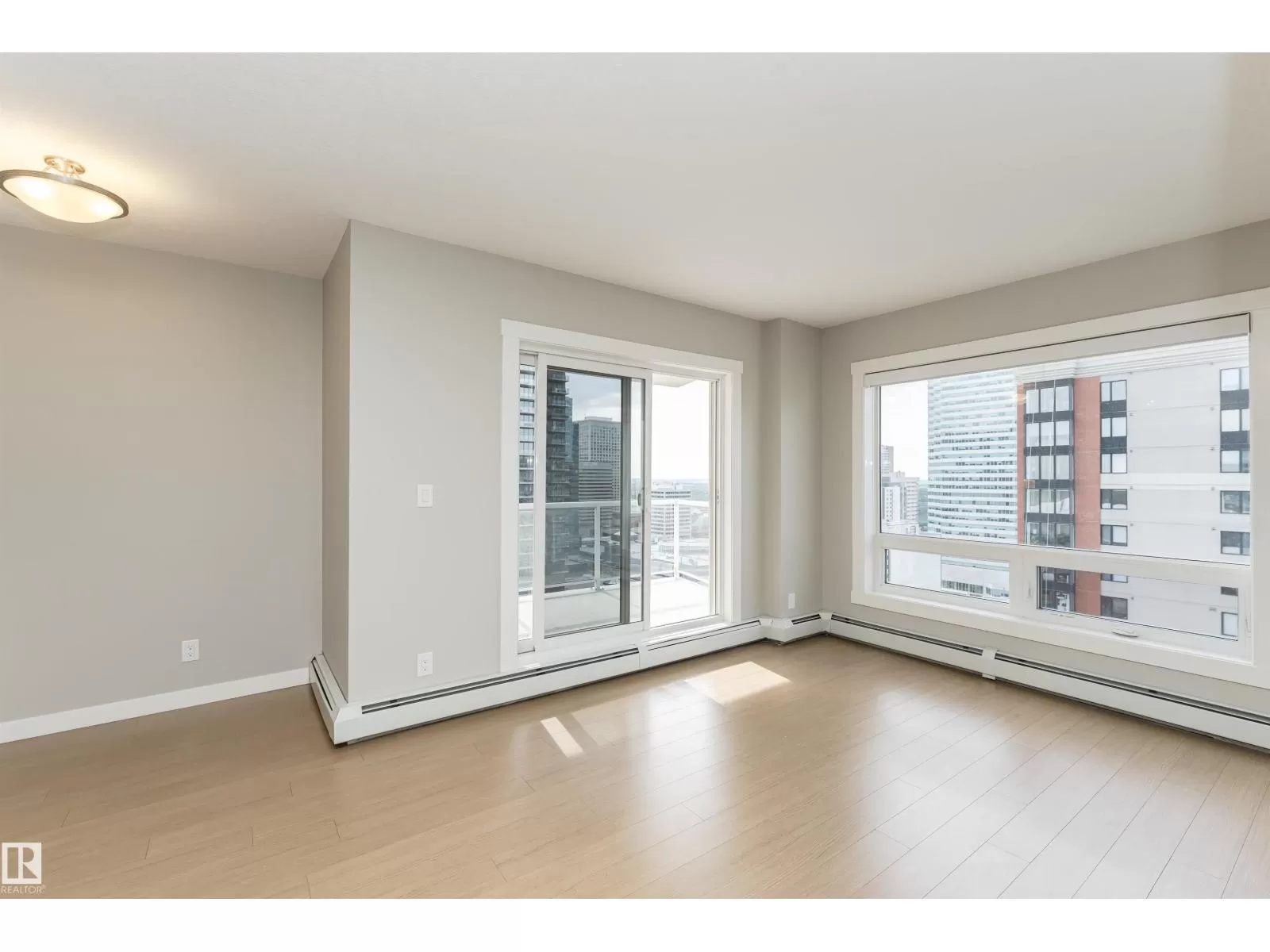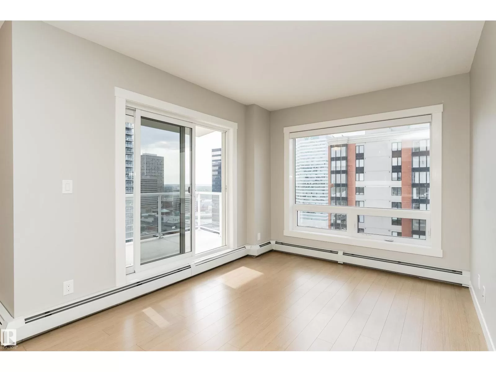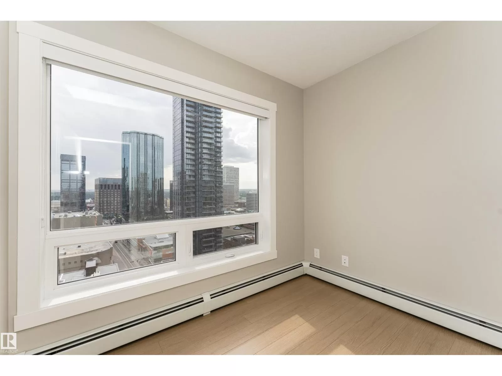 GREAT RENTAL PROPERTY!!! Welcome to the Fox Two Tower, a WALKERS PARADISE, with a walking score of 98/100 this Executive CORNER UNIT IS IN THE HEART OF NEW DOWNTOWN features 2 bedrooms, with a Bonus den/office, 2 FULL bathrooms, a HUGE DECK, POWERED HUNTER DOUGLAS BLINDS W/REMOTE and a LUXURY KITCHEN. Just minutes from the Ice District, 104th street promenade, NEW VALLEY LINE LRT, YMCA, and Rogers Place you are near it all!! The beautiful kitchen features an open-concept design featuring quartz countertops and gloss kitchen cabinets. The open living room features access to your LARGE DECK which has stunning views of the heart downtown and the ice district. The main bedroom features a walk-in closet and 4 pc ensuite. Washer and dryer are in unit and the low condo fees includes heat, water, and sewage! Privacy, convenience, and security are highlighted with underground parking, Bluebox security locker system for package deliveries. The Fox Two is a testament to comfortable, convenient Highrise living! (id:27476)