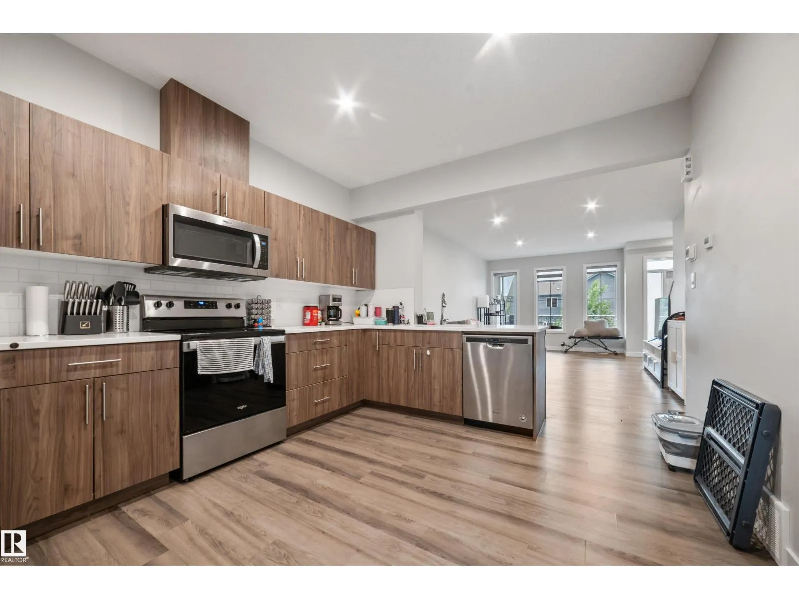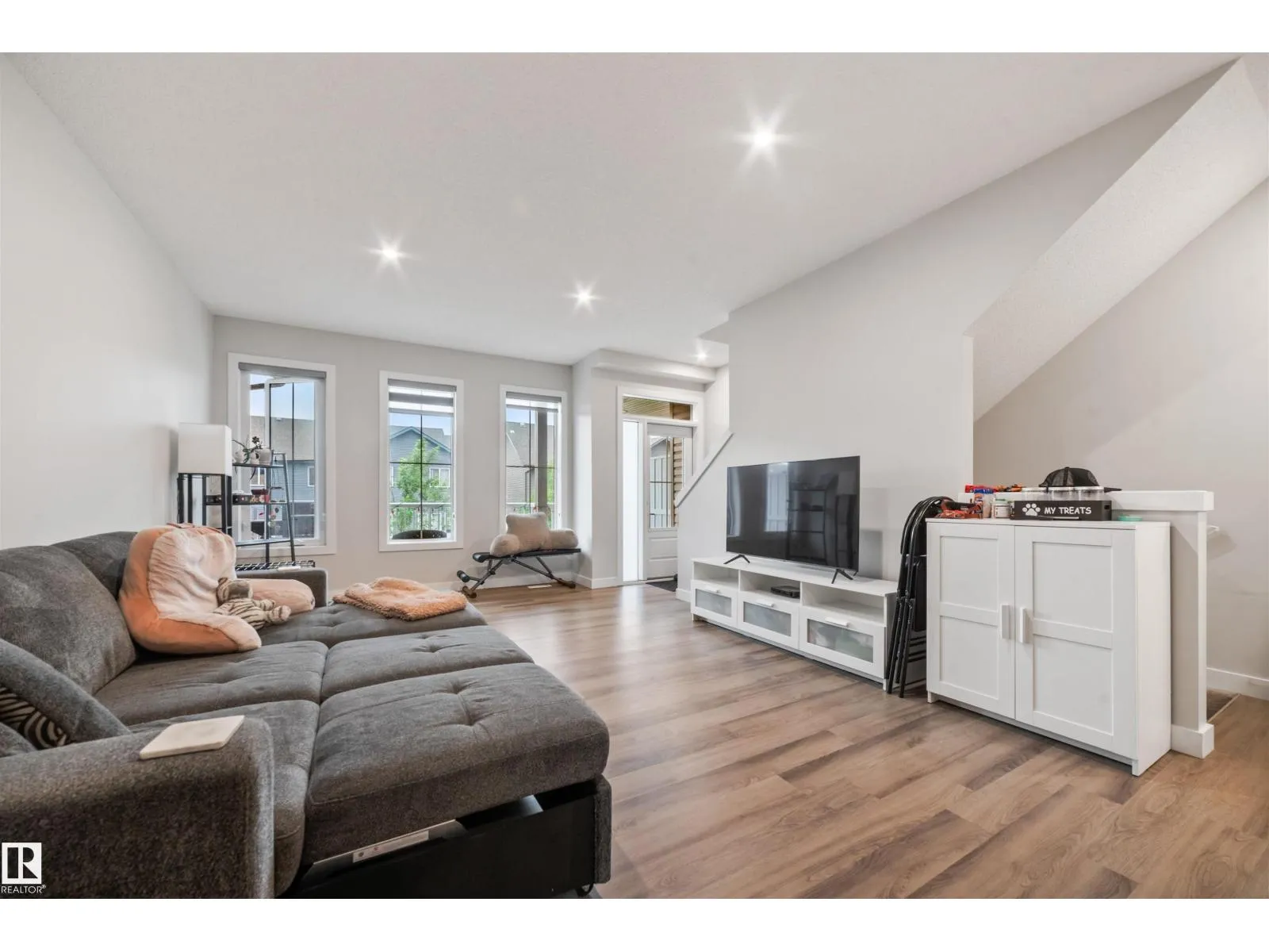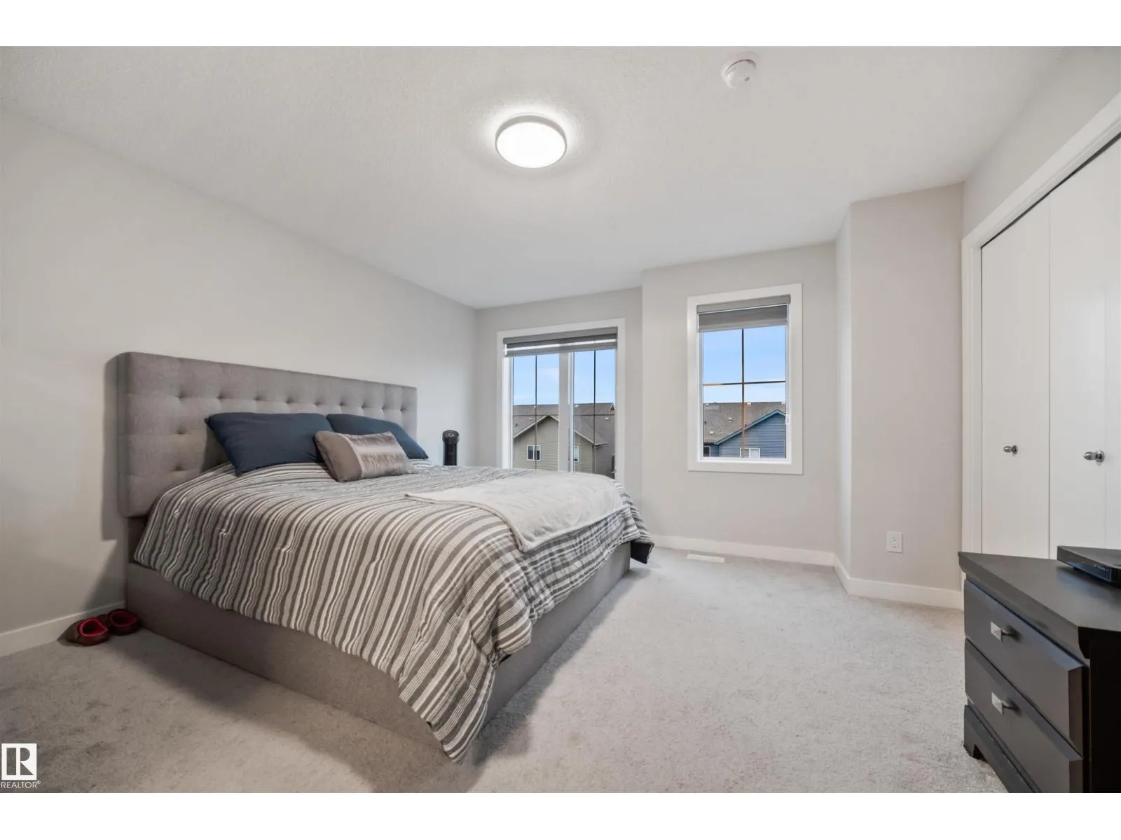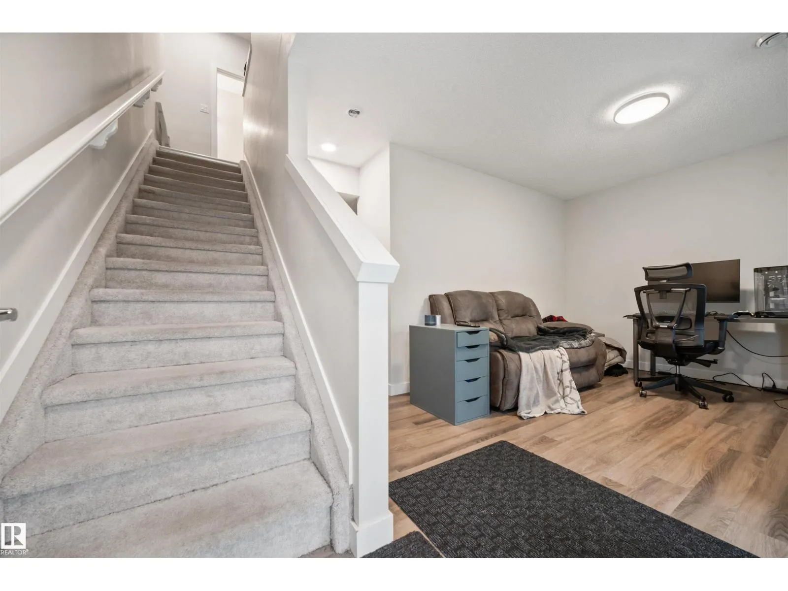 Welcome to this stylish 3-storey townhome in Graydon Hill offering nearly 1700 sqft of modern living! Built in 2021, this 3 bed, 2.5 bath home features a spacious flex room on the entry level, perfect for a home office, gym or a 4th bedroom, plus a mudroom and double attached garage. The main floor boasts 9 ft ceilings, luxury vinyl plank flooring, quartz countertops, stainless steel appliances, soft-close cabinetry, and two balconies at the front and back. Upstairs you'll find a large primary suite with a walk-in closet and 3-pc en-suite, two additional bedrooms, a 4-pc bath, and convenient upper floor laundry. Enjoy the Low Condo Fee and a prime location, facing green space and walking trail, minutes to the Henday, airport, schools, shopping, parks & golf. A perfect starter home or investment! (id:27476)