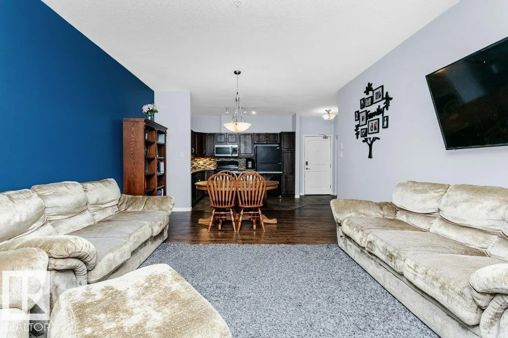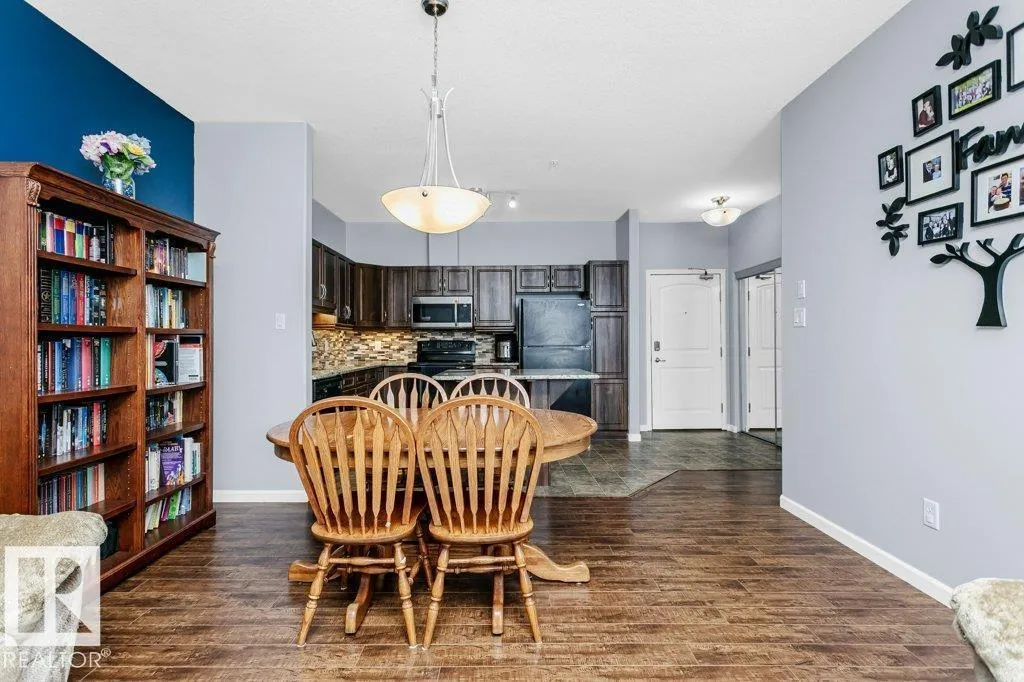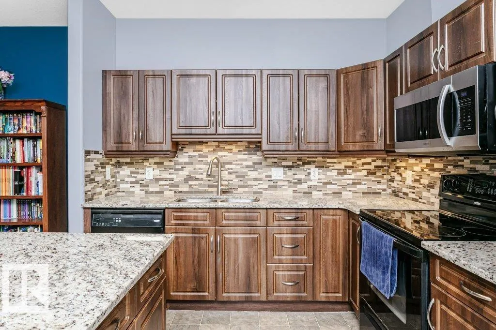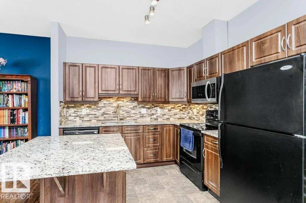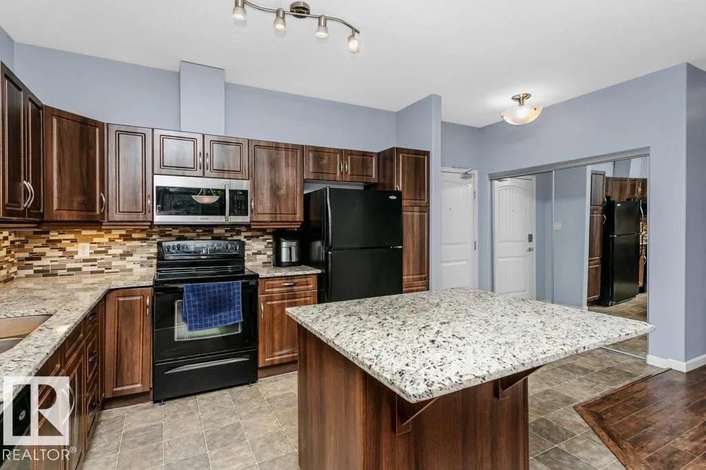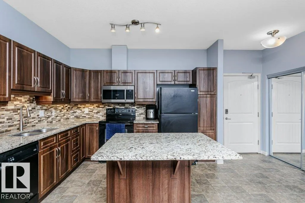 Lovely 2 bed/2bath PLUS den has tons of space. It features an open concept design with bedrooms tucked away from the living space. The large open kitchen includes upgraded granite countertops and opens onto the dining and family room, and the covered patio offers a private oasis with gas hook-up to BBQ year round. The massive primary bedroom includes a 4 pc. ensuite and walk-through closet, and the second bedroom offers tons of space to spread out! Your home also comes complete with in-suite laundry and a den - as well as central A/C for the summer and a fireplace for cozy winter nights. Also included is a titled underground parking stall c/w storage unit. Enjoy fantastic amenities with an exercise room, social/games/theatre room and guest suite rental for extra visitors. Close to shopping, schools, public transit, and just off the Henday to zip anywhere in the city! (id:27476)