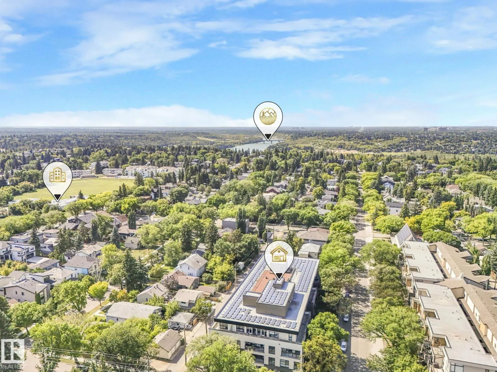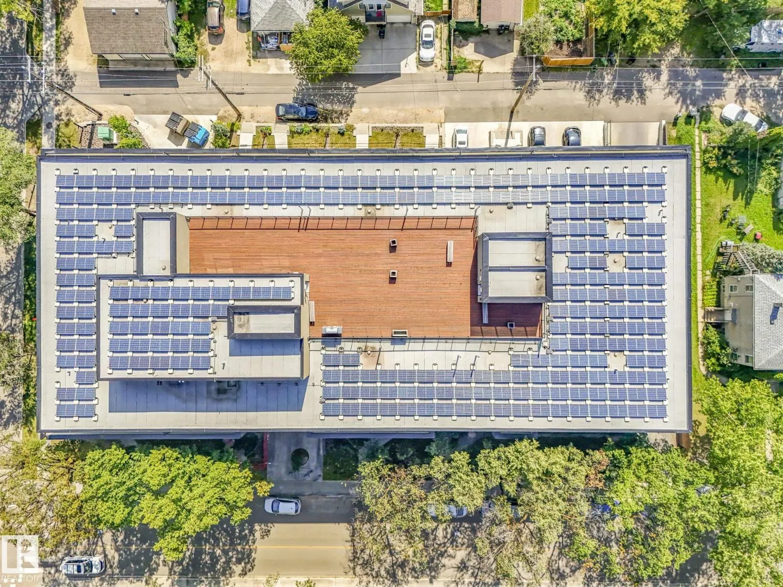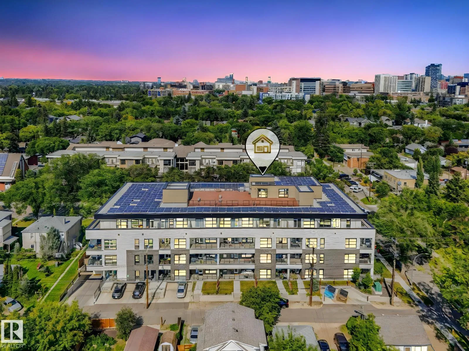 Own a concrete luxury condo in the heart of the charming Belgravia neighborhood! This bright, West-facing end unit on the second floor offers modern living in one of Edmonton's most sought-after areas, just steps from the LRT. Combining eco-friendly design with contemporary style, this home features energy-efficient SOLAR power and GEOTHERMAL heating/cooling (yes air conditioning)âhelping you save some green while staying green. Inside, you'll find an open layout with 2 spacious bedrooms, 1 bath, and convenient in-suite laundry. The stylish kitchen is complete with sleek quartz countertops, modern subway tiles, and high-end finishes. The bathroom is equally impressive with quartz counters and a fully tiled tub/shower. With luxury vinyl plank flooring, custom roller shades, and an underground parking stall, this unit has it all. Walk to the U of A, McKernan LRT station, Belgravia dog park, and Whyte Avenueâperfect for those who crave both convenience and luxury! (id:27476)