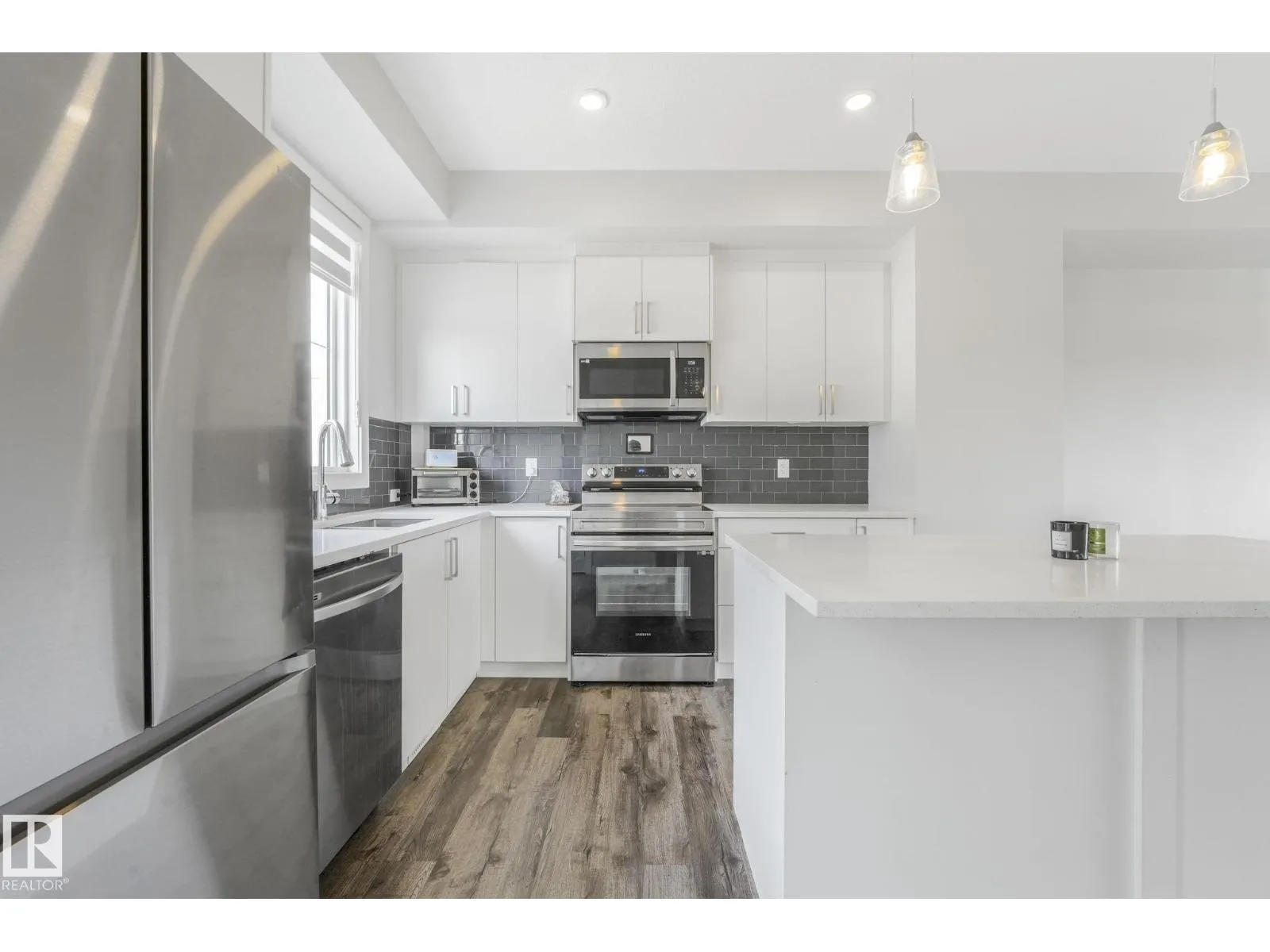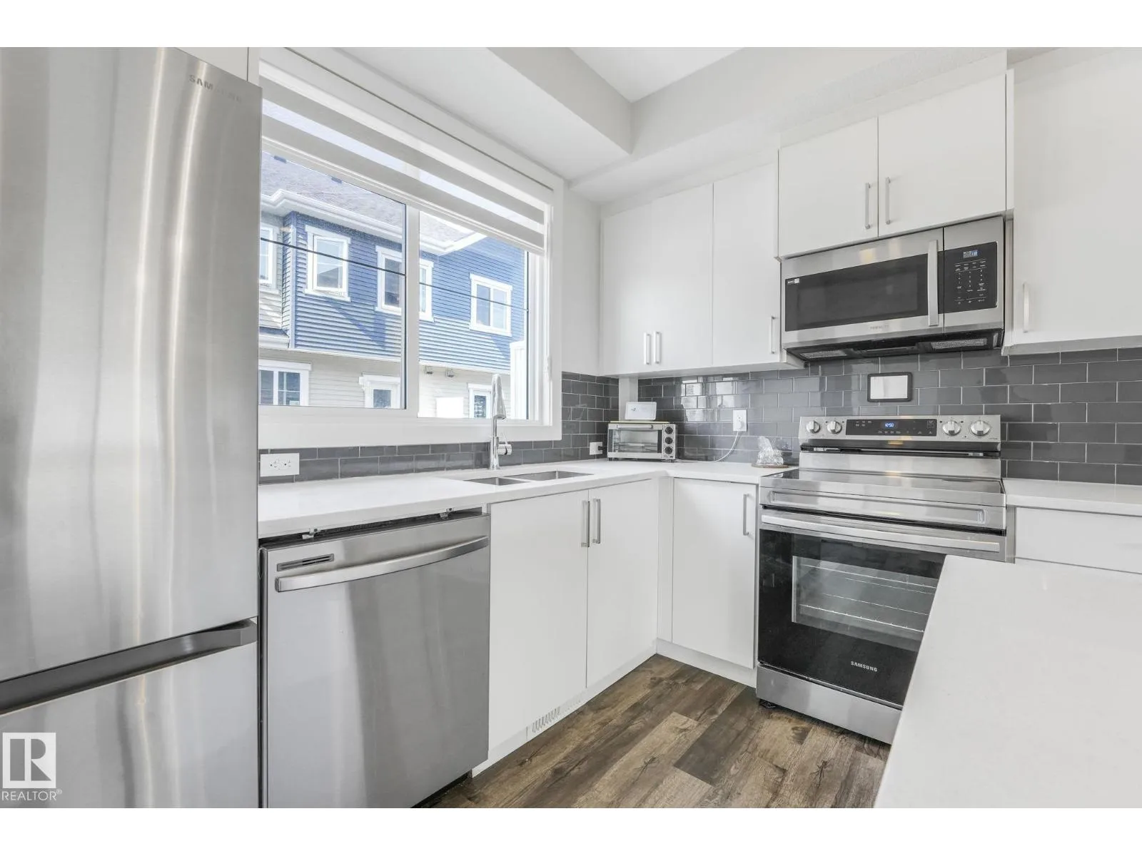 âStylish & Functional, First Time Home Buyers Delight!!!â â Hereâs your invitation to discover this charming townhouse, ready for quick possession. Just of the inviting foyer, a bright flex space offers the perfect spot for a home office / study area. Stairs leads to the Bright & Cozy open-great room style living space combining the living, kitchen and dining area. Main floor features 9-ft ceiling, stylish kitchen w/ SS appliances, quartz countertops, center island, living room, dining area & powder room. Enjoy sunlight throughout the day w/ East & West facing large windows. A patio off the kitchen provides easy access for BBQs. Upstairs features large Primary suite with walk-in closet & 4-pc ensuite, a Secondary bedroom suite with 4-pc ensuite, plus stacked laundry. Great mobility friendly floor plan, DOUBLE GARAGE convenience & LOW CONDO fees, steps to school and mall and easy access to major high-ways makes this your preferred choice. This house needs nothing but a new owner to call it a HOME! (id:27476)