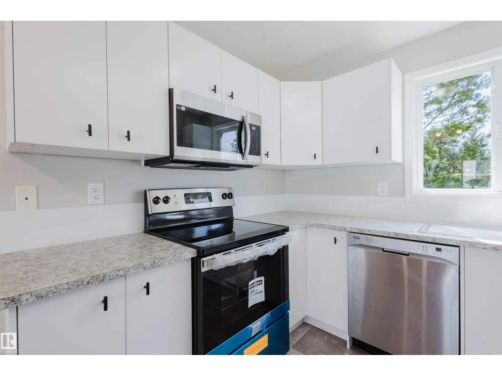 Spacious 4-Bedroom Townhome-Style Condo in Aldergrove. Welcome to this updated 2-storey townhome-style condo, ideally located in the convenient West End community of Aldergrove. The main floor offers an open living and dining area with a fireplace and direct access to the patio â great for everyday living or gatherings. The kitchen features brand-new appliances and ample cabinet space. Upstairs, youâll find 3 well-sized bedrooms and a full bathroom. The fully finished basement provides additional living space, including a recreation area and an extra bedroom â perfect for guests, a home office, or hobbies. Additional features include in-suite laundry, surface parking, and visitor parking. Walking distance to Aldergrove School, community amenities, and local parks, with easy access to Whitemud Drive and West Edmonton Mall. (id:27476)