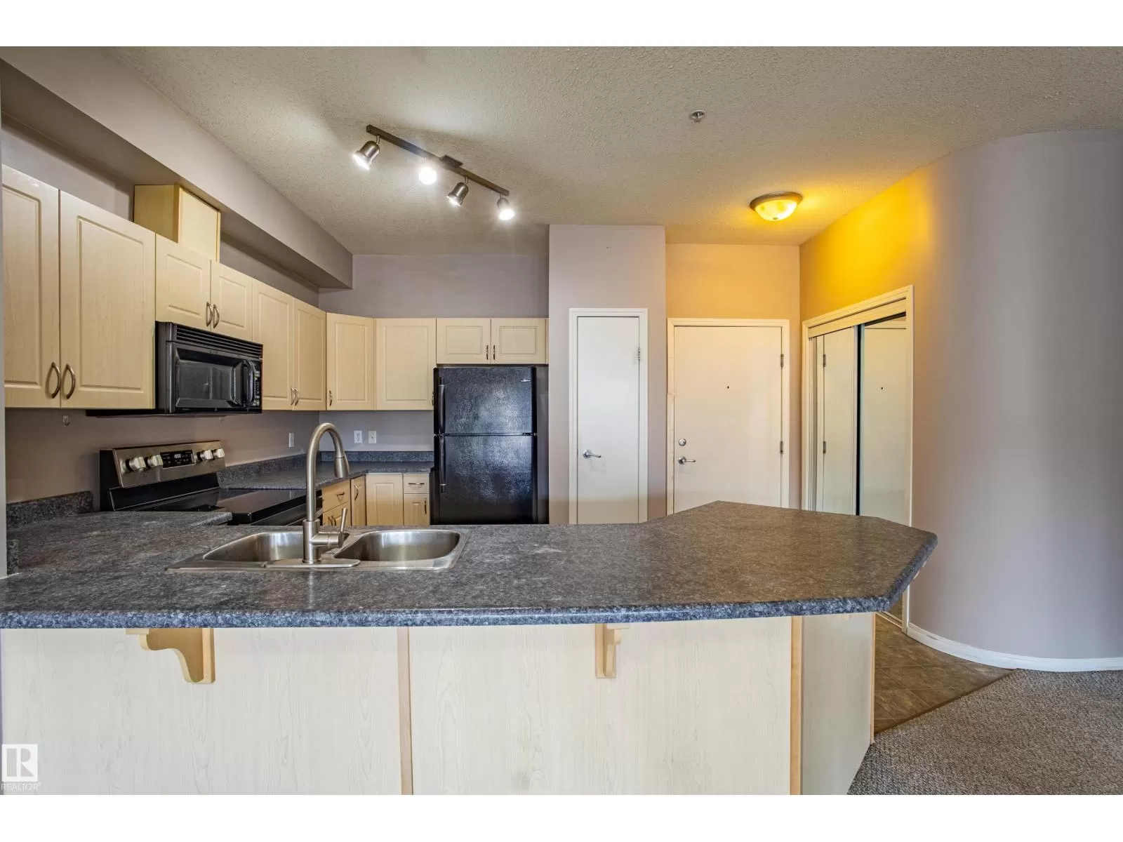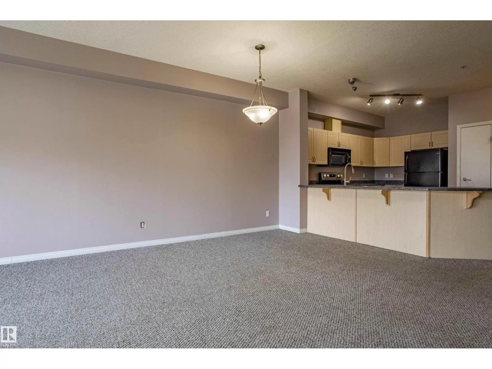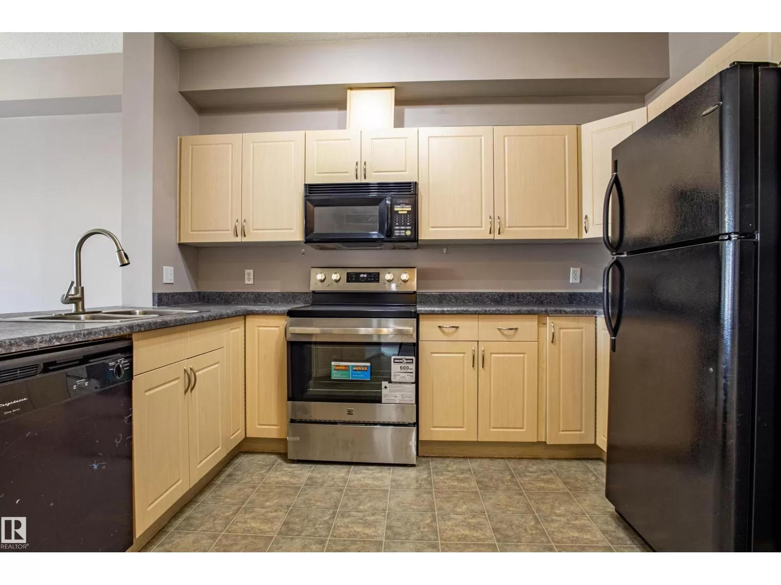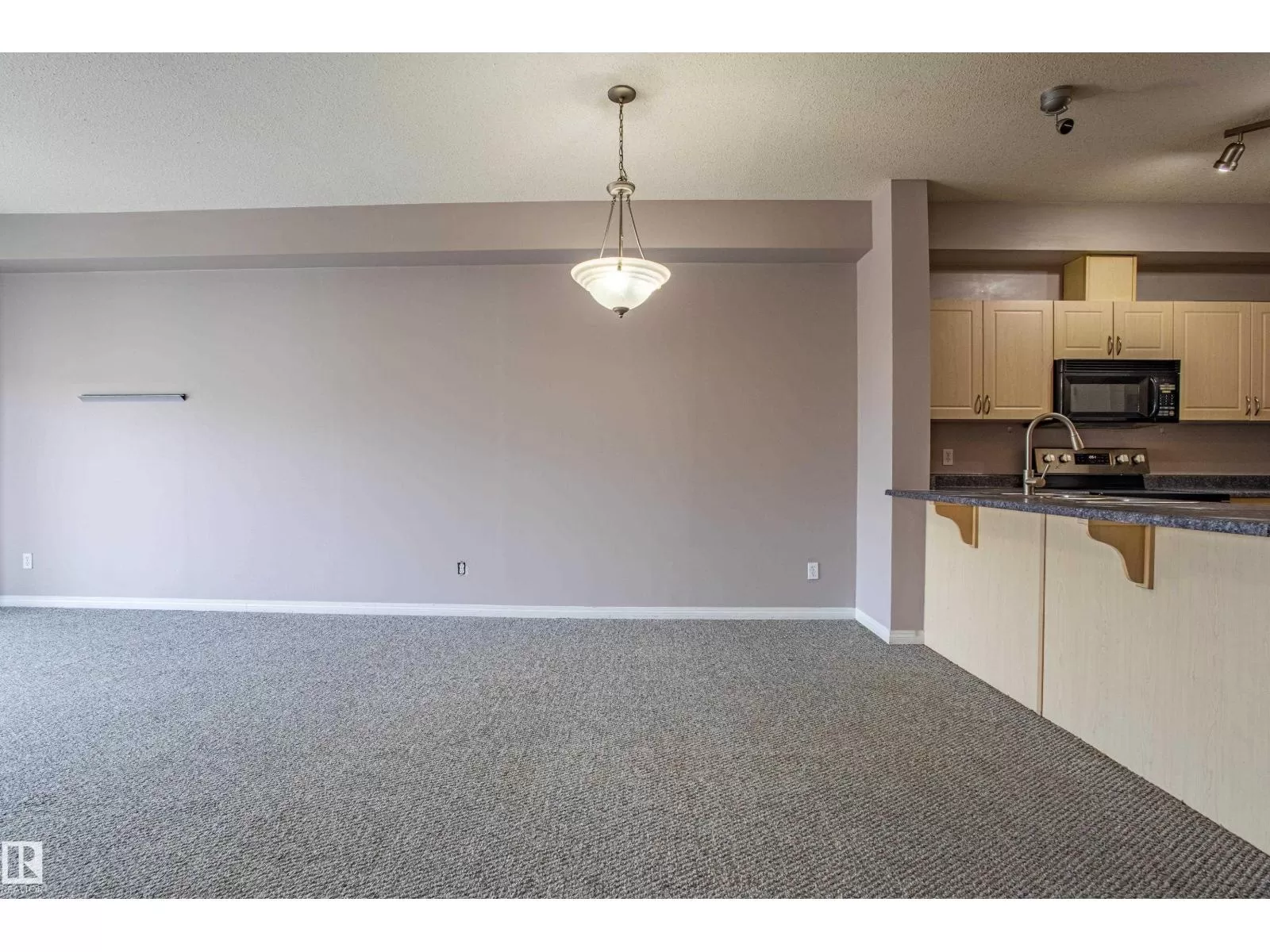 Enjoy convenience and comfort at the Estates of Clareview! This spacious 1 bedroom plus den condo offers over 900 sq. ft. of open living space with 9-foot ceilings. The modern kitchen is equipped with stainless steel appliances, a new stove, a built-in microwave, fridge, dishwasher, and bright white cabinetry. Additional features include an in-suite washer and dryer, gas BBQ outlet, and northwest-facing windows for natural light. The unit also comes with an underground parking stall (B57). Residents enjoy excellent building amenities such as a fitness centre and billiard room. With the LRT right at your doorstep, plus easy access to the City Recreation Centre (with swimming pool and library), shopping, dining, and schools, this is the perfect combination of lifestyle and location. (id:27476)