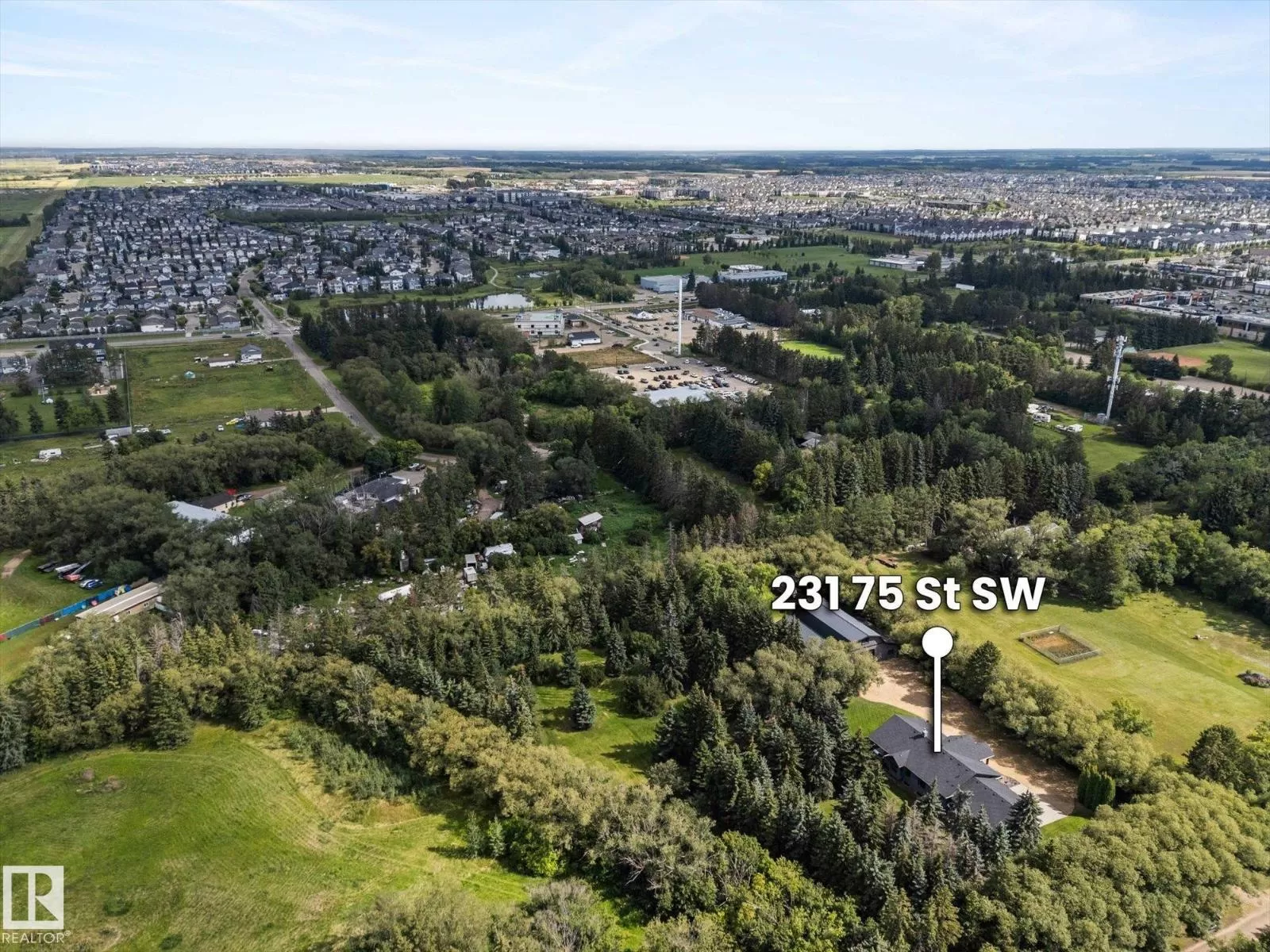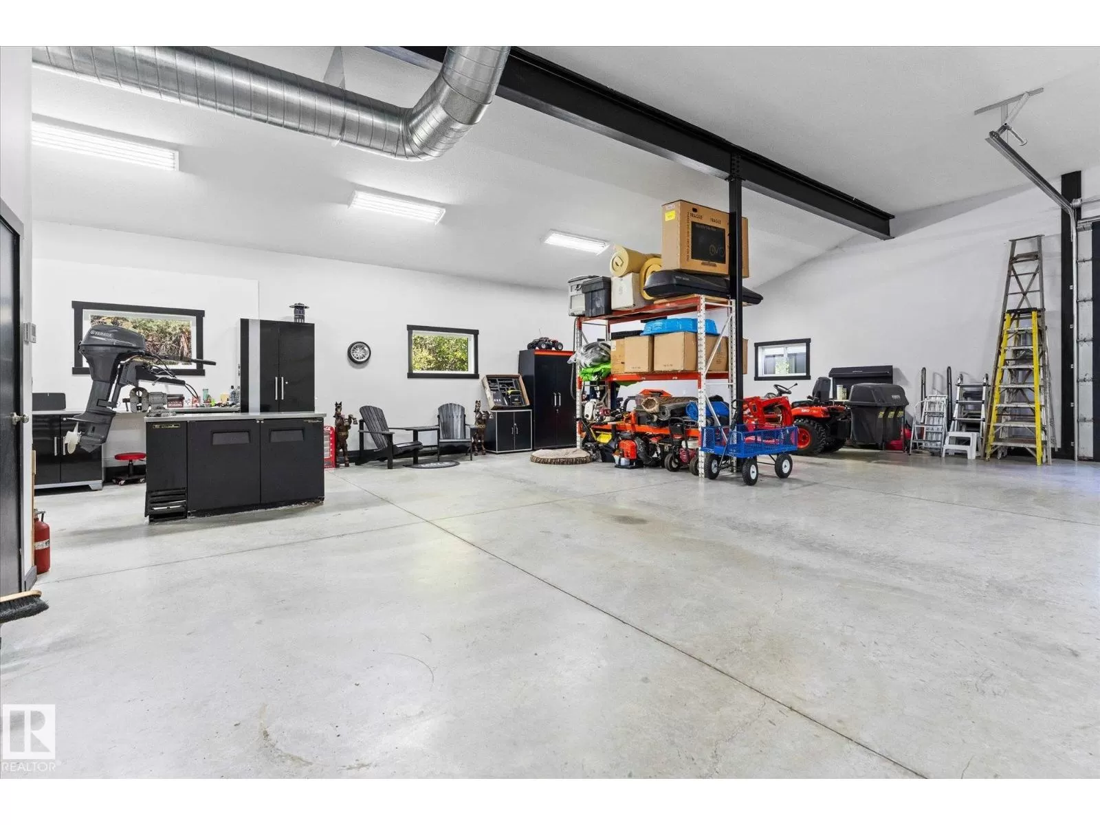 This remarkable 3-acre property in Ellerslie, began as a thriving tree farm 50+ years ago. In 2014, a visionary created Ellie - a one-of-a-kind custom executive bungalow showcasing unparalleled construction quality with commercial-grade luxury materials throughout. The crown jewel: A massive 64'x64' executive workshop (4,096 sq ft) featuring additional living space above - perfect for running your profitable business from home! Whether manufacturing, woodworking, or office space, this facility rivals commercial properties and other Estates. The luxurious 2,071 sq ft home boasts 3 zone heating/cooling, built-in garage systems (pressure washer, air compressor, vacuum), dual water sources (cistern for house, well for property), state-of-the-art septic treatment plant, secure RV/trailer storage and parking, and complete fencing. Low-maintenance landscaping with exposed aggregate concrete completes this city retreat. Ellie is special and one of the best kept secrets in Edmontons Luxury real estate market. (id:27476)