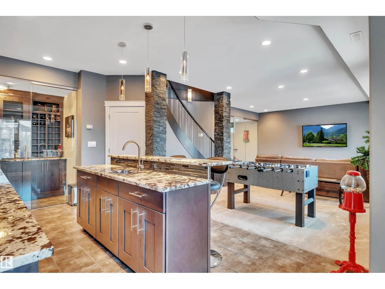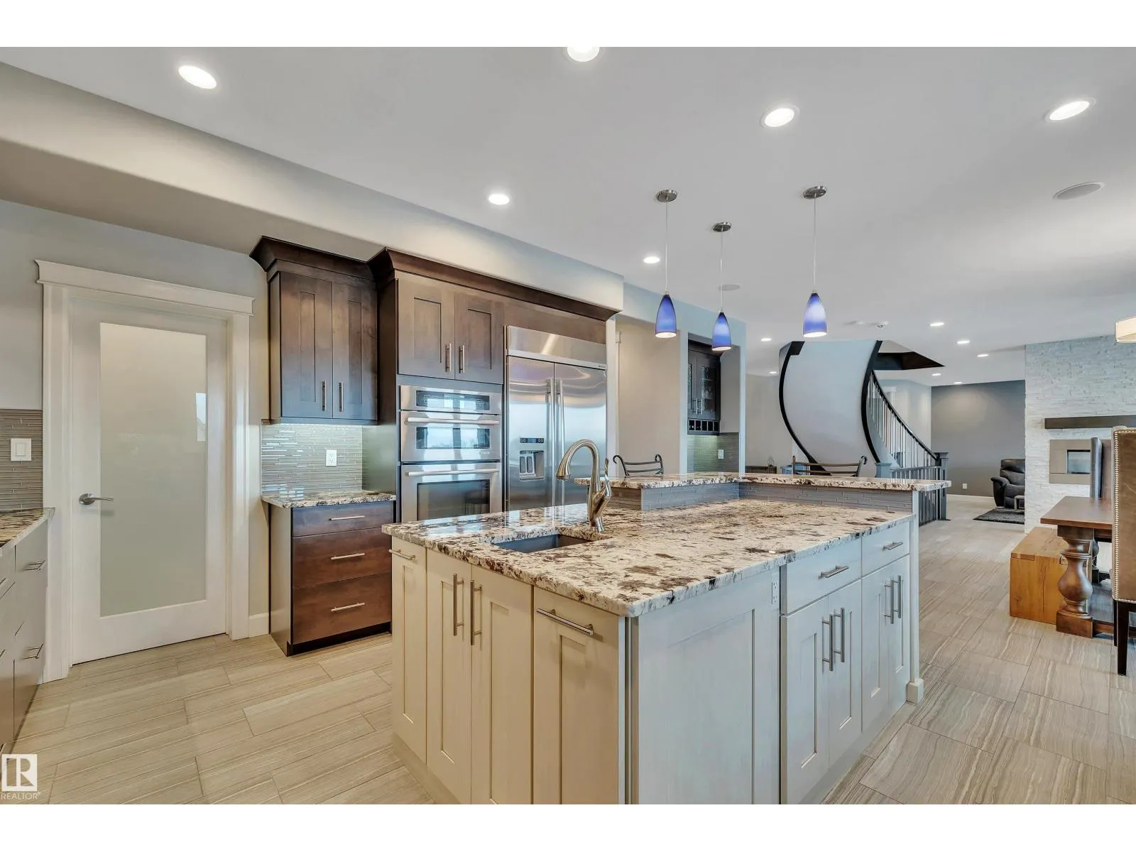 Welcome home to this stunning property in the prestigious community of Westpoint of Windermere. Nestled in a quiet cul de sac location it also boasts a fully finished walk out basement backing on to a pond with river valley views ! This home features a grand foyer with a magnificent stair case, chefs kitchen, high end appliances, granite counter tops, custom hood fan, tons of storage, walk through pantry, huge mud room with dog wash and main floor office! Upstairs the primary bedroom features it own balcony to soak in the sunsets with a wet bar and a double sided fireplace to the ensuite with attached walk in and laundry. The basement has a massive rec room with full wet bar, wine room and exercise room . Upgrades to this home include; in floor heating, gemstone lighting, EV charger (48 amp), Sonos speakers in & out, 90k in landscaping including a water feature and artificial turf for low maintenance. Fantastic location steps to the river valley and trails, golf, shopping and schools! (id:27476)