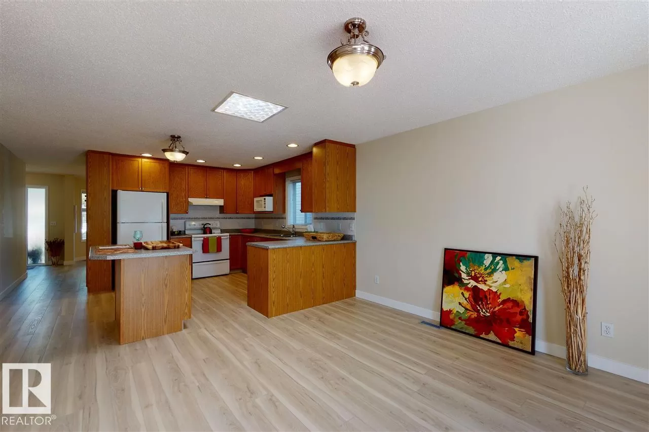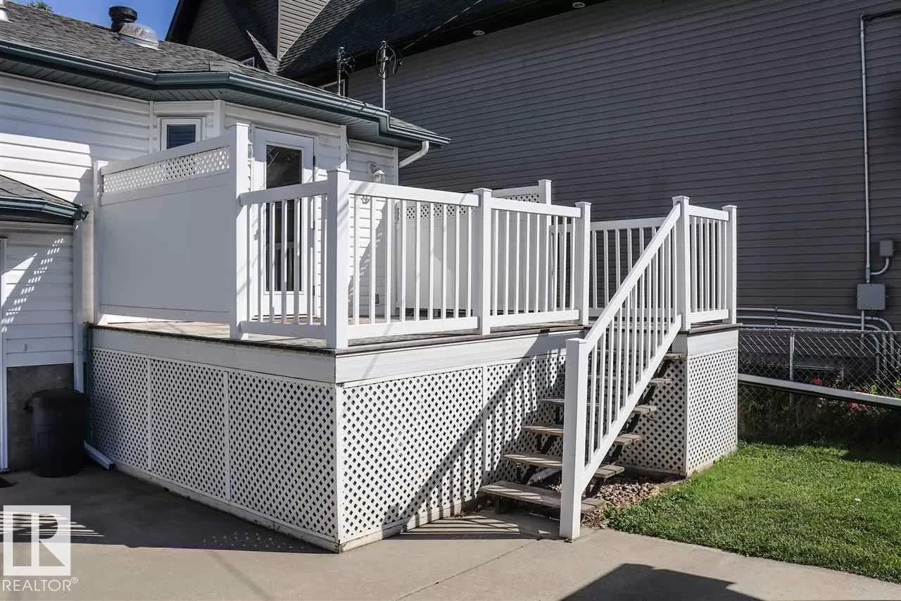 TURN KEY RENTAL!!The entire main floor of this spacious bi-level duplex has been renewed and the result is fabulous! Light plank flooring, creamy colored walls and white doors and trim have brought the 1450 s.f. main level suite up to todayâs design standards. Gorgeous floors are seamless throughout, from the front living room to the bright and airy kitchen/dining area, through to 2 good sized bdrm,main 4-pc bath,to the huge master bdrm & 3-pc ensuite/walk-in closet.The kitchen has tons of cupboards ,a floating island! Garden door leading out to sunny upper deck, overlooking fenced,low maintenance backyard.Fantastic location on a beautiful tree-lined street in Ritchie, 5 blocks to Mill Creek Ravine,15 minute walk to Whyte ave,quick access to U of A and downtown,3 blocks to shops and brewery at Ritchie Plaza. It has the added benefit of mortgage helper in well designed 2 bdrm suite,all new flooring and paint,separate utilities and laundry. Detached garage is split in 2 plus extra parking. (id:27476)